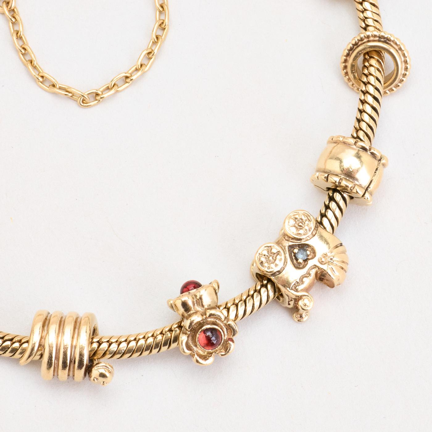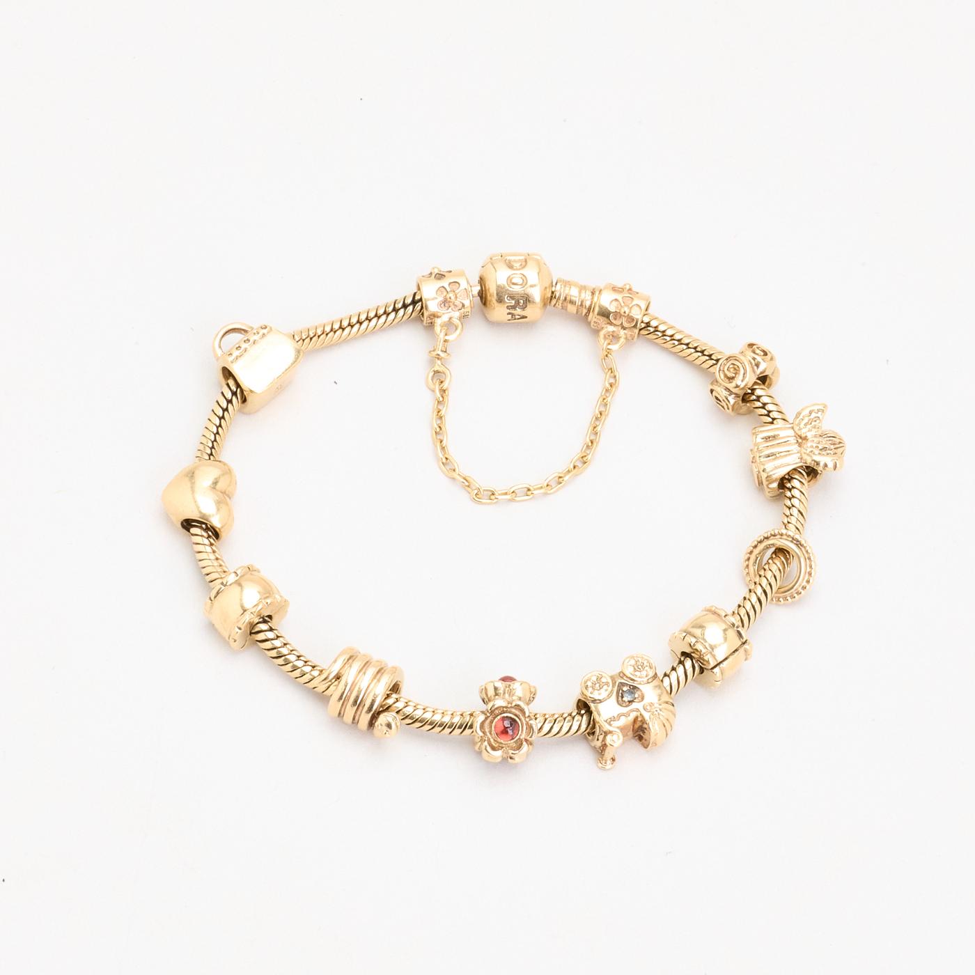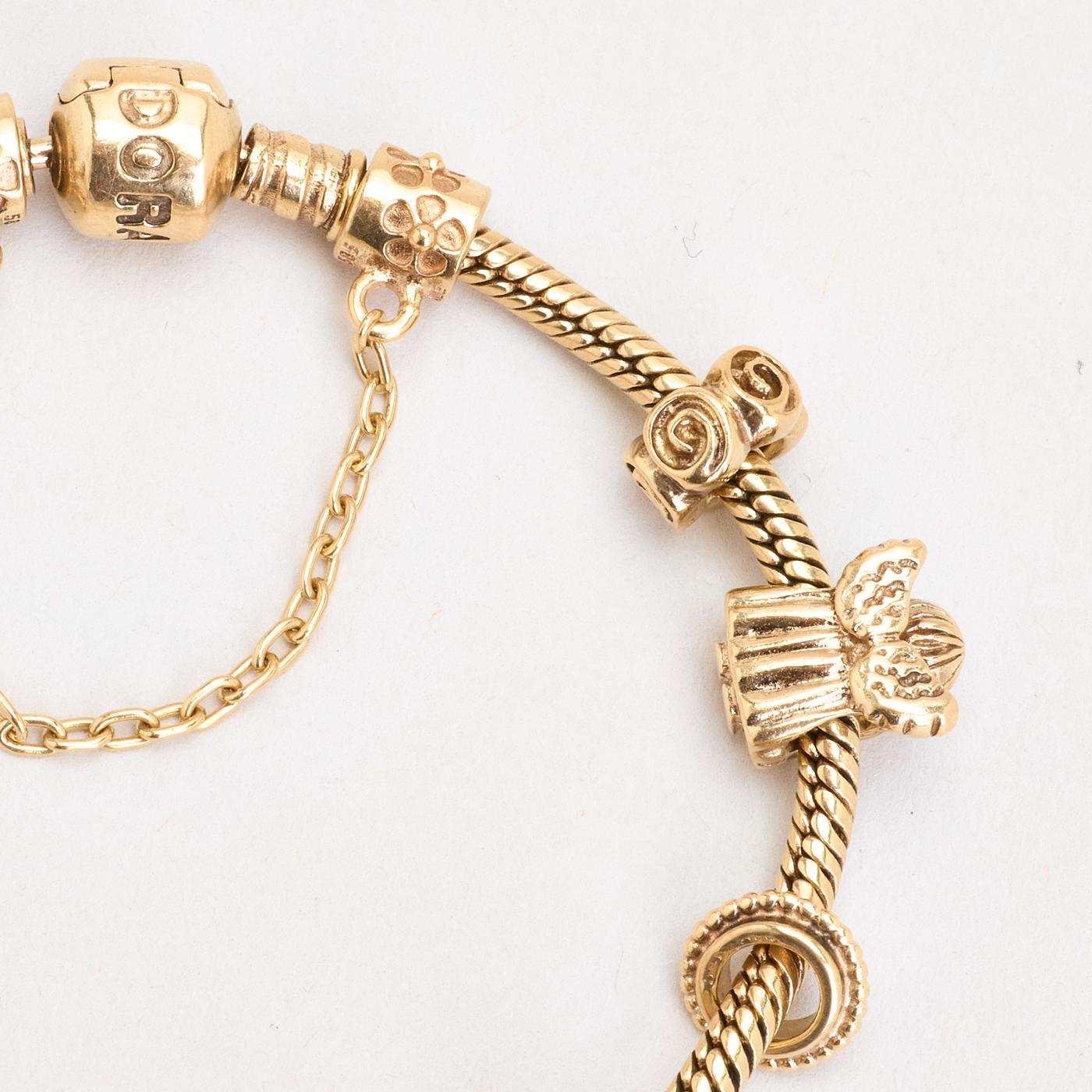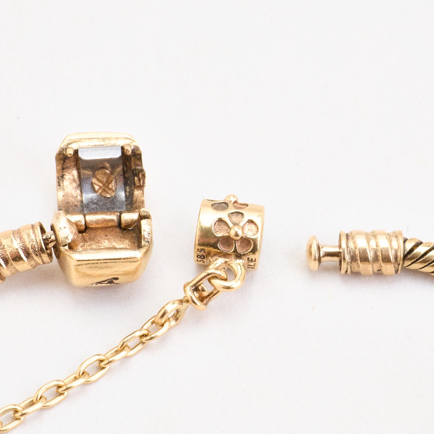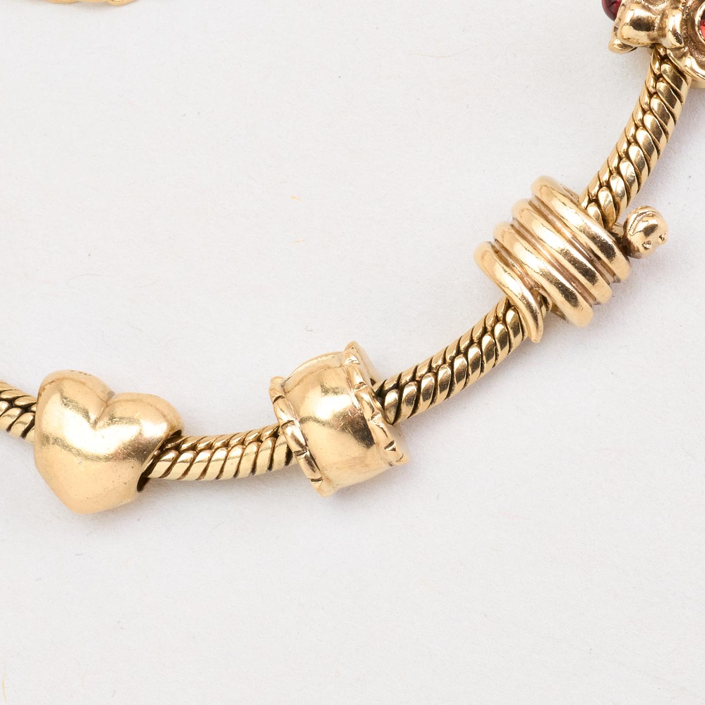 Model: Pandora Moments Charm-armbånd i 14K guld med én rød sten og hvide sten, 20 cm, 47 g