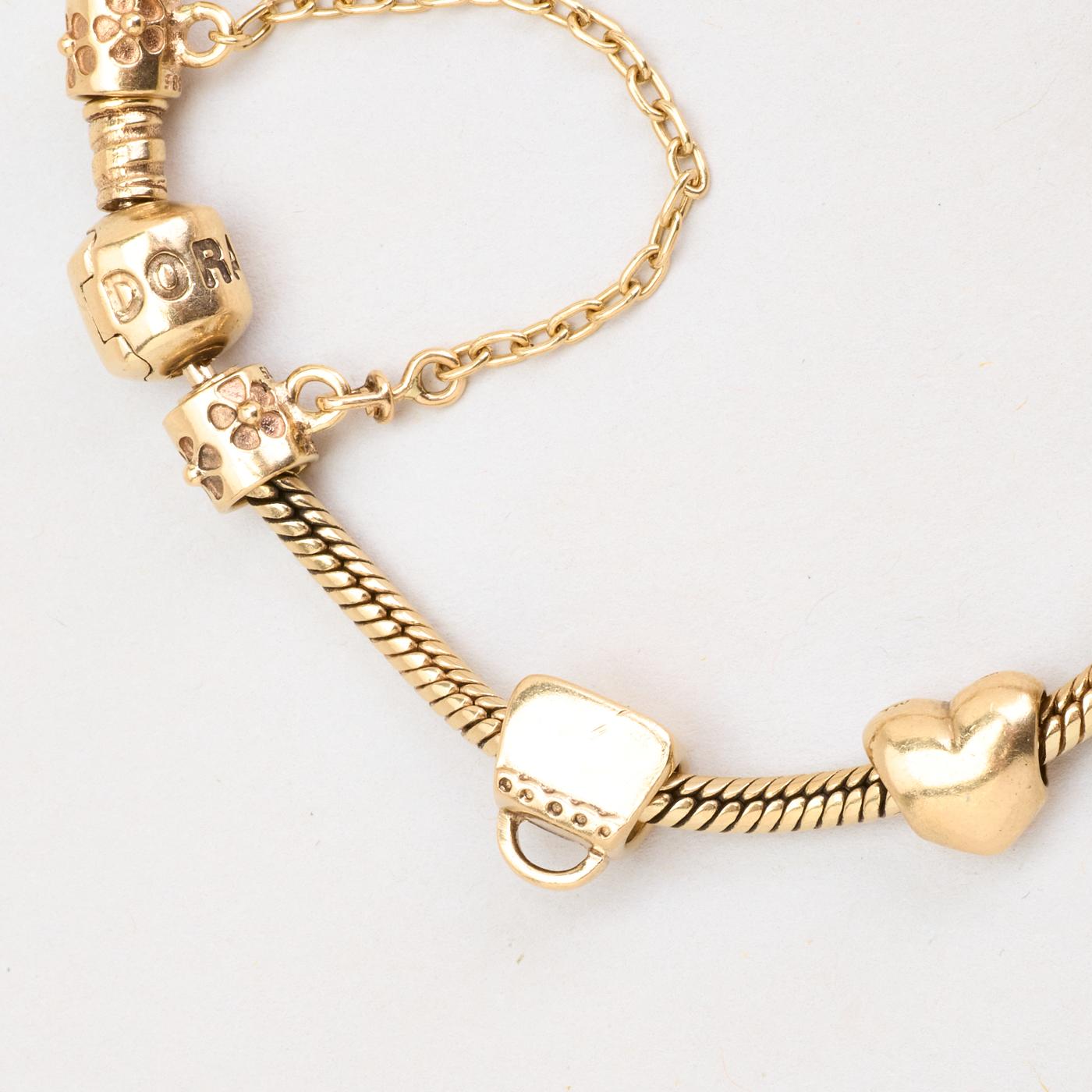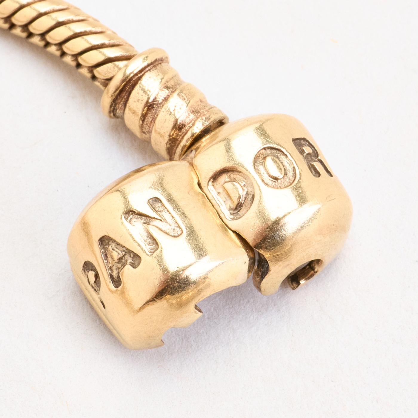 Pandora Moments Charm-armbånd i 14K guld med én rød sten og hvide sten, 20 cm, 47 g