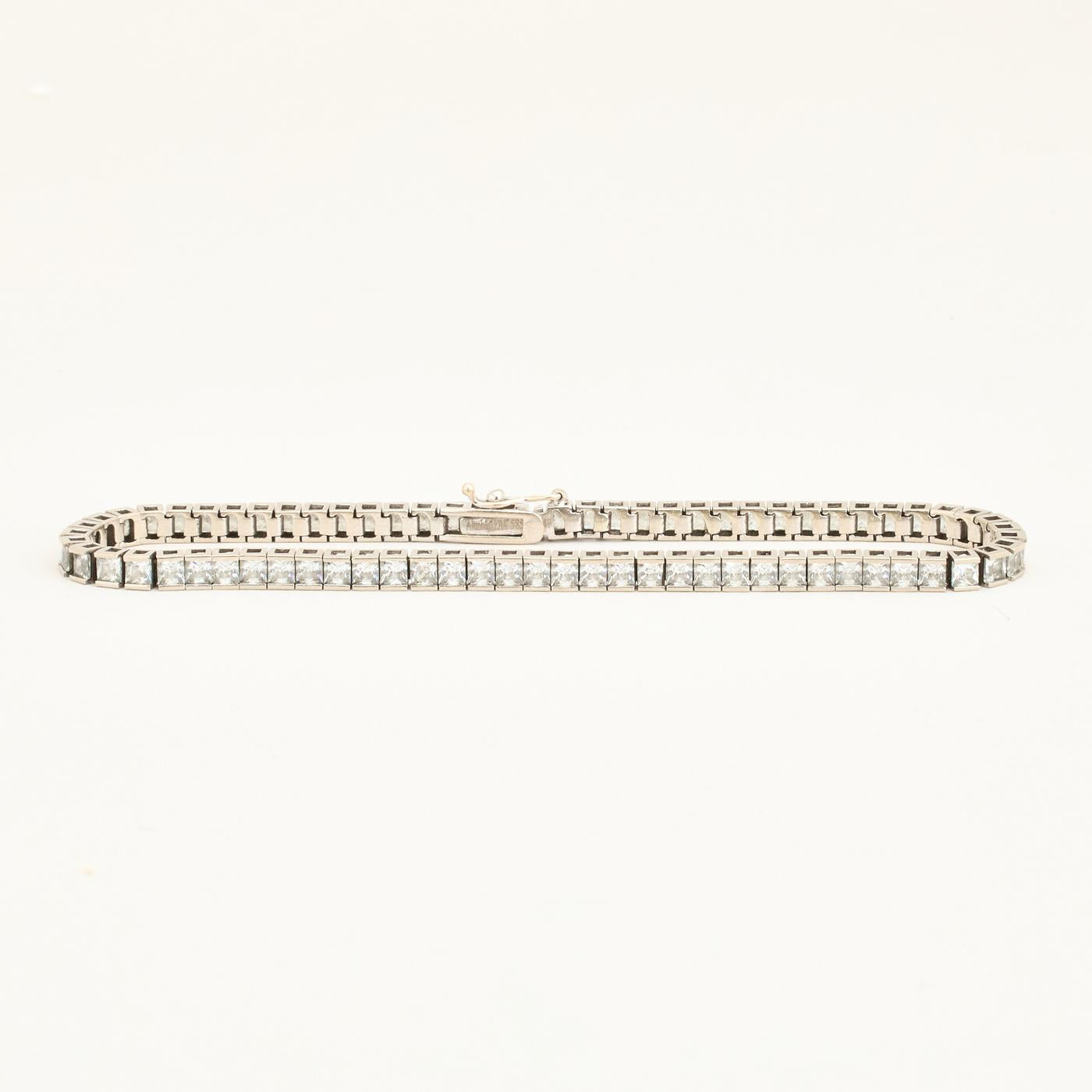 Tennisarmbånd i 14K hvidguld med en zirkonia, 19 cm, 9 g