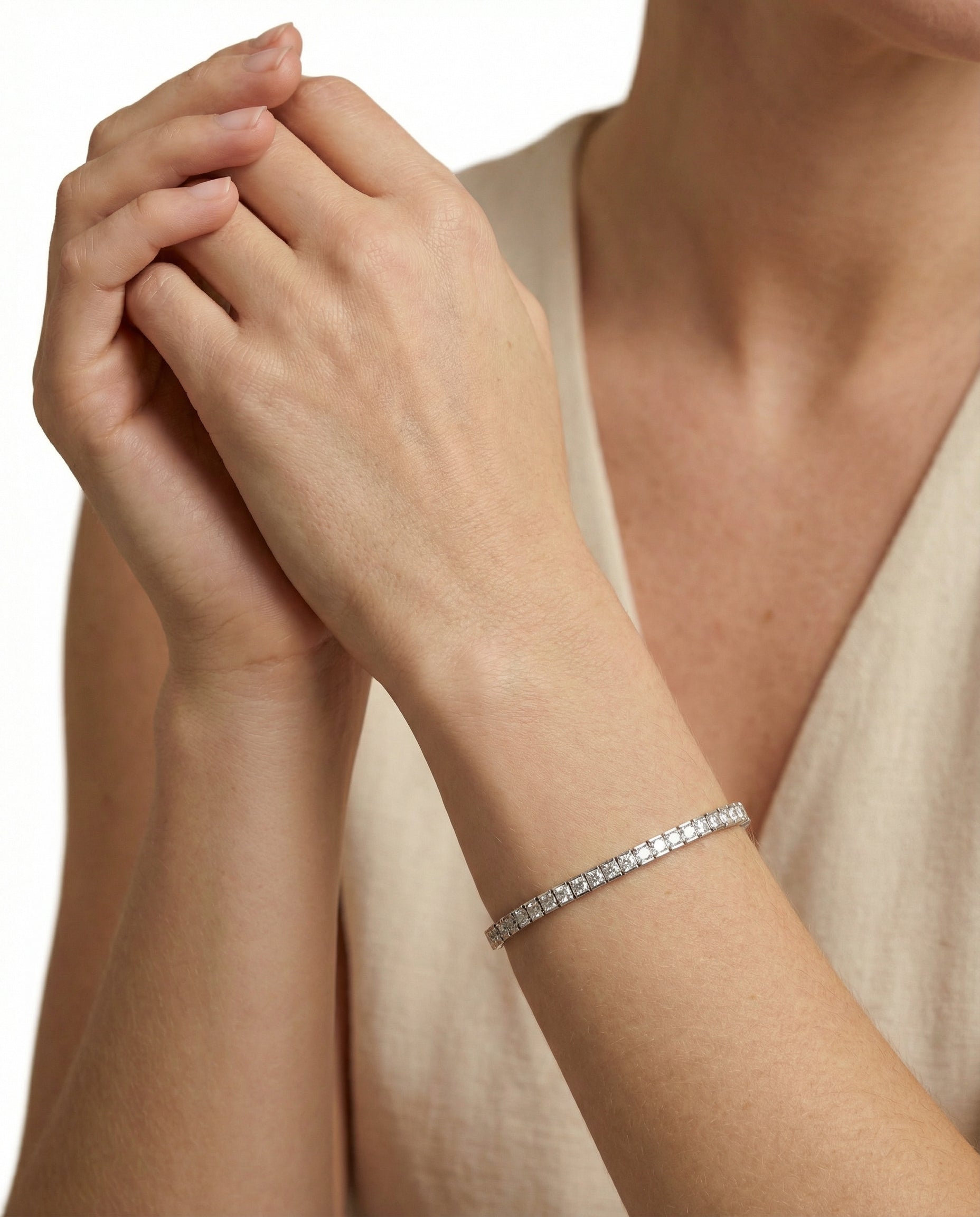 Model: Tennisarmbånd i 14K hvidguld med en zirkonia, 19 cm, 9 g