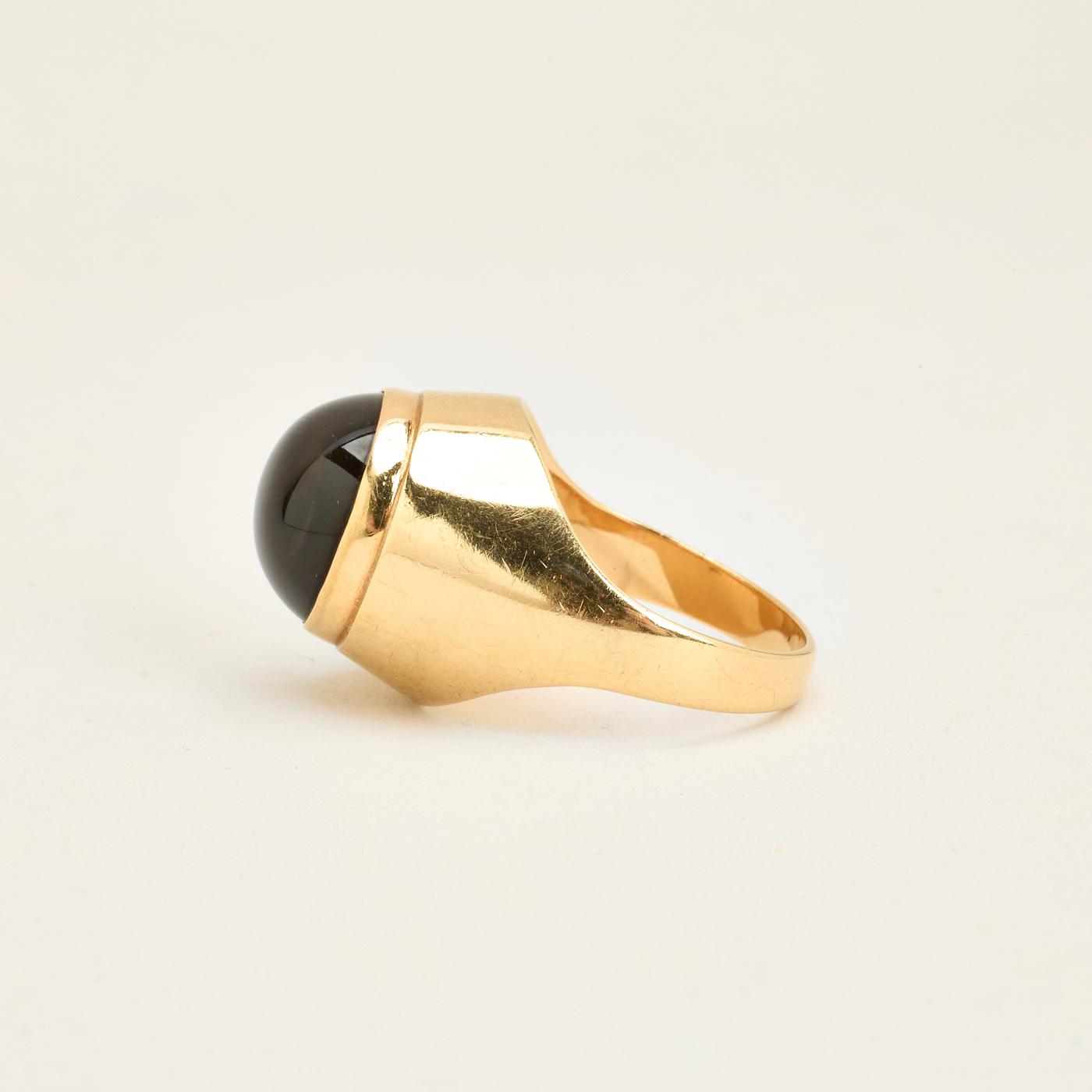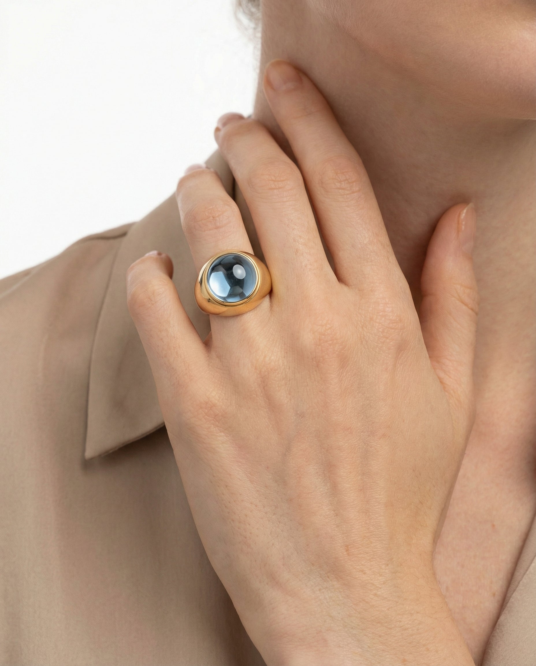 Signetring i 14K guld med lyseblå sten, str. 56