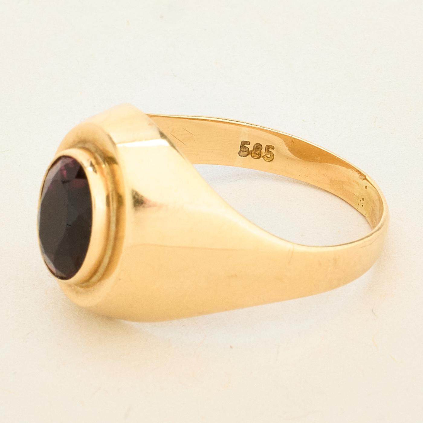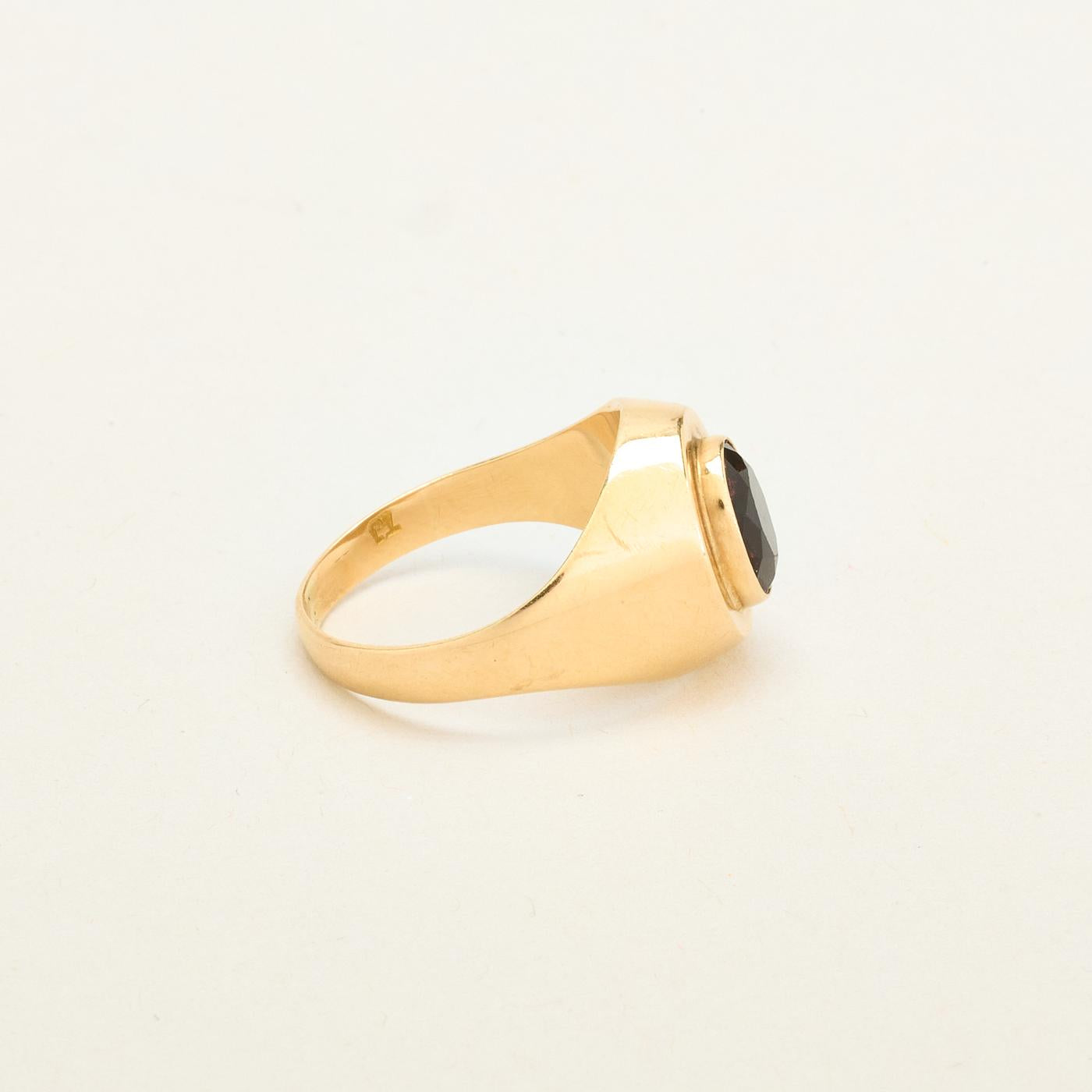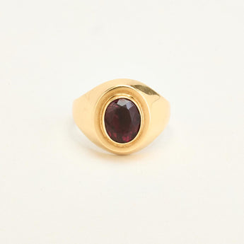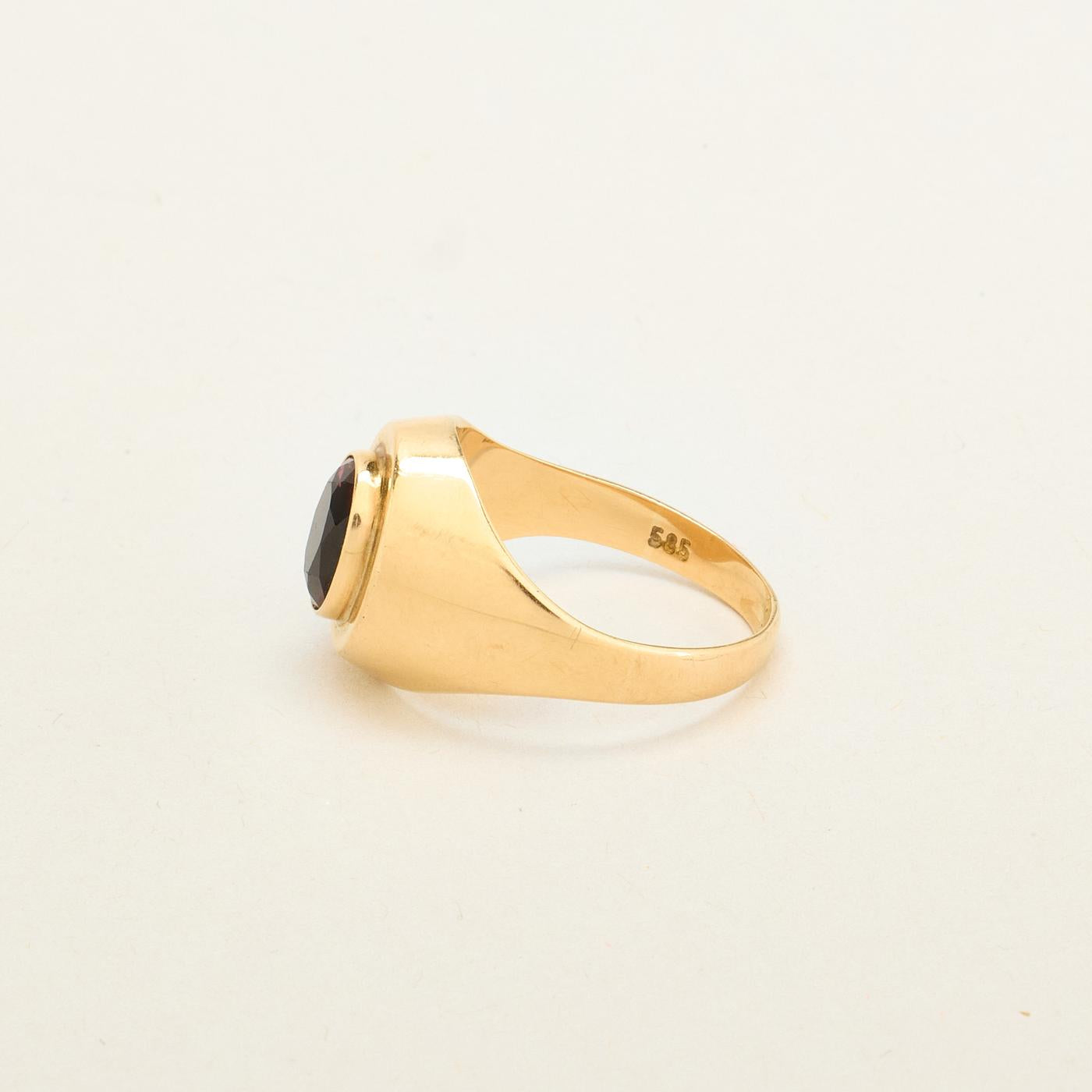 Signetring i 14K guld med rød sten, str. 52