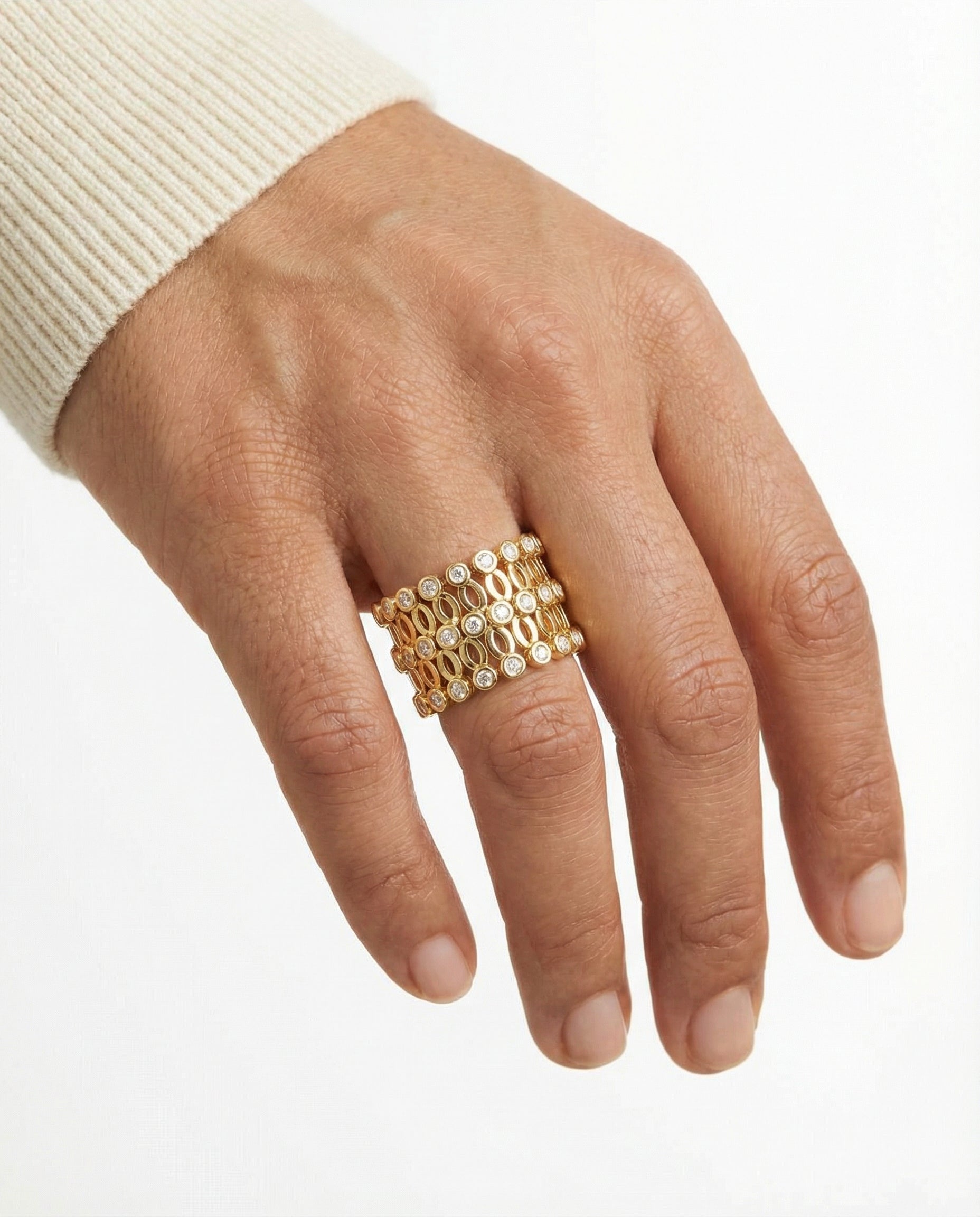 Moderne flexring i 18K guld med diamanter (1.04 ct), Str. 59