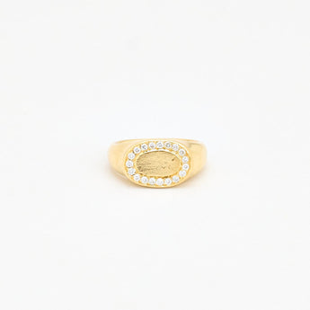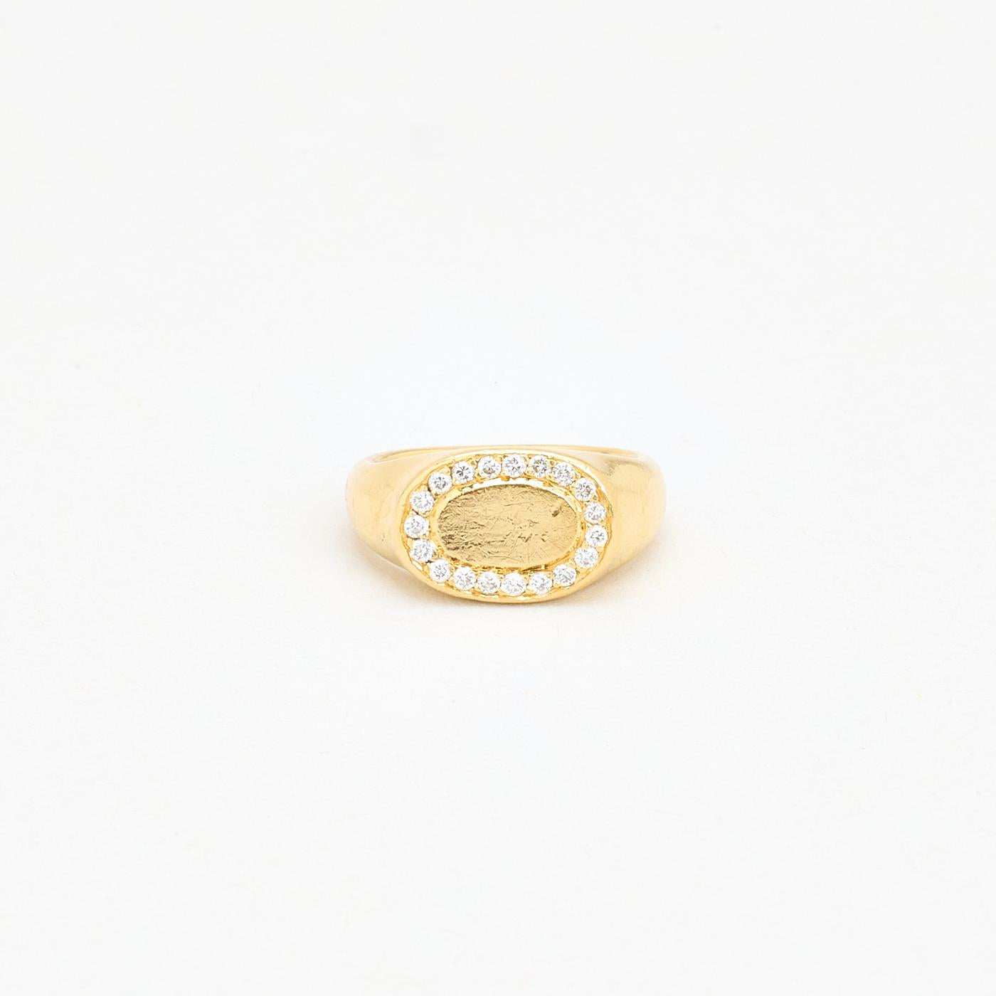 Oval Signetring i 18K guld med diamanter (0,21 ct), Str. 44
