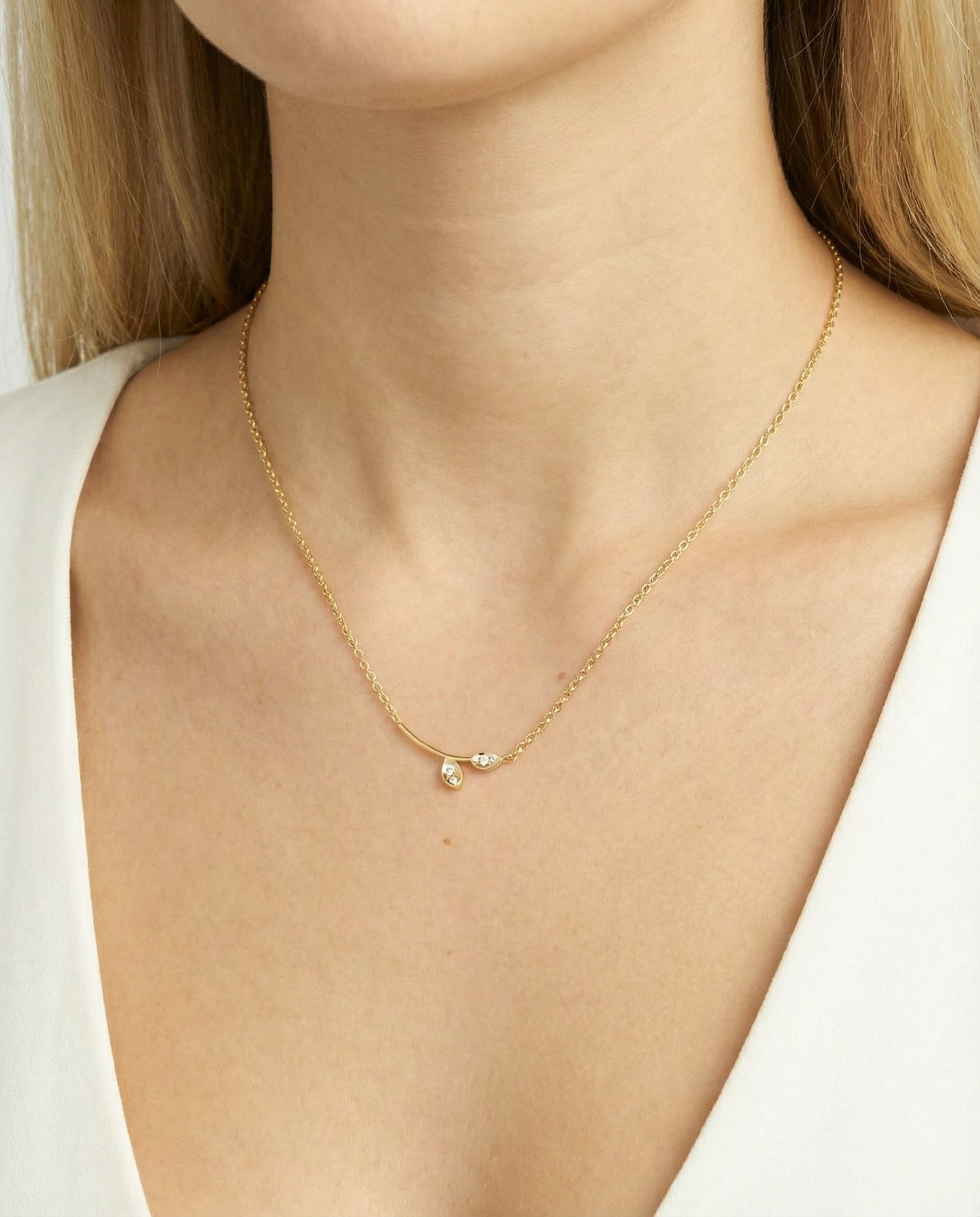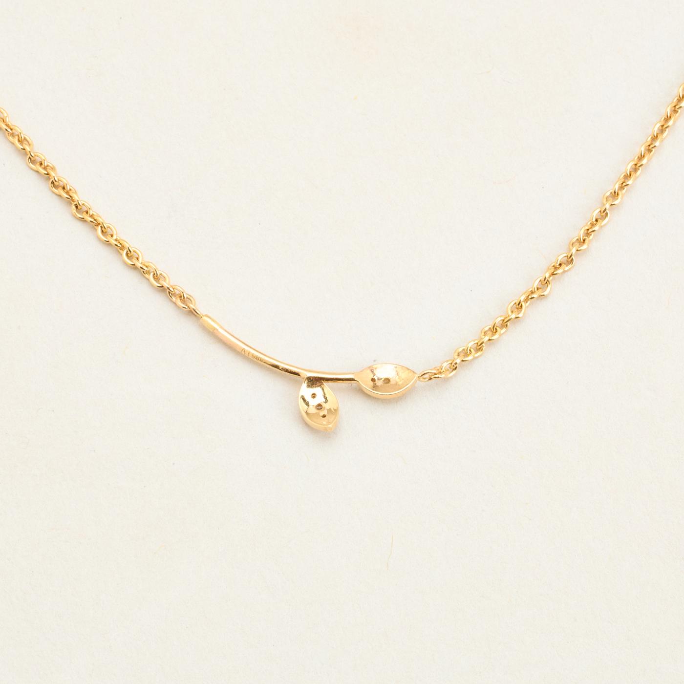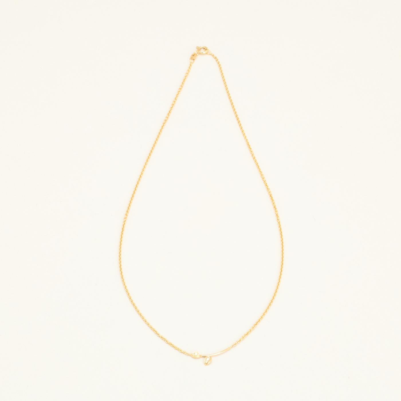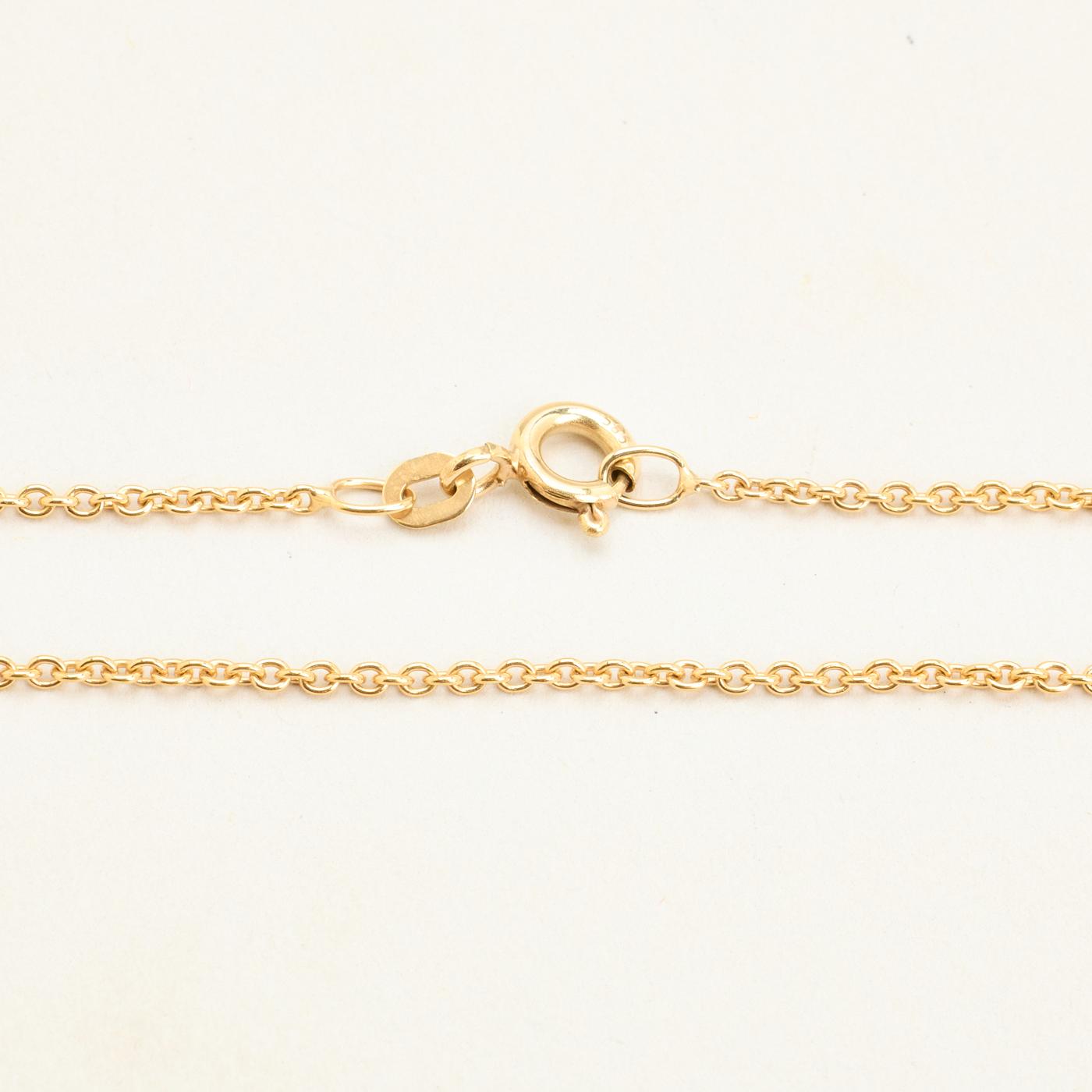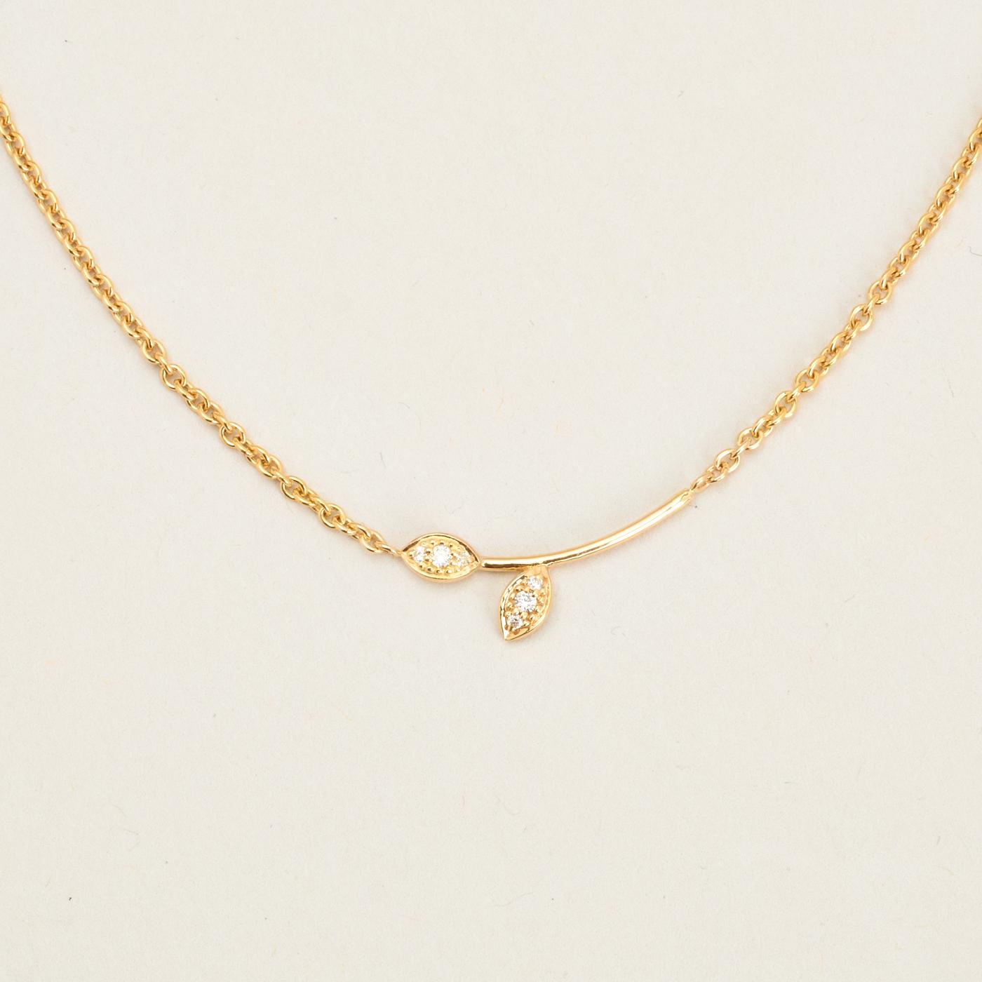 BNH Rund ankerkæde halskæde med blad vedhæng, i 14 kt guld med diamanter (0,06 ct), 44 cm