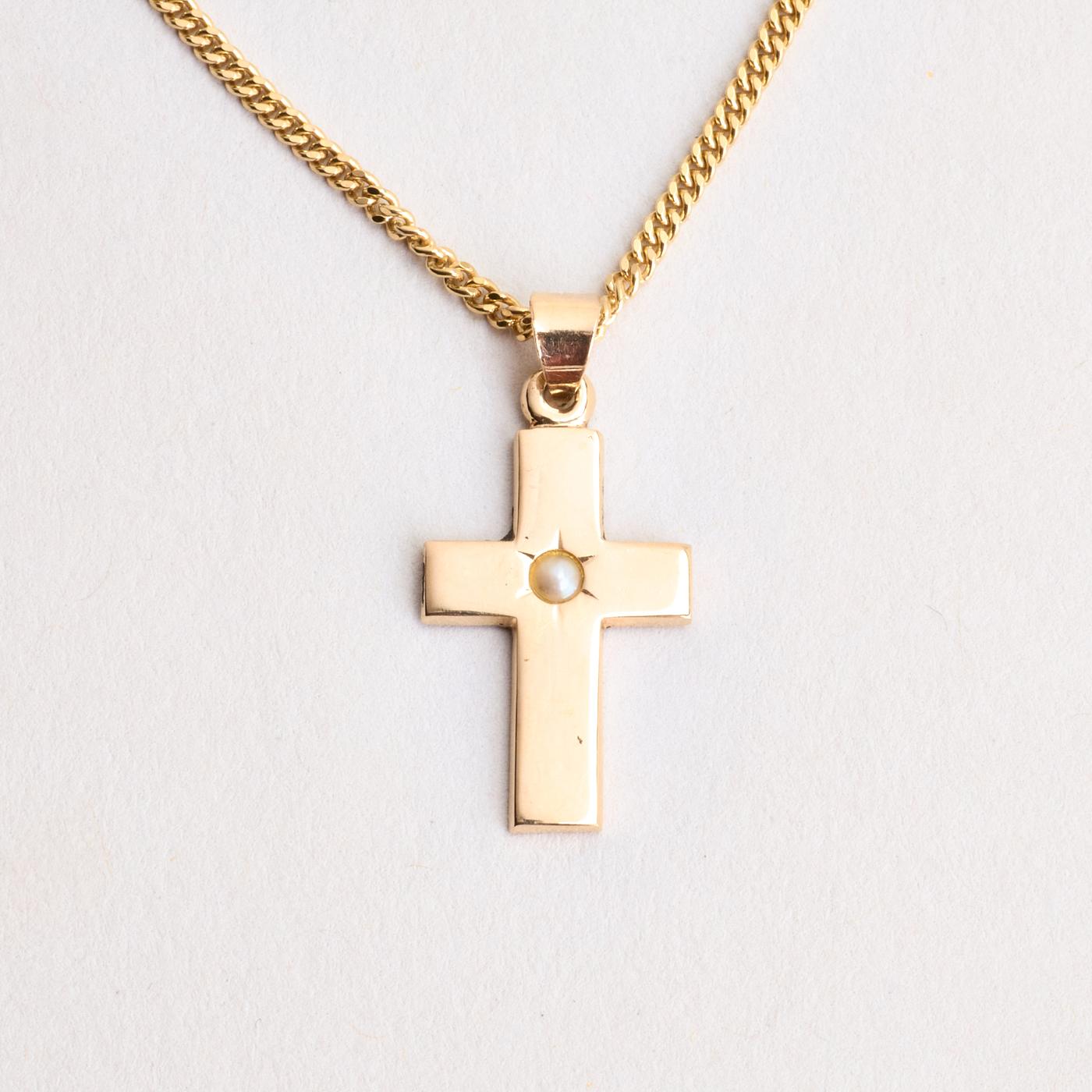 Panser Halskæde i 14K guld med en perle, 42 cm, 5.17 g