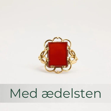 De mest typiske ringe med sten er vores statement ringe med deres store, farvede sten, der kommer i alverdens farver. Disse var populære i 1950’erne og 1960’erne, hvor syntetiske sten også blev meget populære. Derfor er mange af de sten, der blev brugt i statement ringe fra den tid lavet med syntetiske sten.