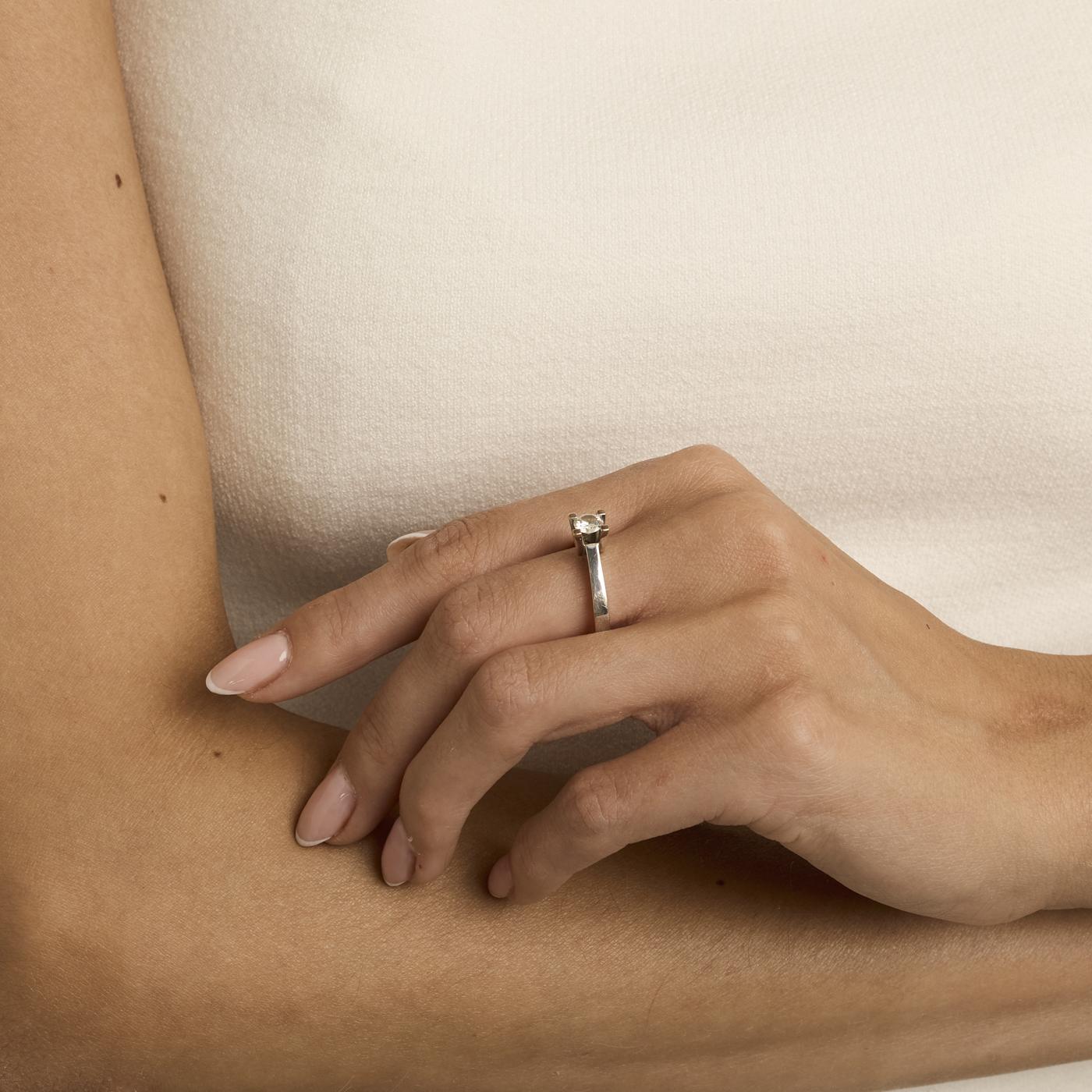 Solitairering i 18K hvidguld med en diamant (0,51 ct), Str. 57
