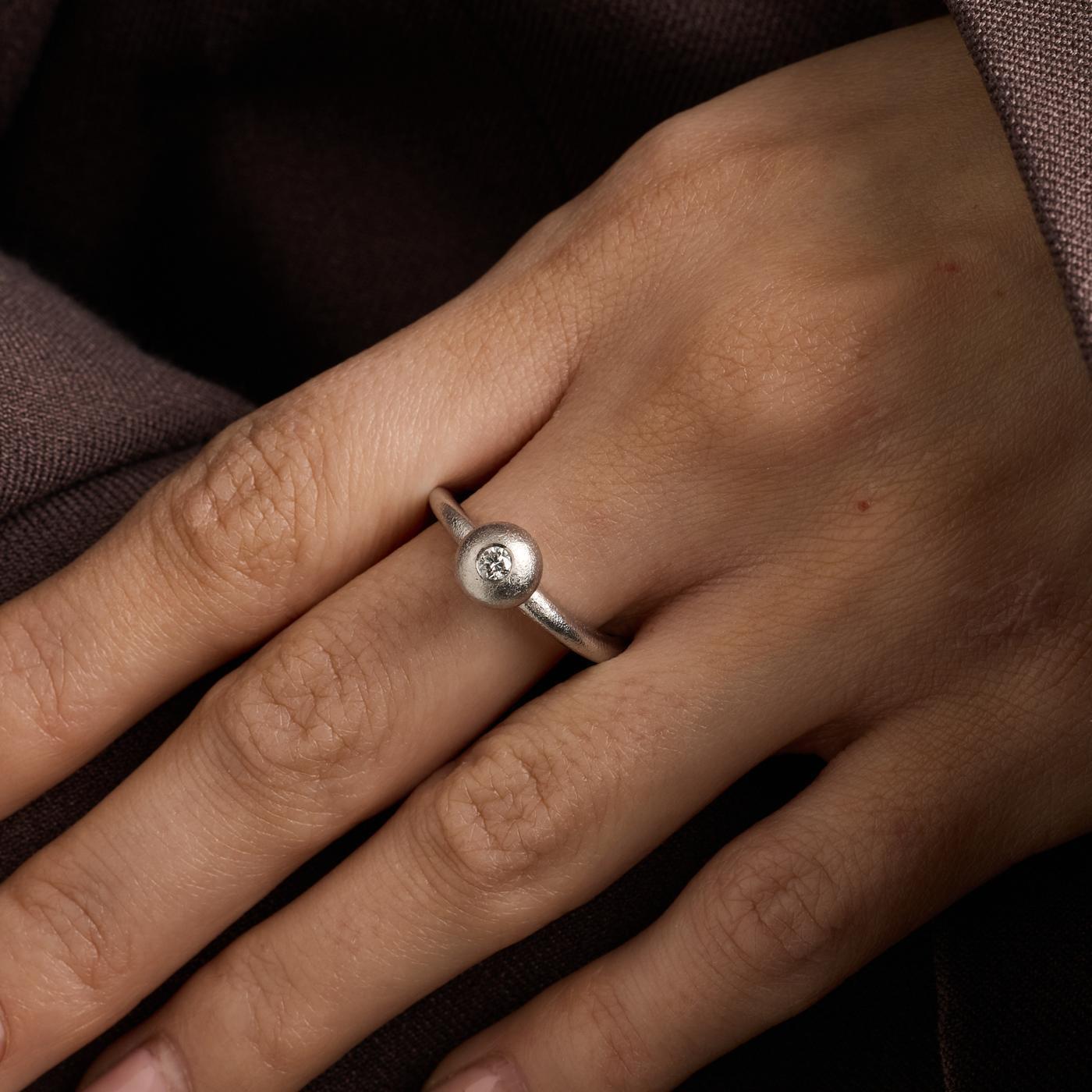 Ole Lynggaard solitairering i 14K hvidguld med en diamant (0.09 ct), Str. 53