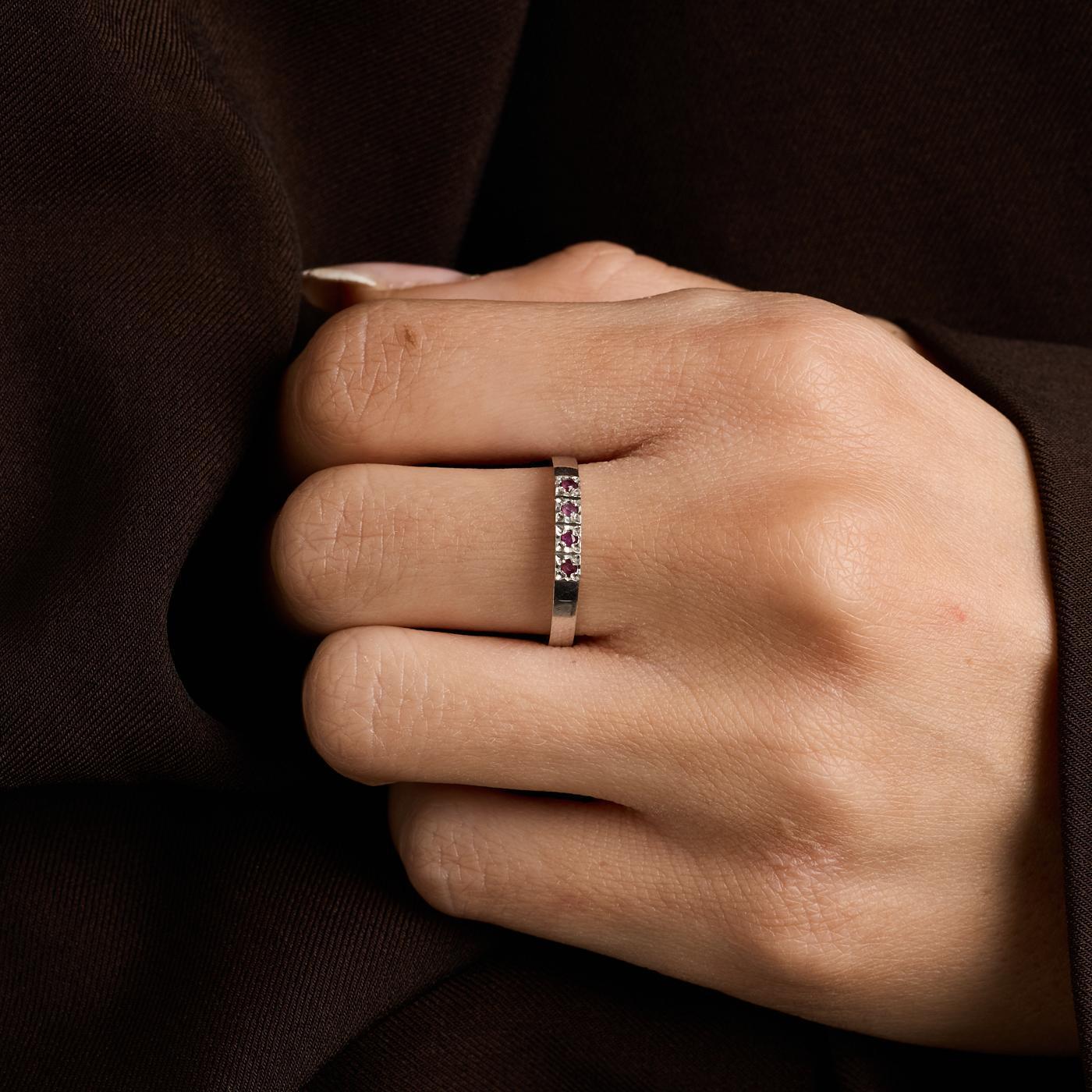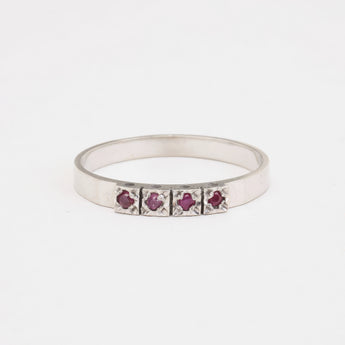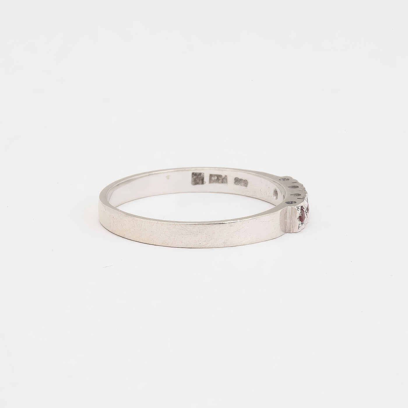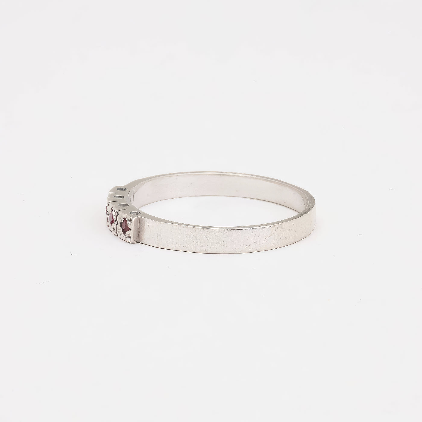 Alliancering i 14K hvidguld med flere lyserøde sten, Str. 52