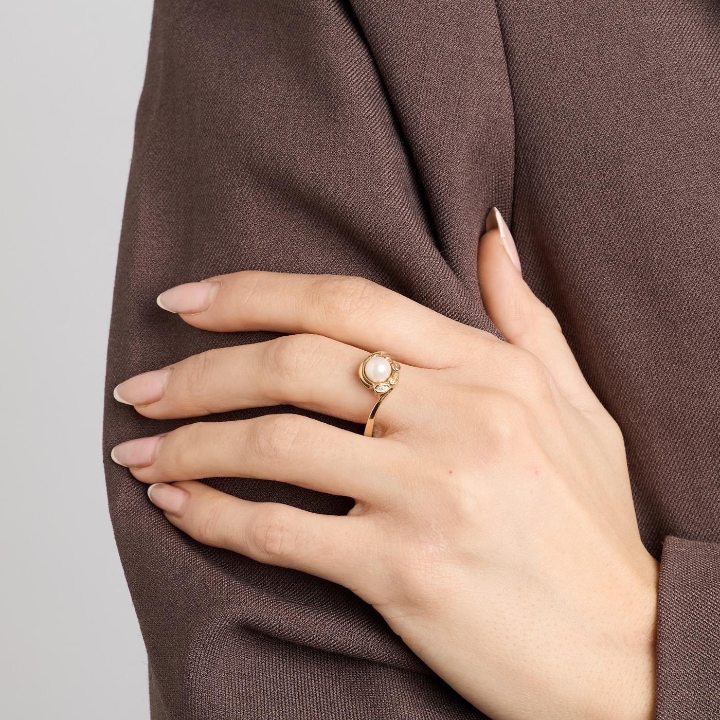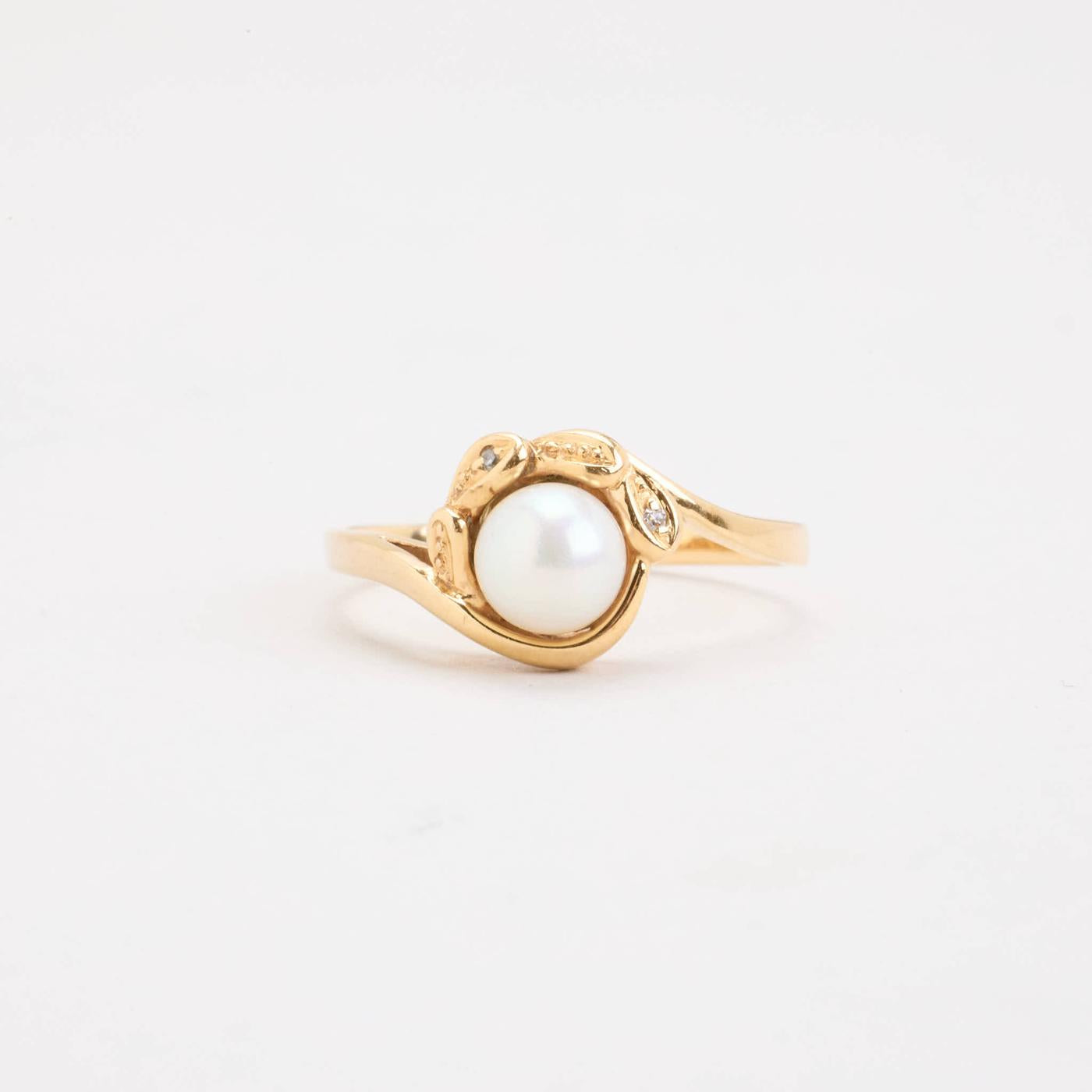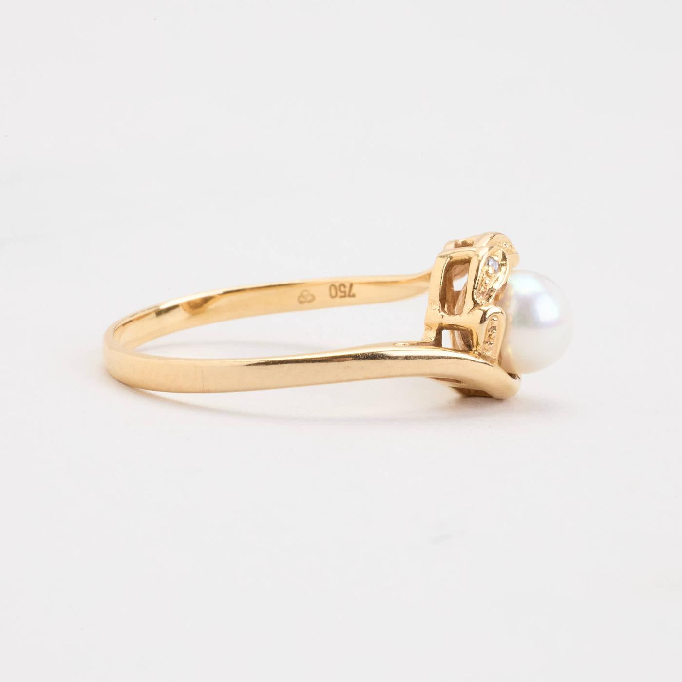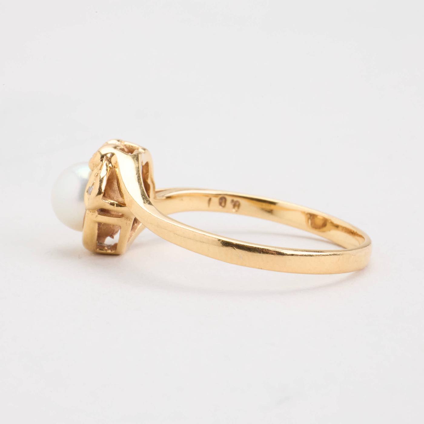 Perlering med diamanter (0.01 ct) i 18K guld med en perle, str. 58