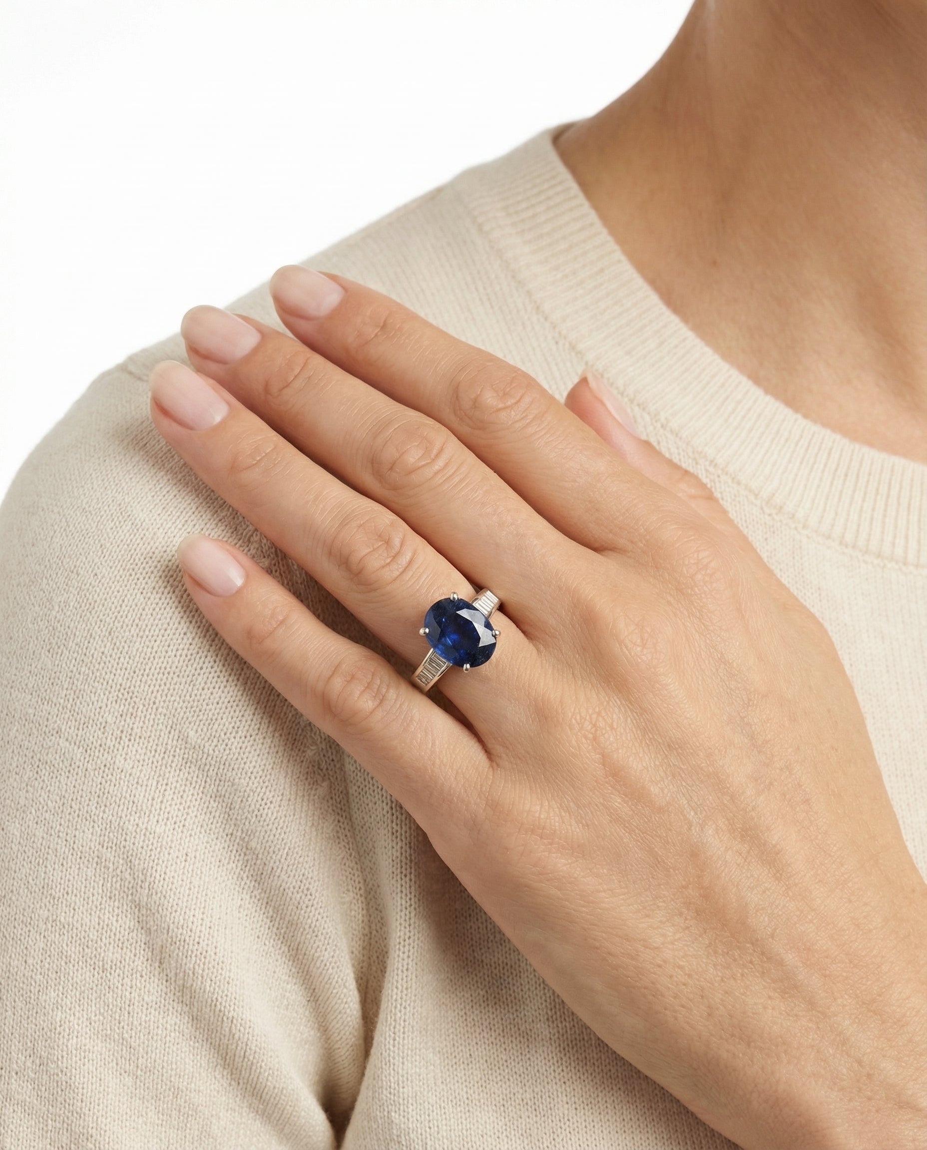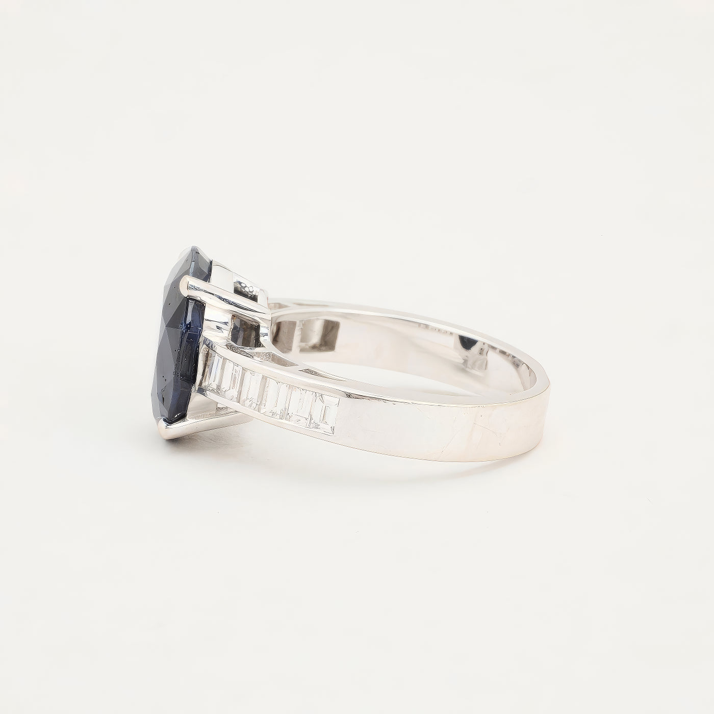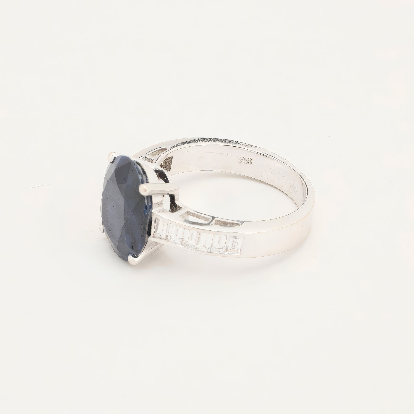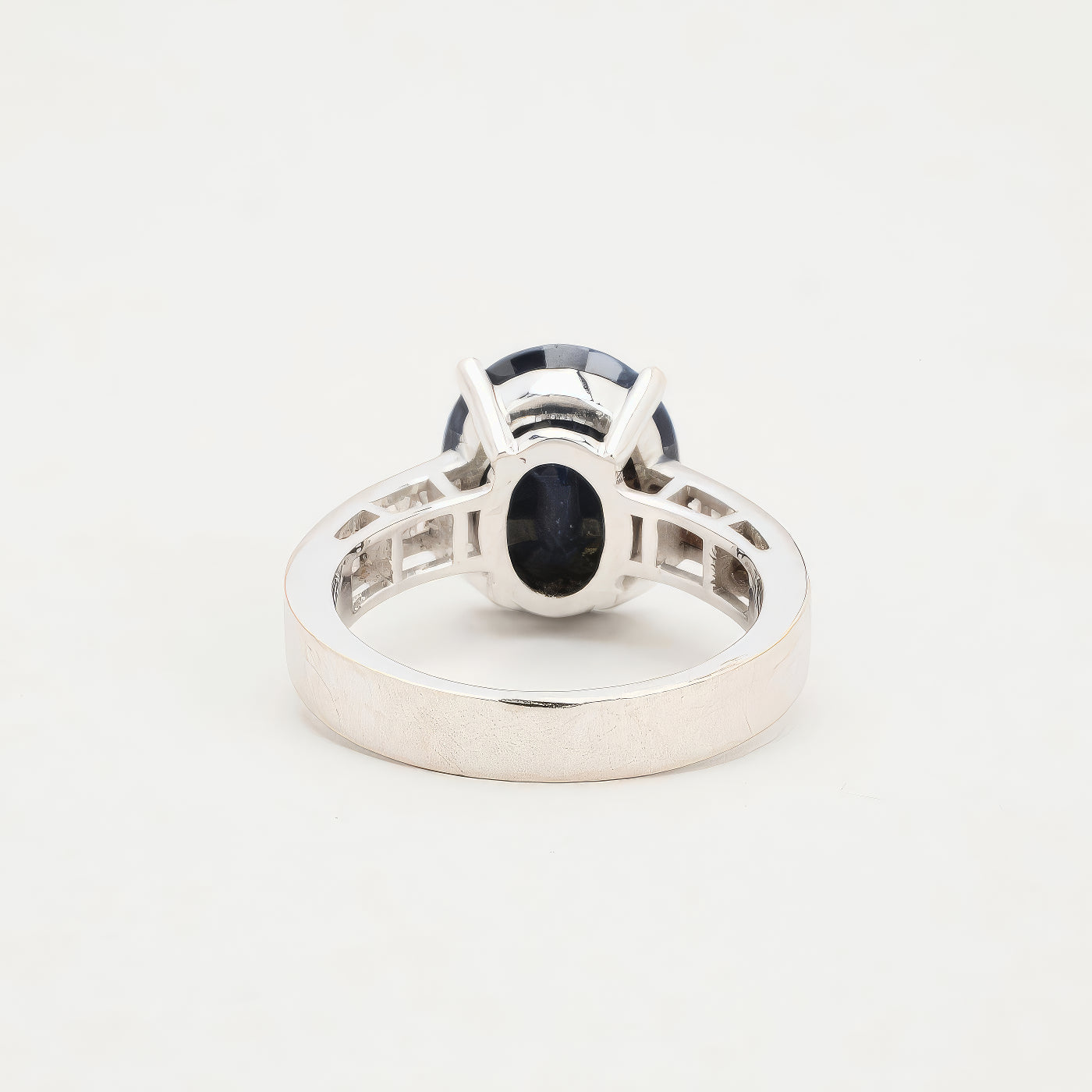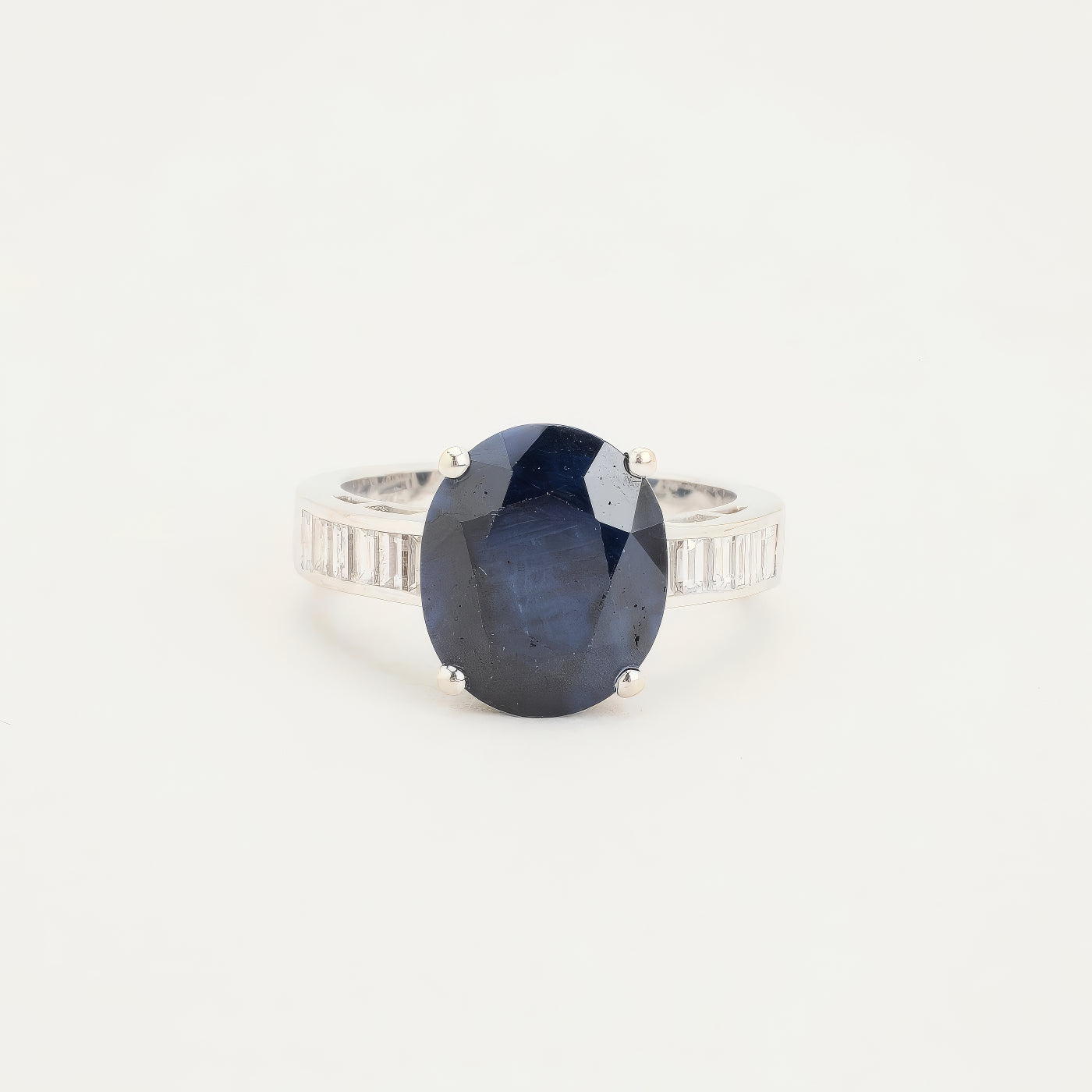 Cocktailring i 18K hvidguld med diamanter (0.66 ct) og en safir, Str. 54