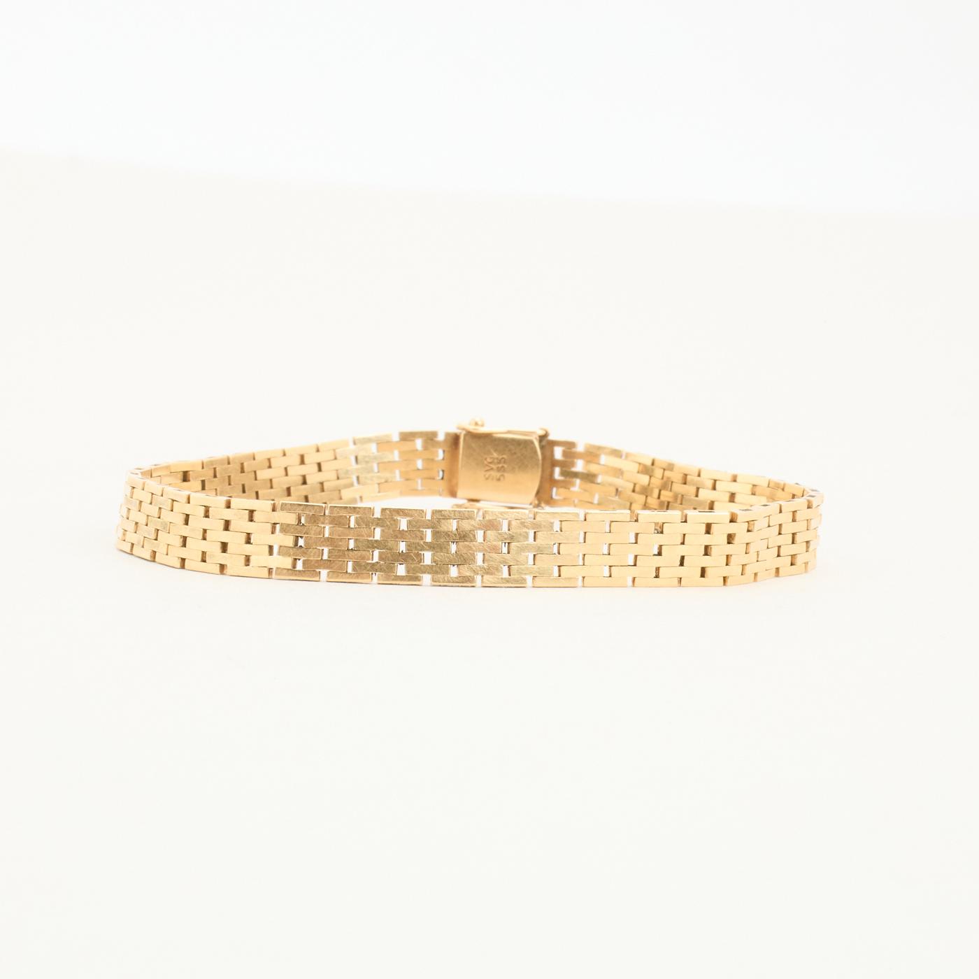 Egenskaber: Mursten Armbånd i 14 karat Guld, der i alt vejer 14.1 g.