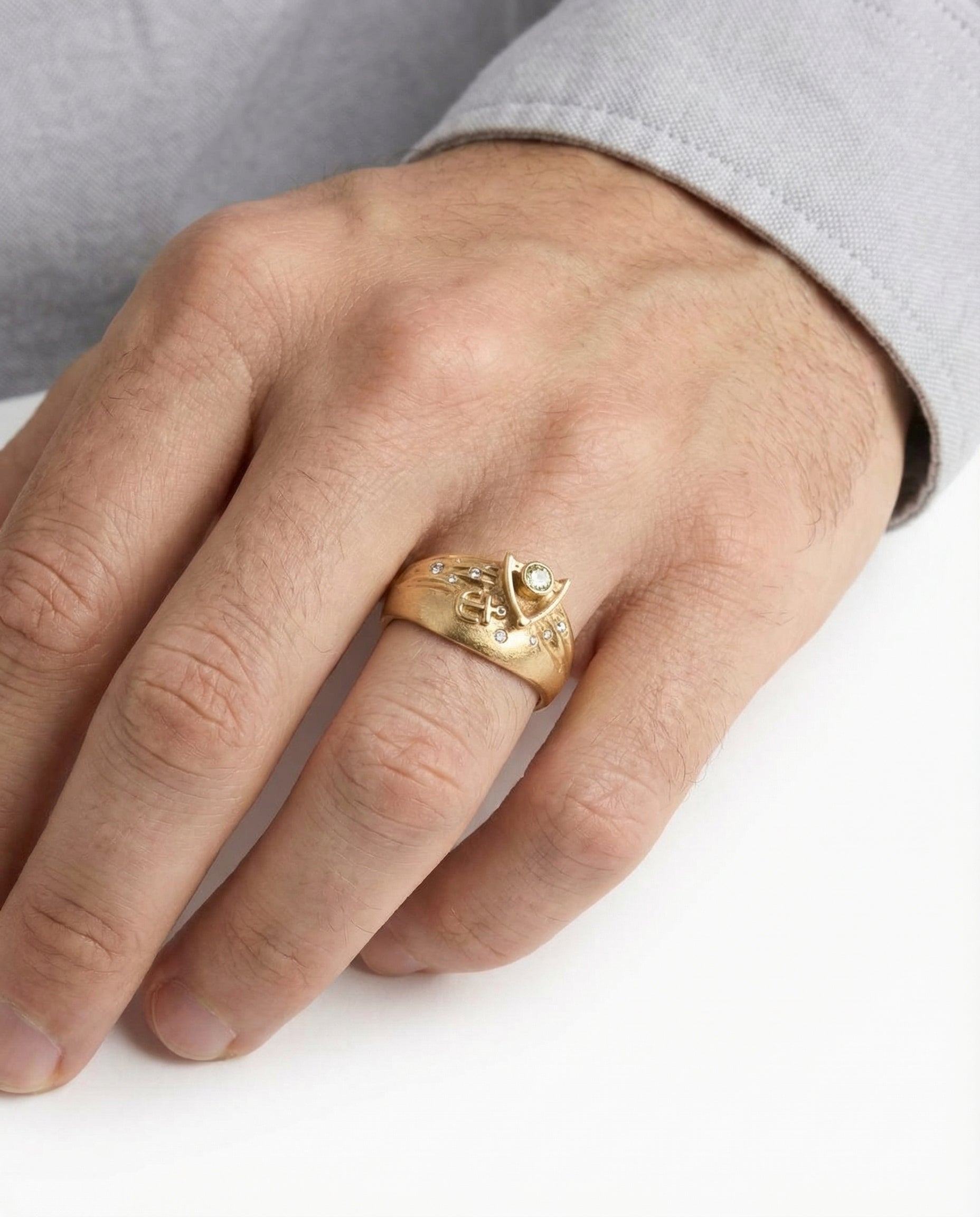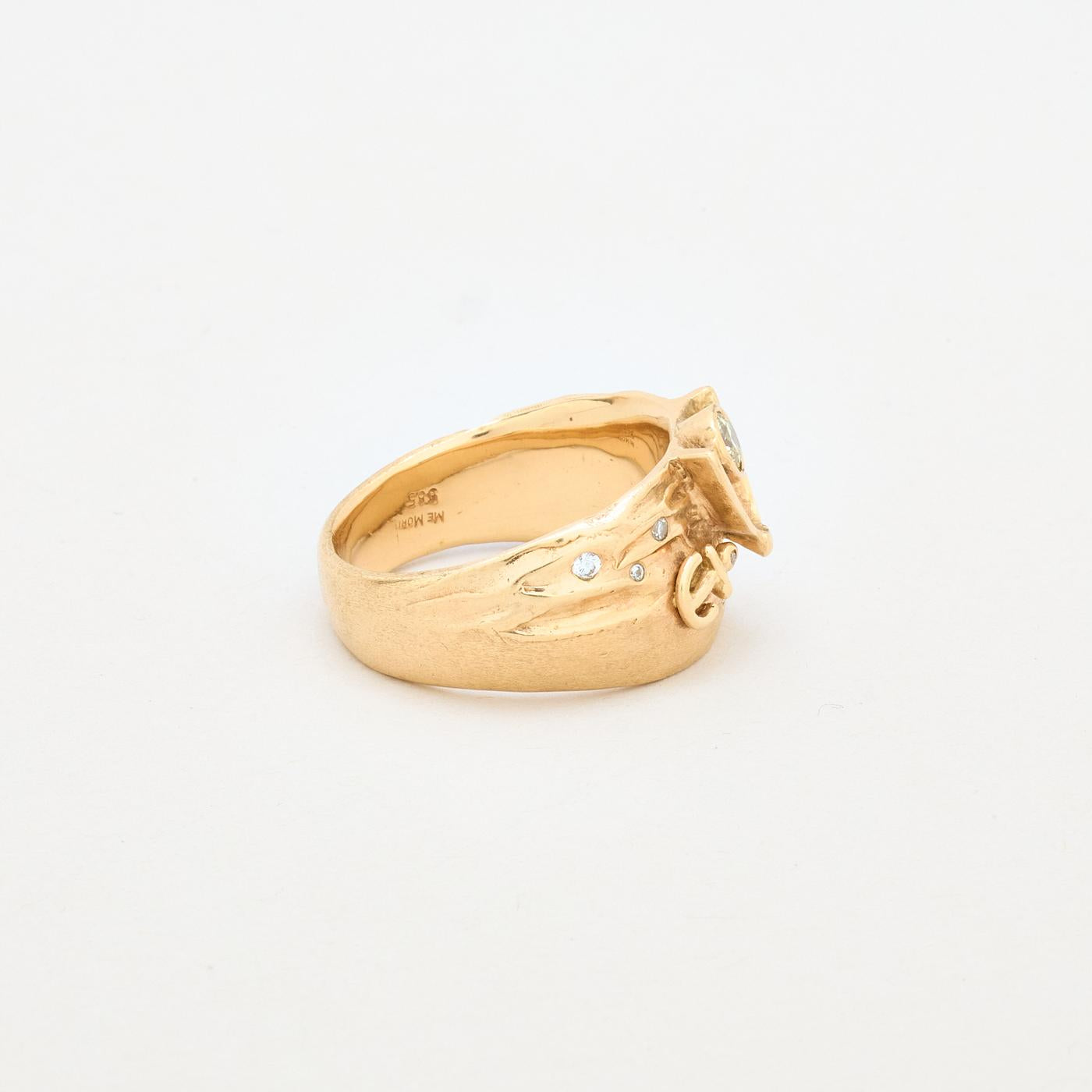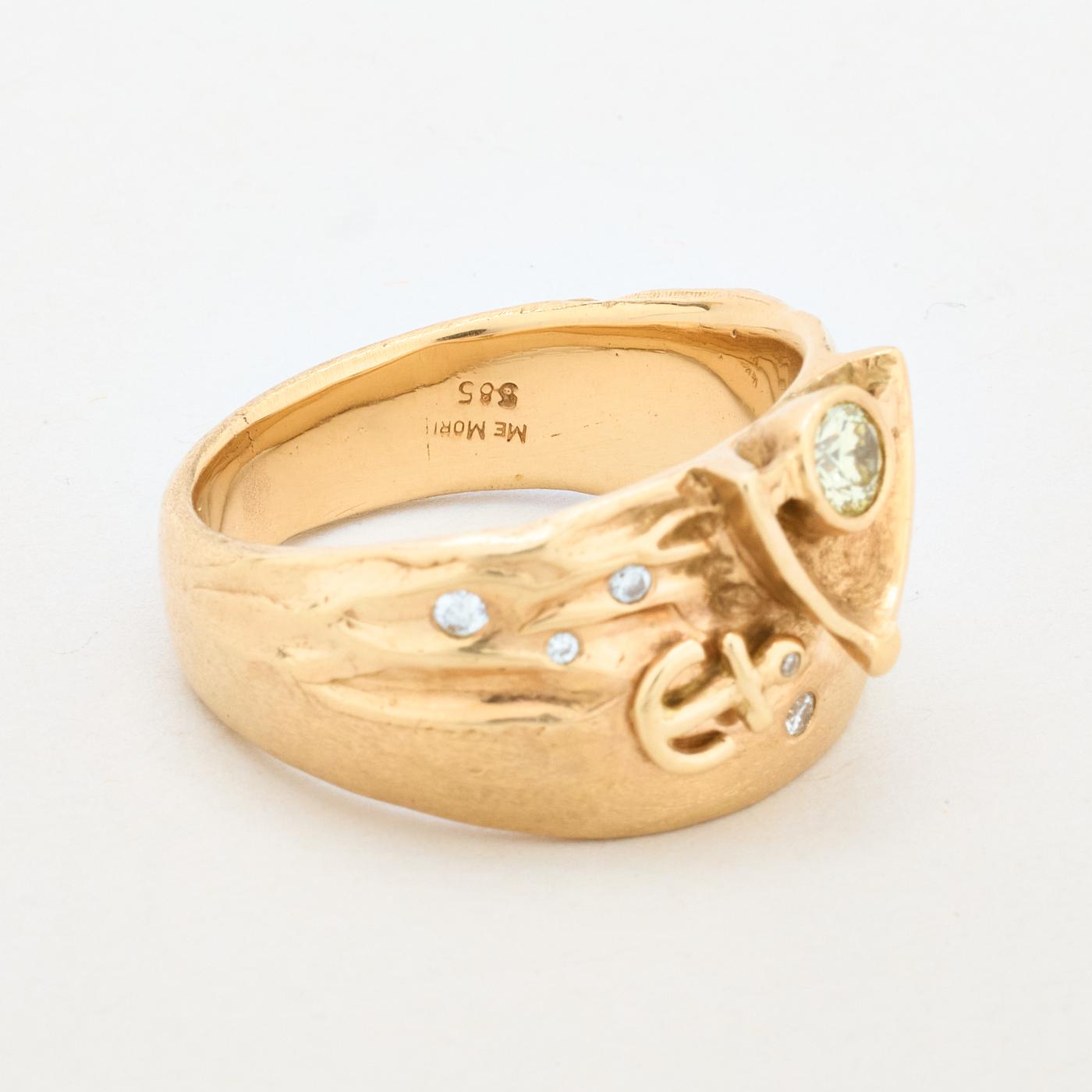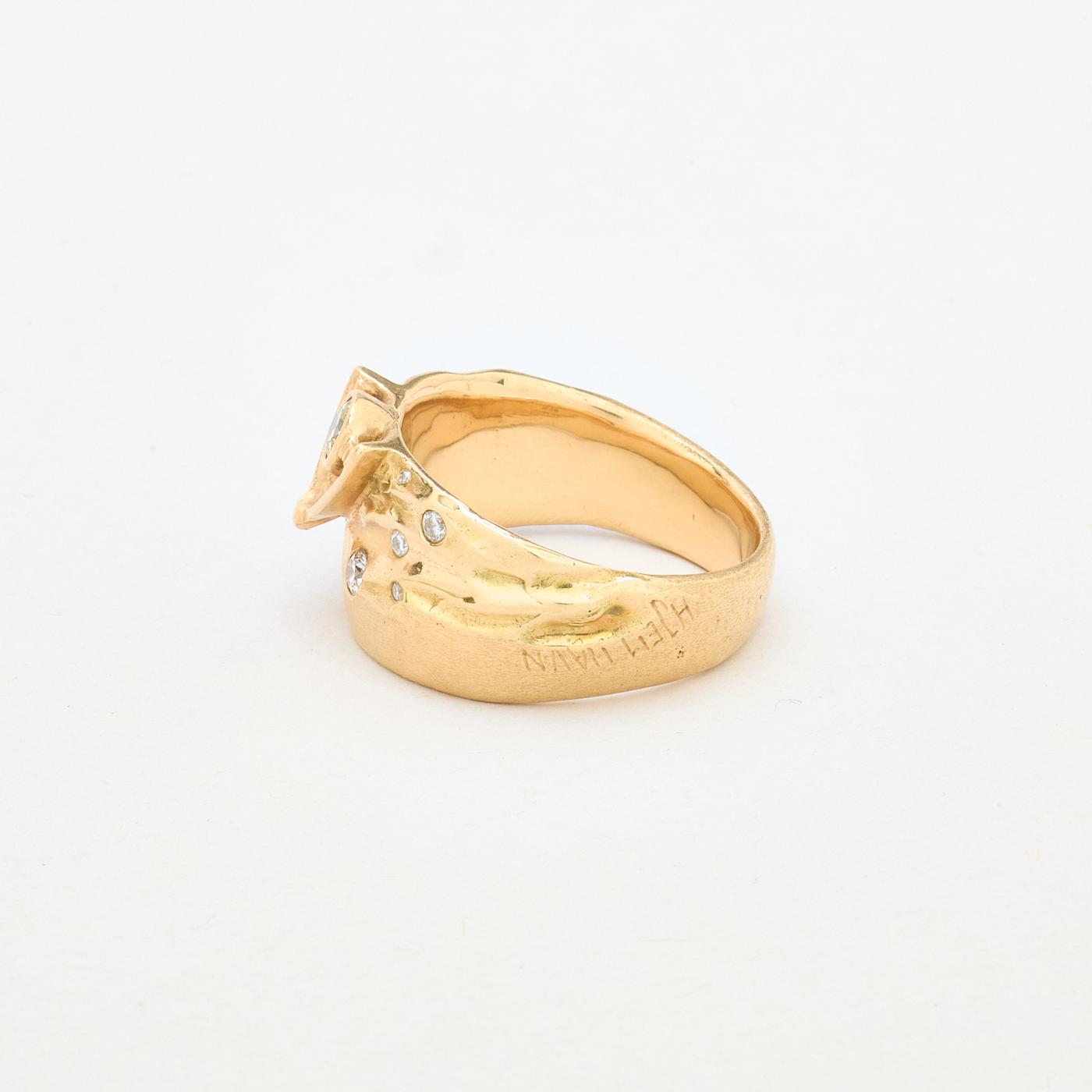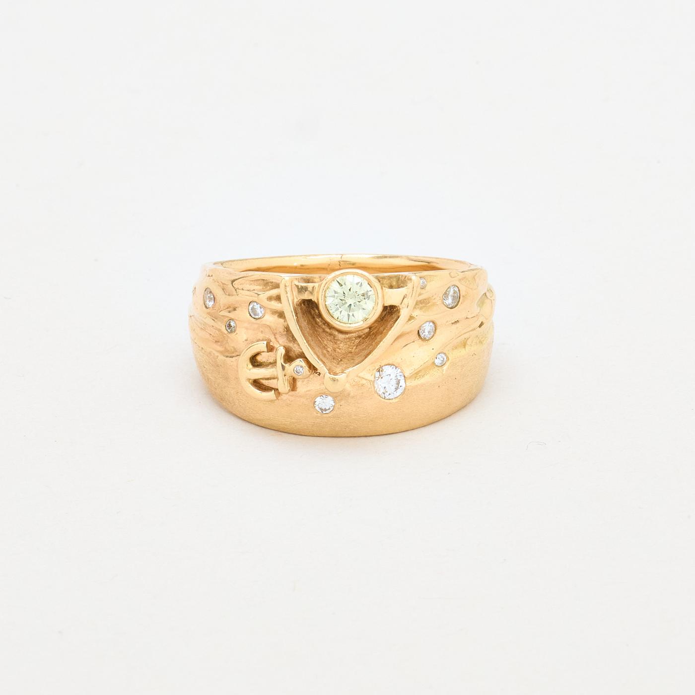 Organisk Anker Gypsyring i 14K guld med flere diamanter (0,51 ct), Str. 69