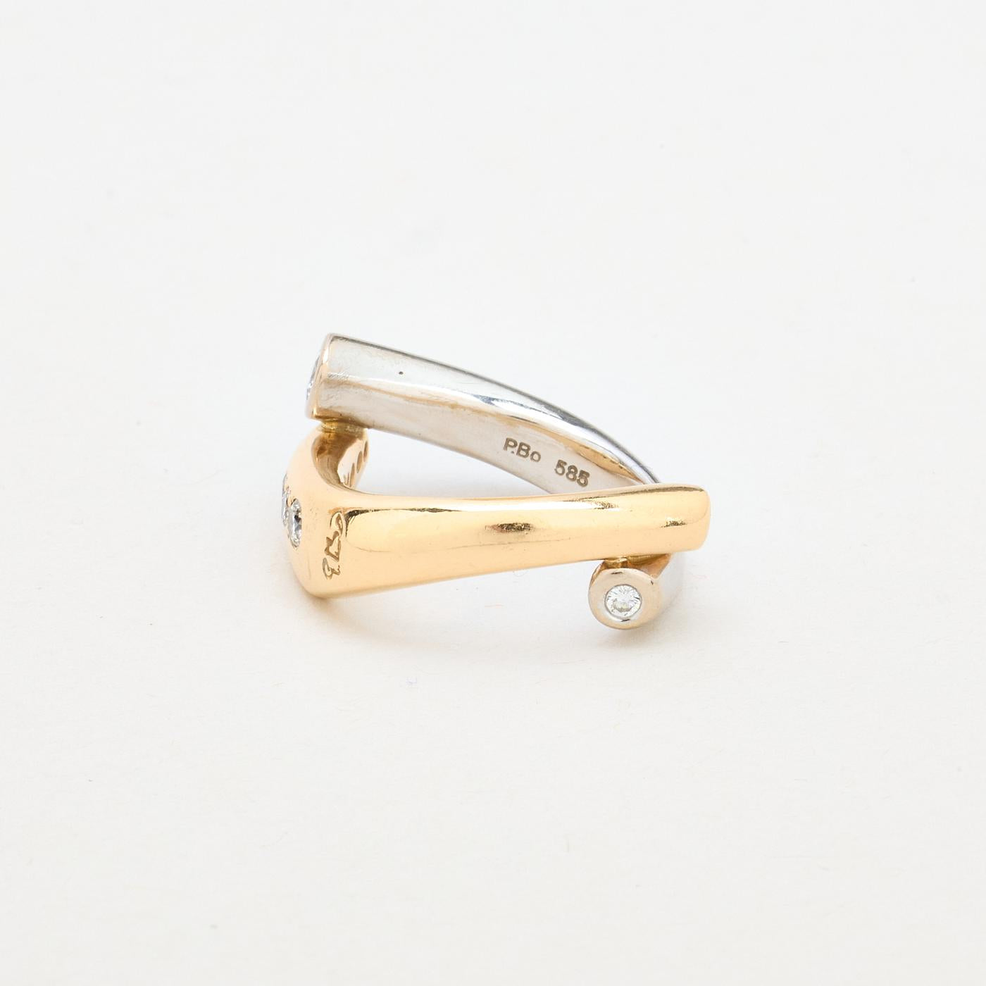 Per Borup Unika Crossoverring i 14K guld og hvidguld med diamanter (0,44 ct), Str. 53