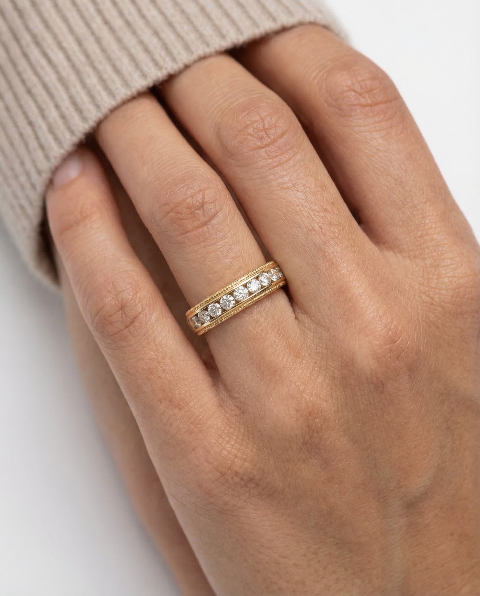 Antik Alliancering i 14 kt guld med diamanter (0,50 ct), Str. 55