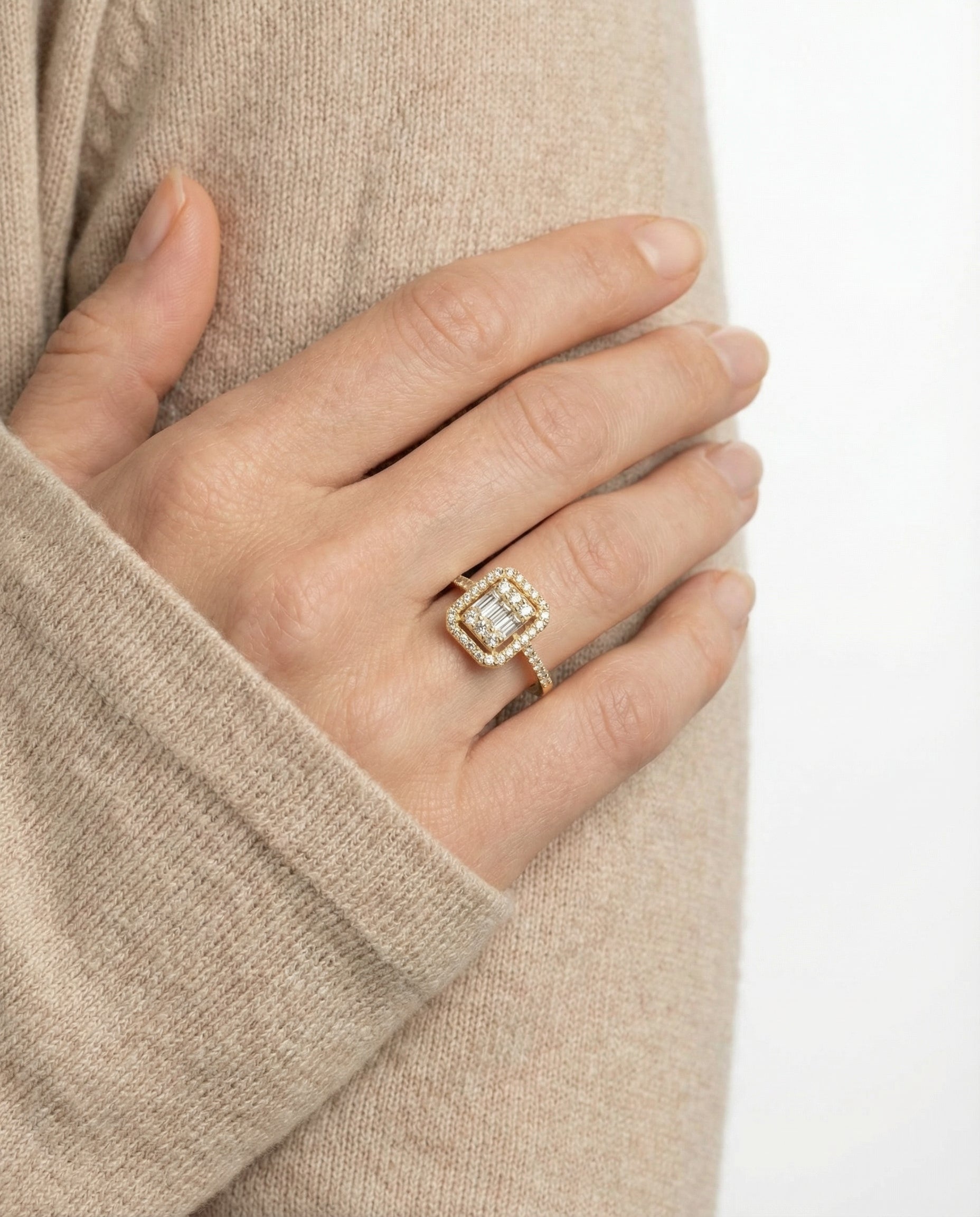 Illusionring i 14K guld med diamanter (0.48 ct), Str. 57