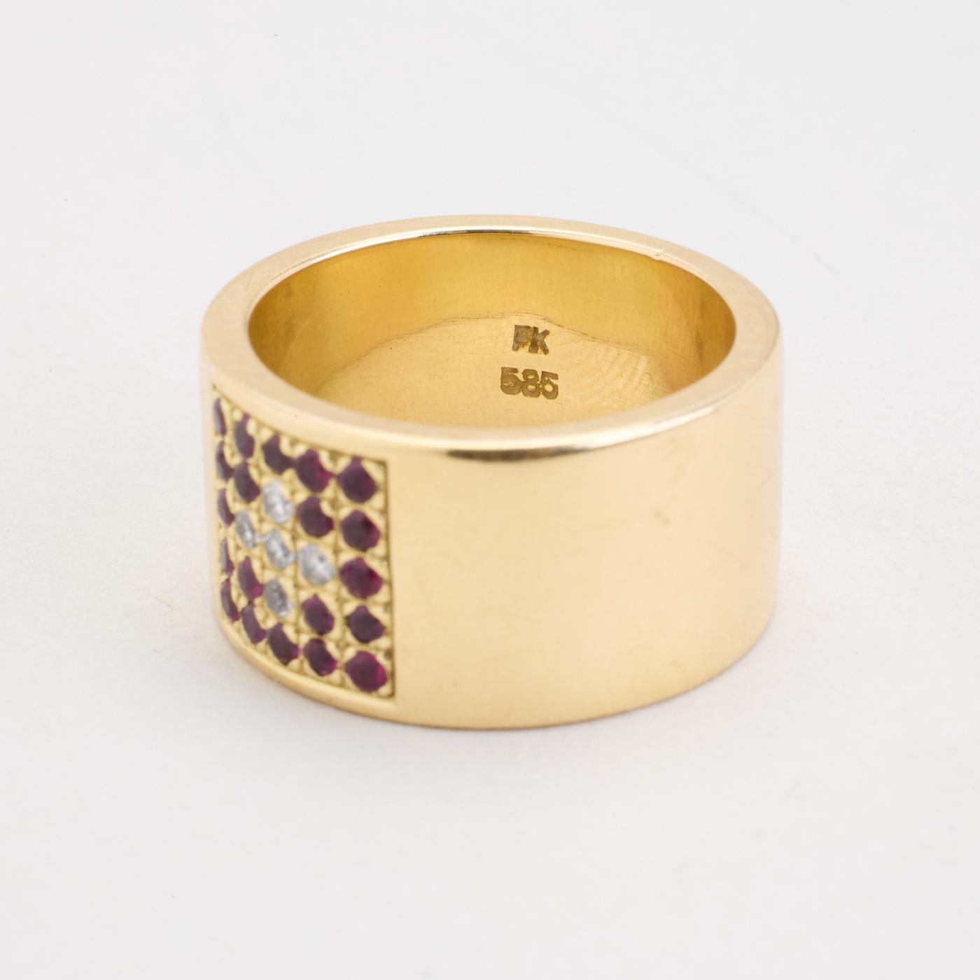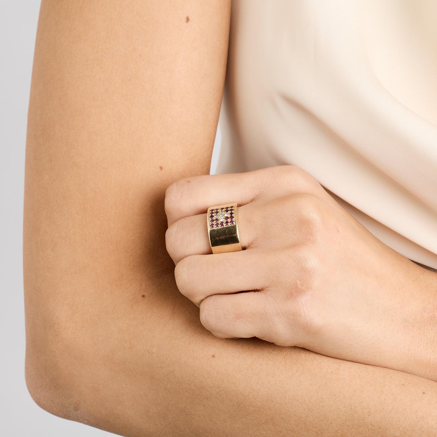 Statement ring med diamant (0.05 ct) i 14 karat med en Rubin str. 53 - 54