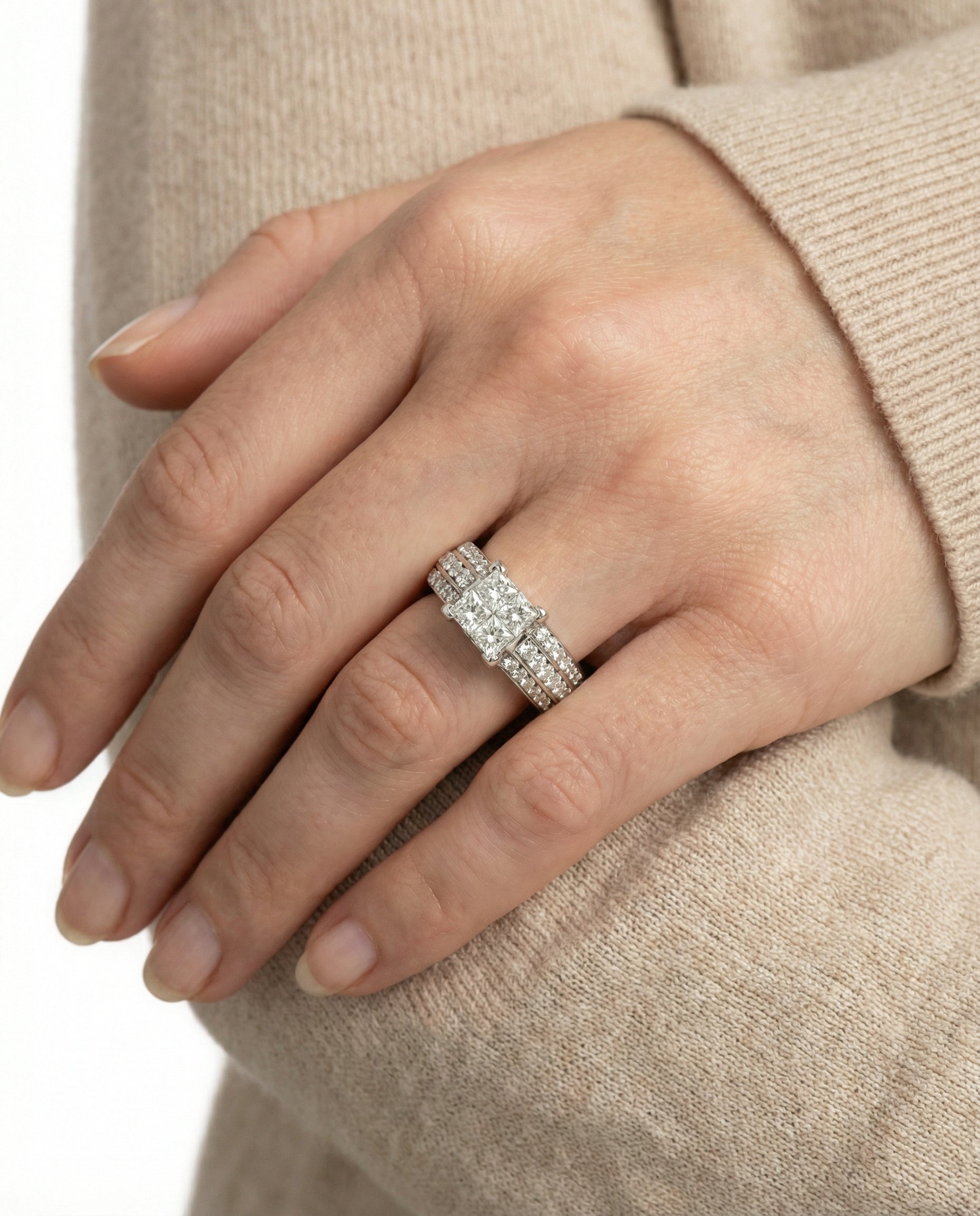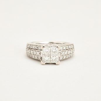 Illusion ring med diamanter (1.16 ct) i 18K hvidguld, str. 49