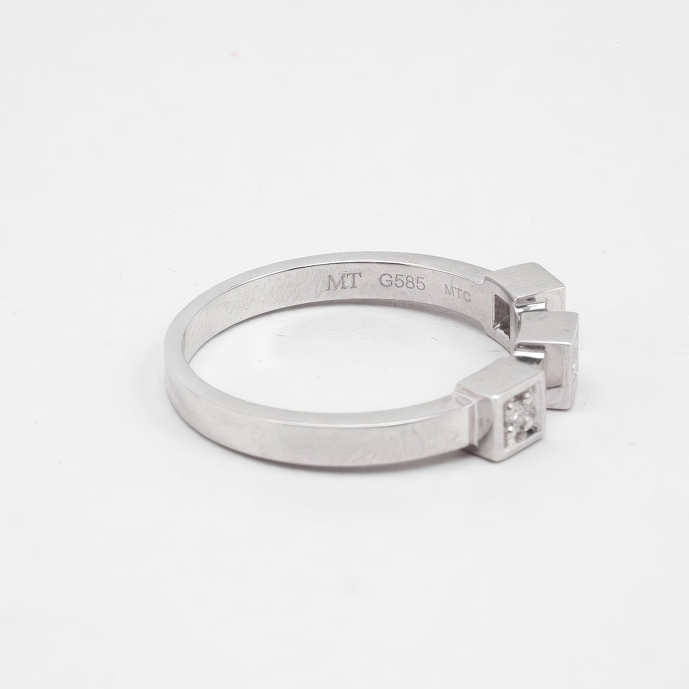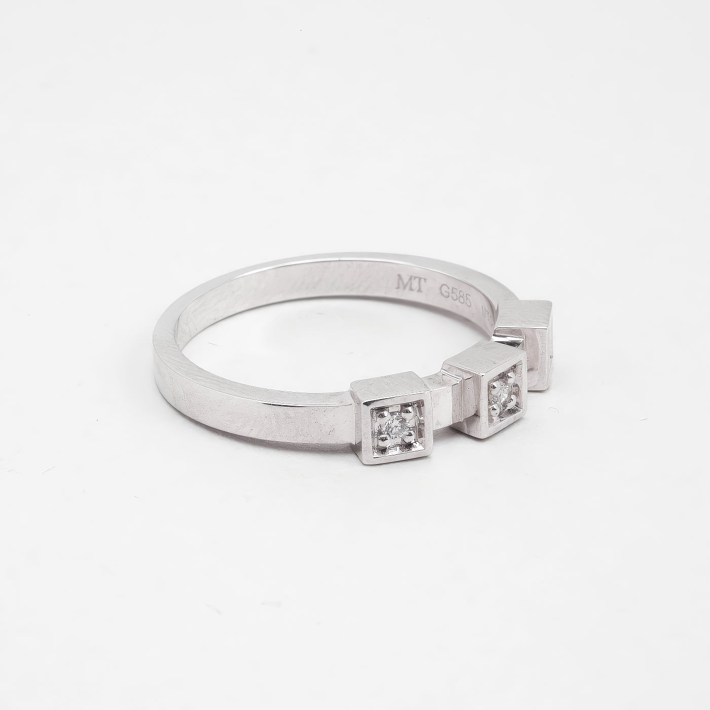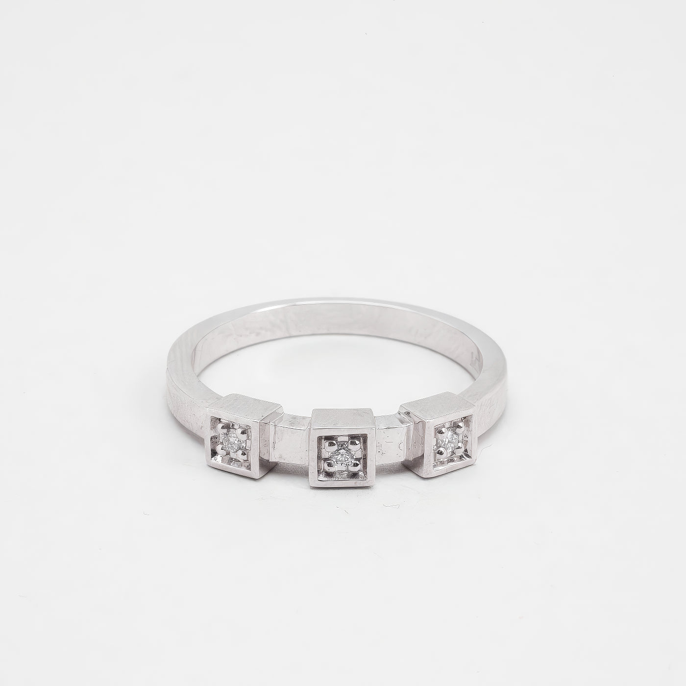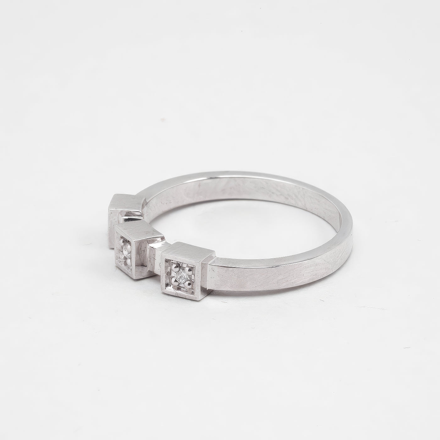 Geometrisk ring med diamant (0.045 ct) i 14K hvidguld, str. 54