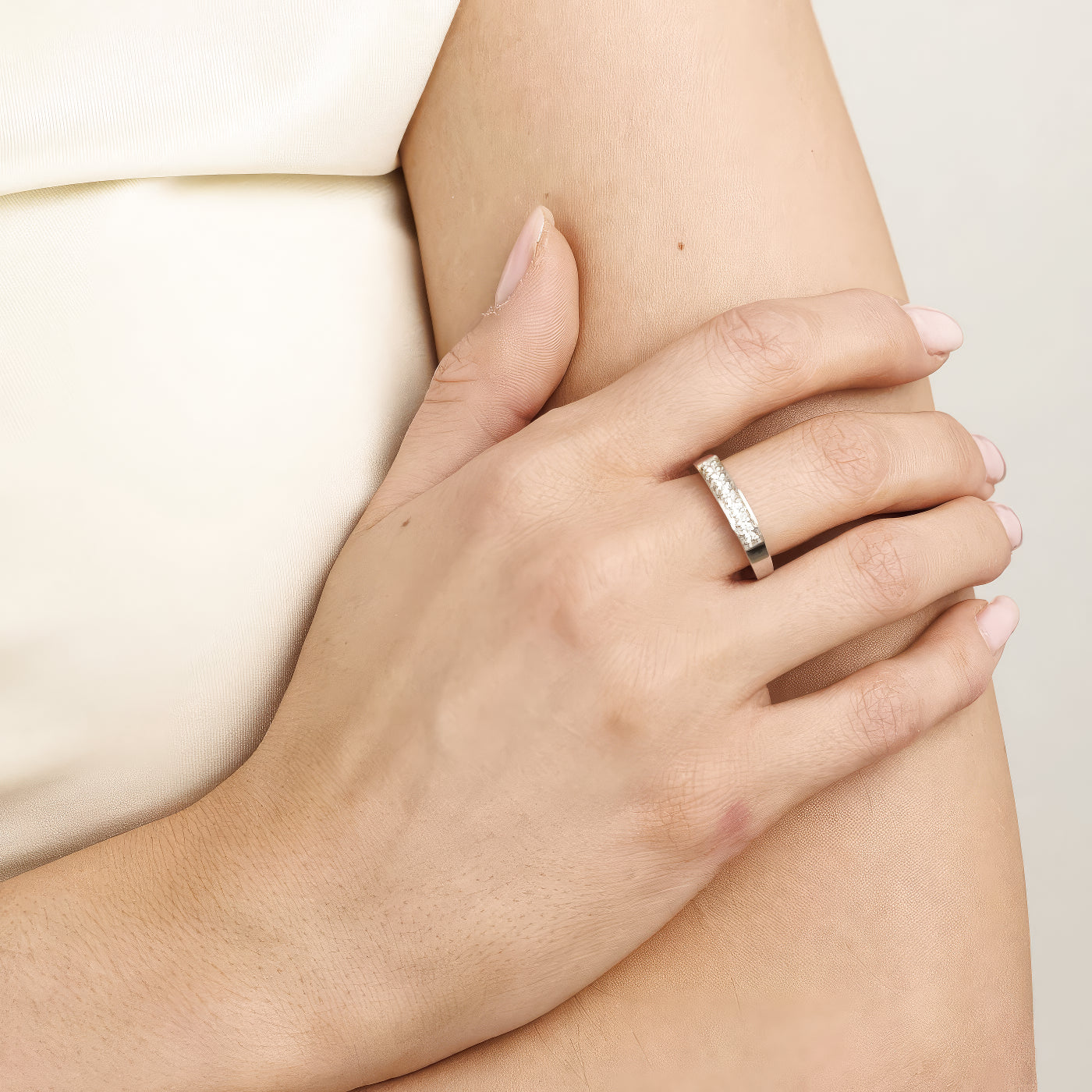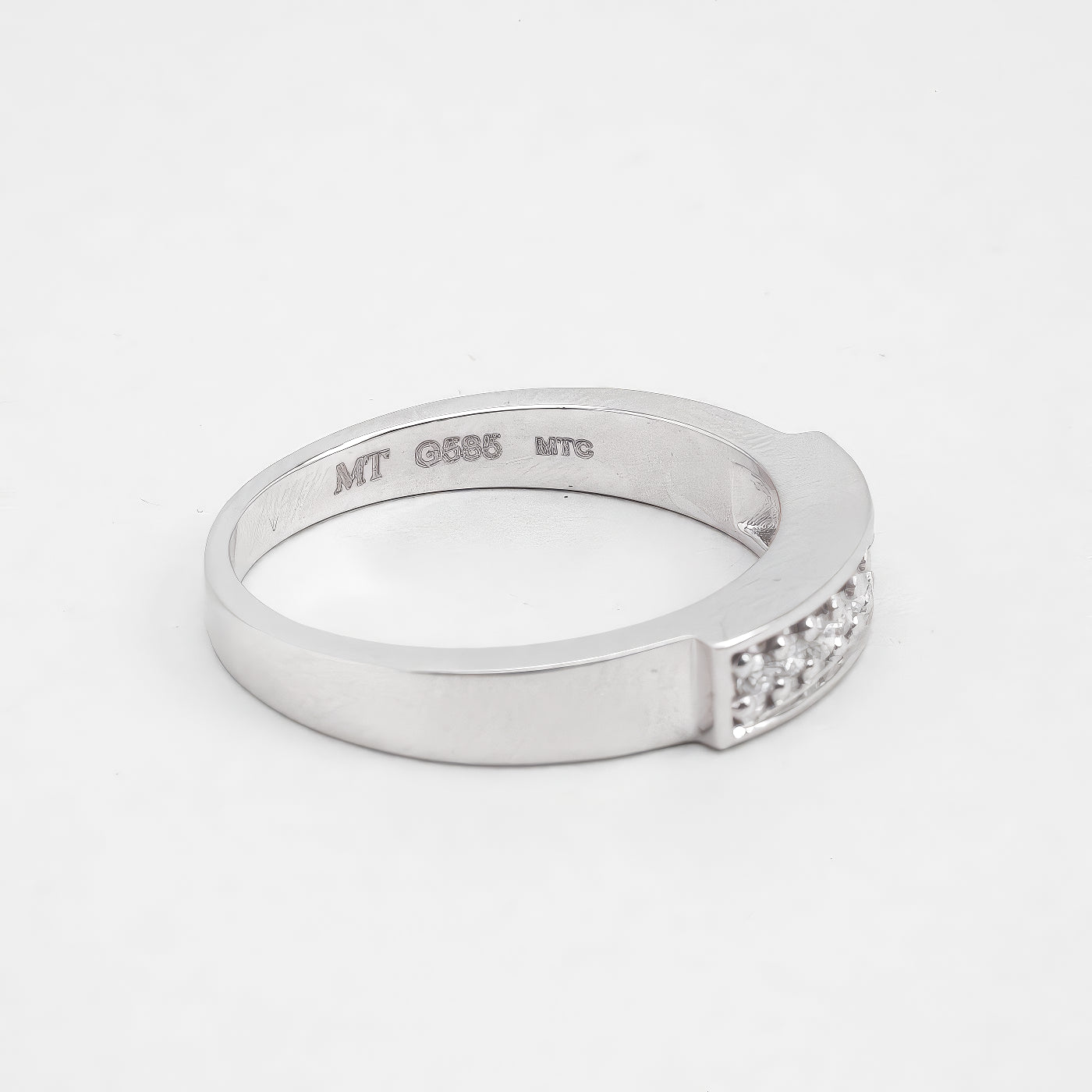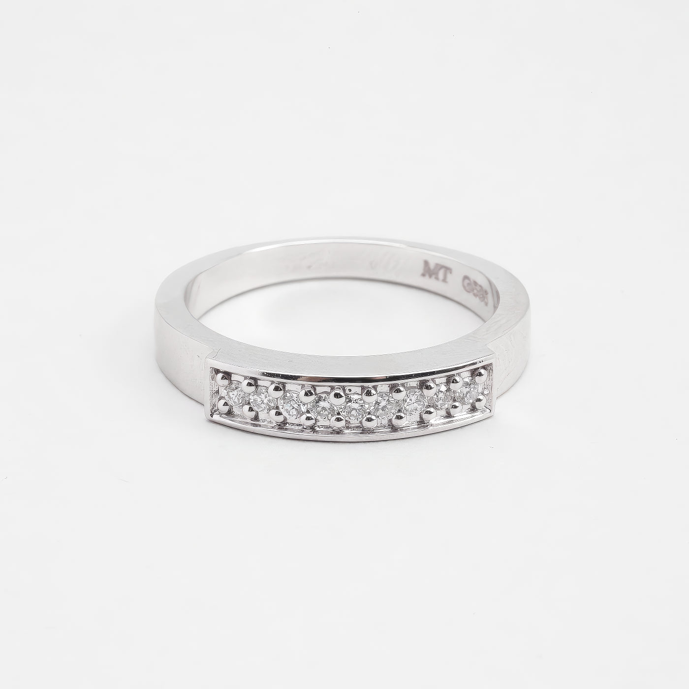 Alliancering med diamant (0.135 ct) i 14K hvidguld, str. 54