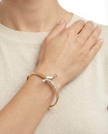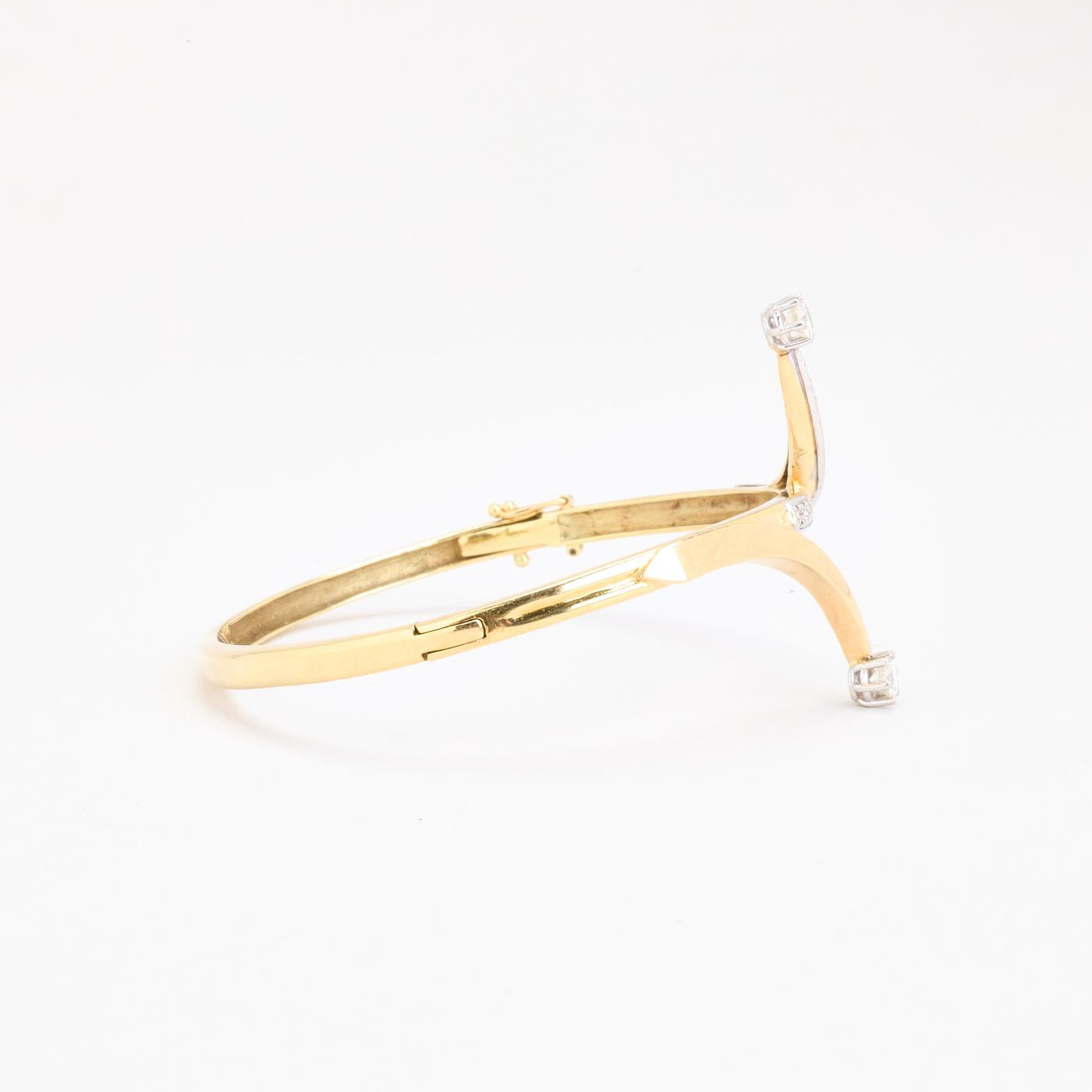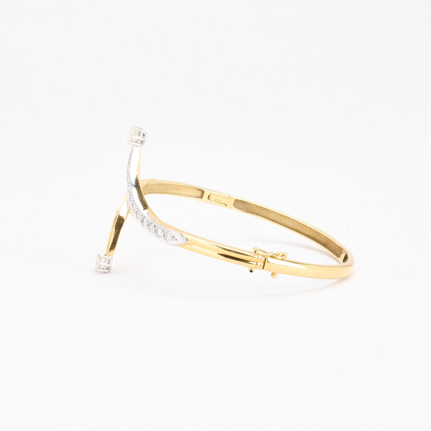 Armring med lås i 14K guld og hvidguld med diamanter (0.9 ct), 5.7 cm, 16 g