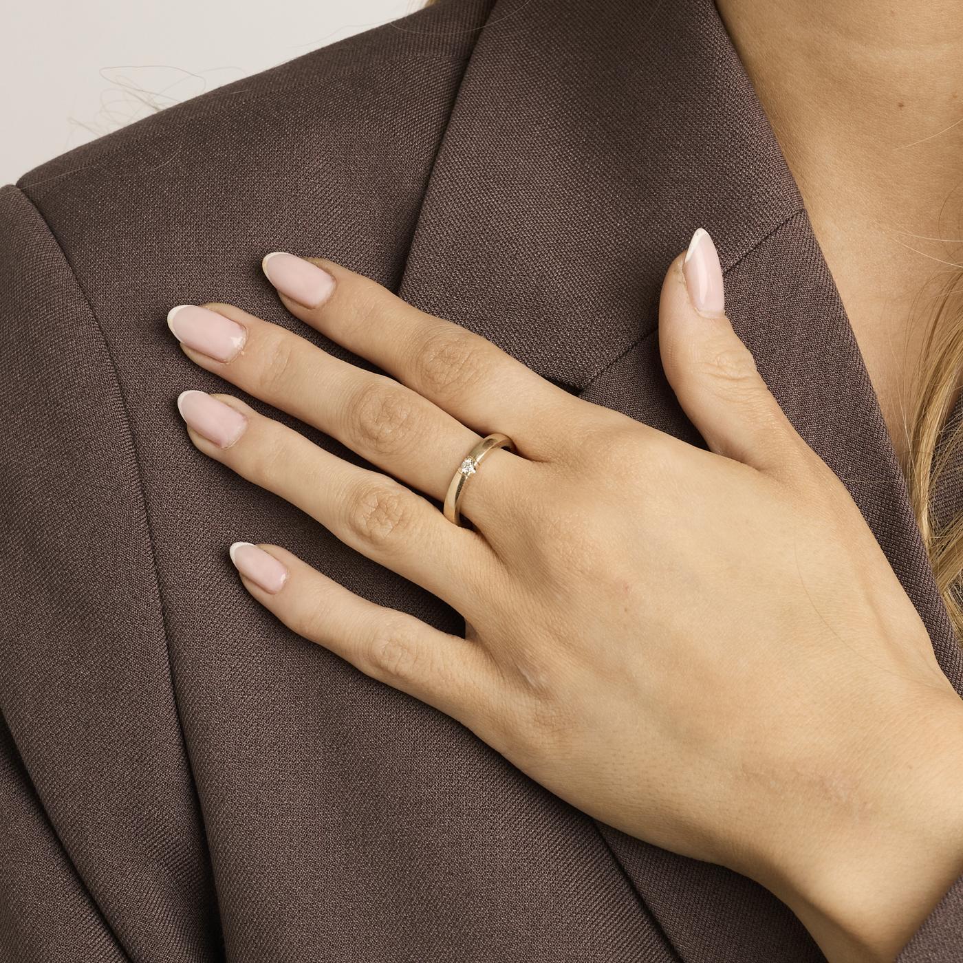 Scrouples minimalistisk stenring i 14K guld, med en diamant (0.07 ct), Str. 54