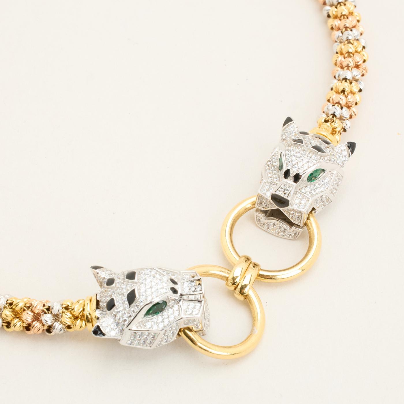 Panter collier i 18 karat med en Zirkonia, 46 cm