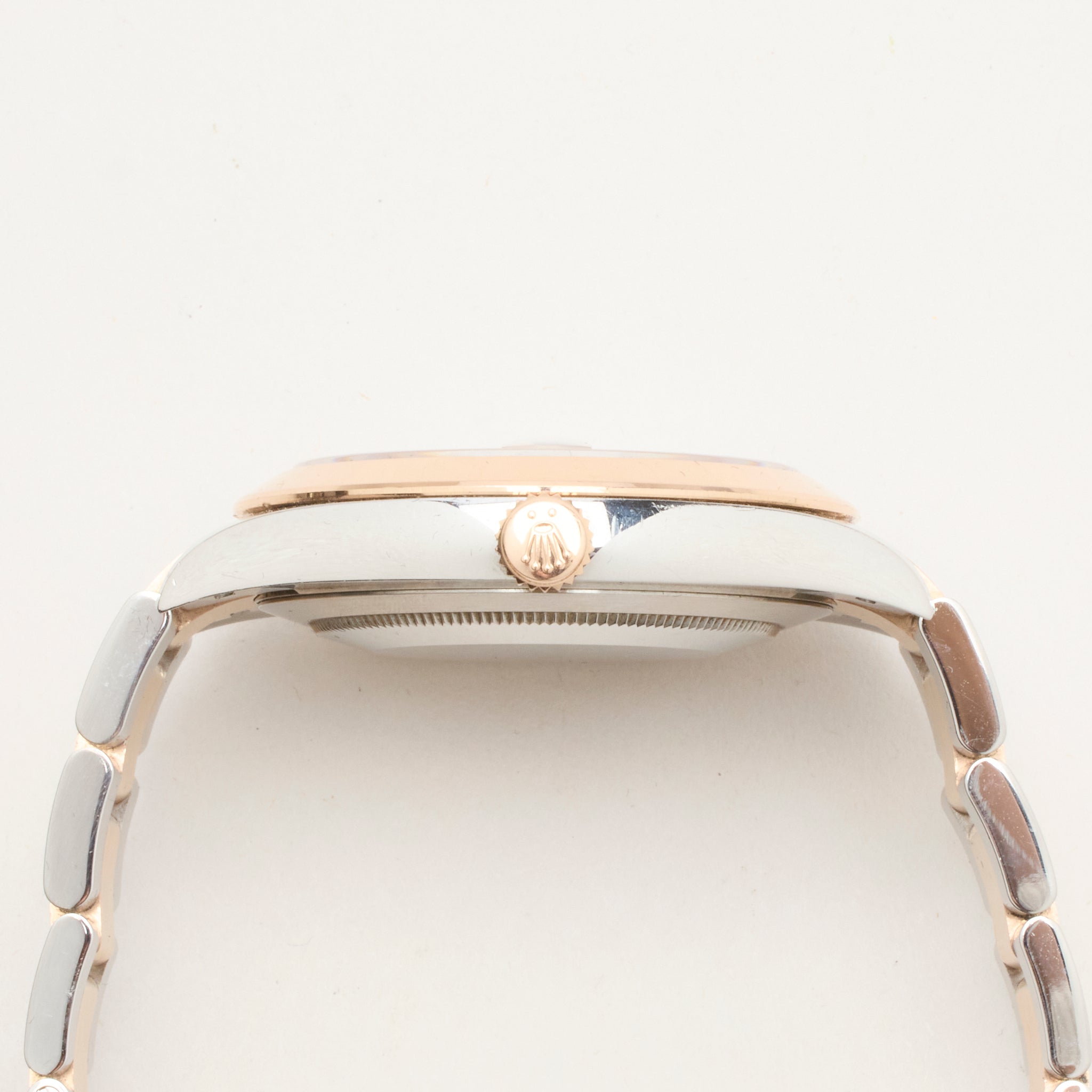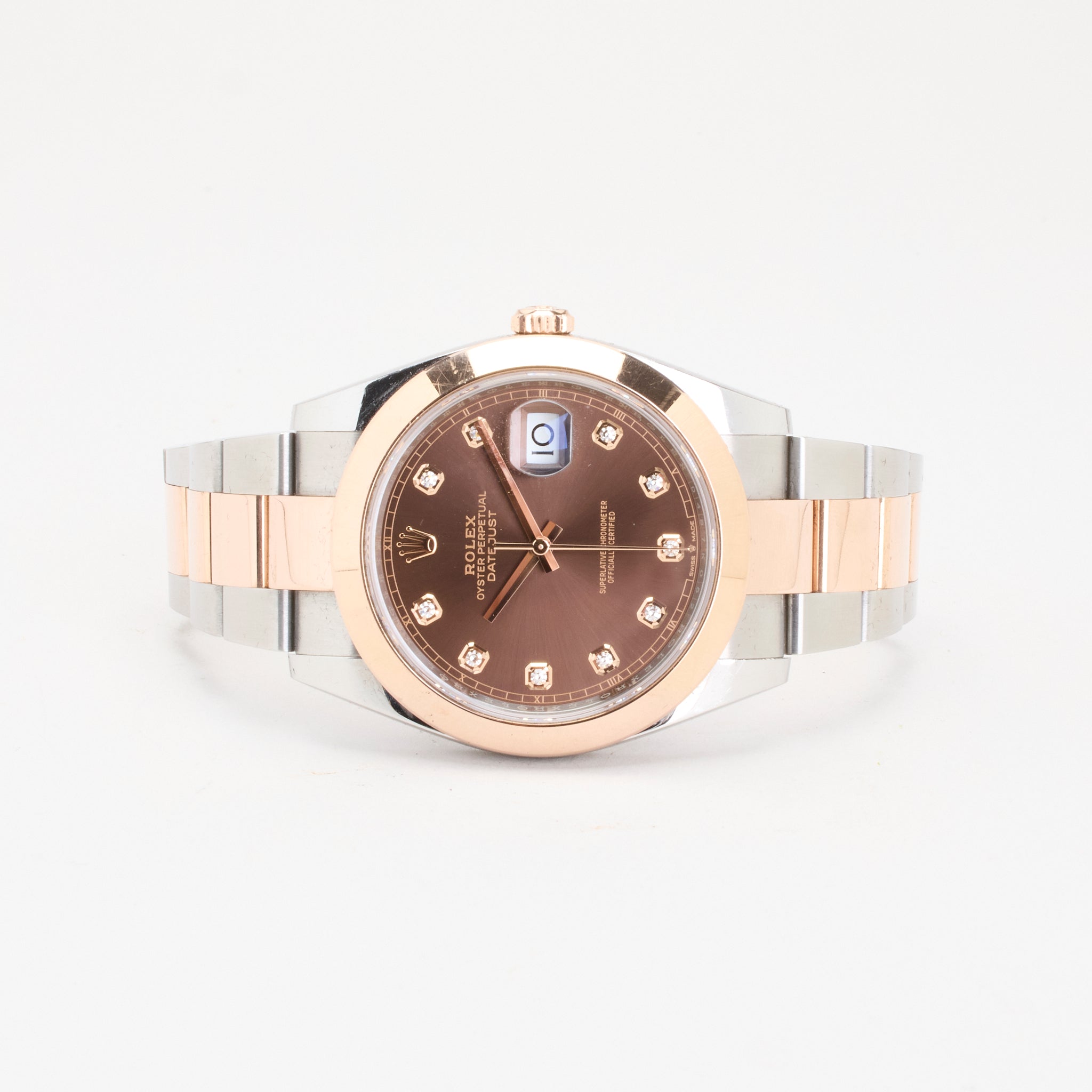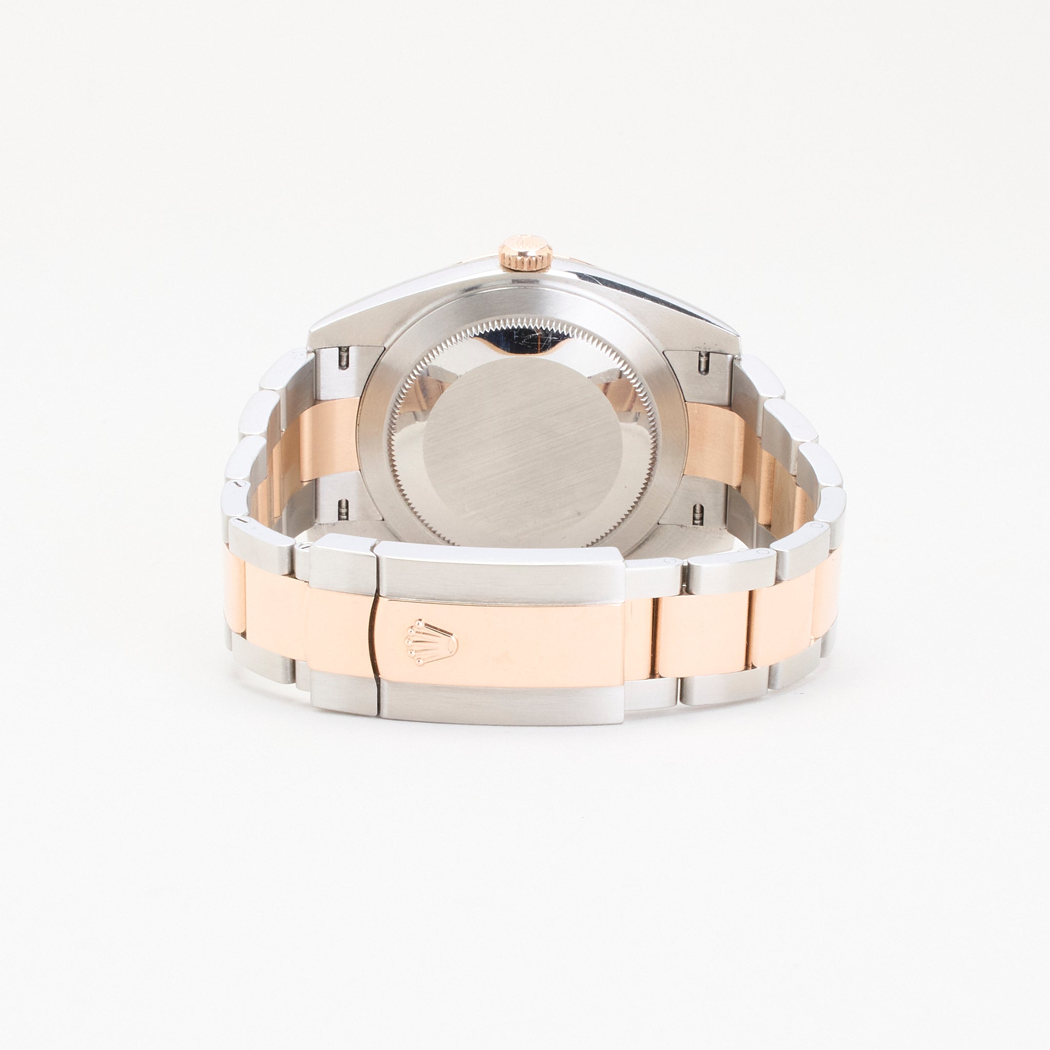 Rolex Datejust 41 reference 126301 forener klassisk elegance med moderne design. Uret er udført i stål og 18 karat Everose-guld med en smuk rosaguld-tone, der giver et varmt og sofistikeret udtryk. Indeni tikker caliber 3235 – et præcisionsværk med imponerende gangreserve og certificeret præcision.