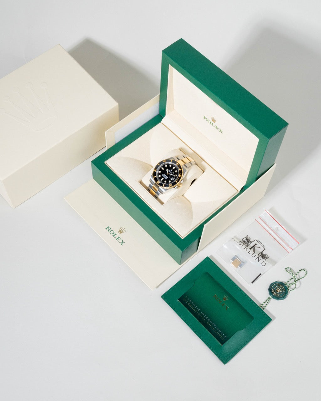 Stilfuld og eftertragtet Rolex Submariner i stål og 18K guld (Rolesor). Ref. 126613LN kombinerer ikonisk Submariner-design med moderne opdateringer som keramisk Cerachrom-bezel, Calibre 3235 værk og øget robusthed. Den sorte skive og bezel giver et skarpt, luksuriøst udtryk, mens den klassiske Oyster-lænke fuldender helheden. Et perfekt valg til dig, der vil have både sport og elegance i ét ur.Uret er gennemtestet og fuldt funktionsdygtigt. Uret kan have ganske små og ubetydelige kosmetiske ridser.