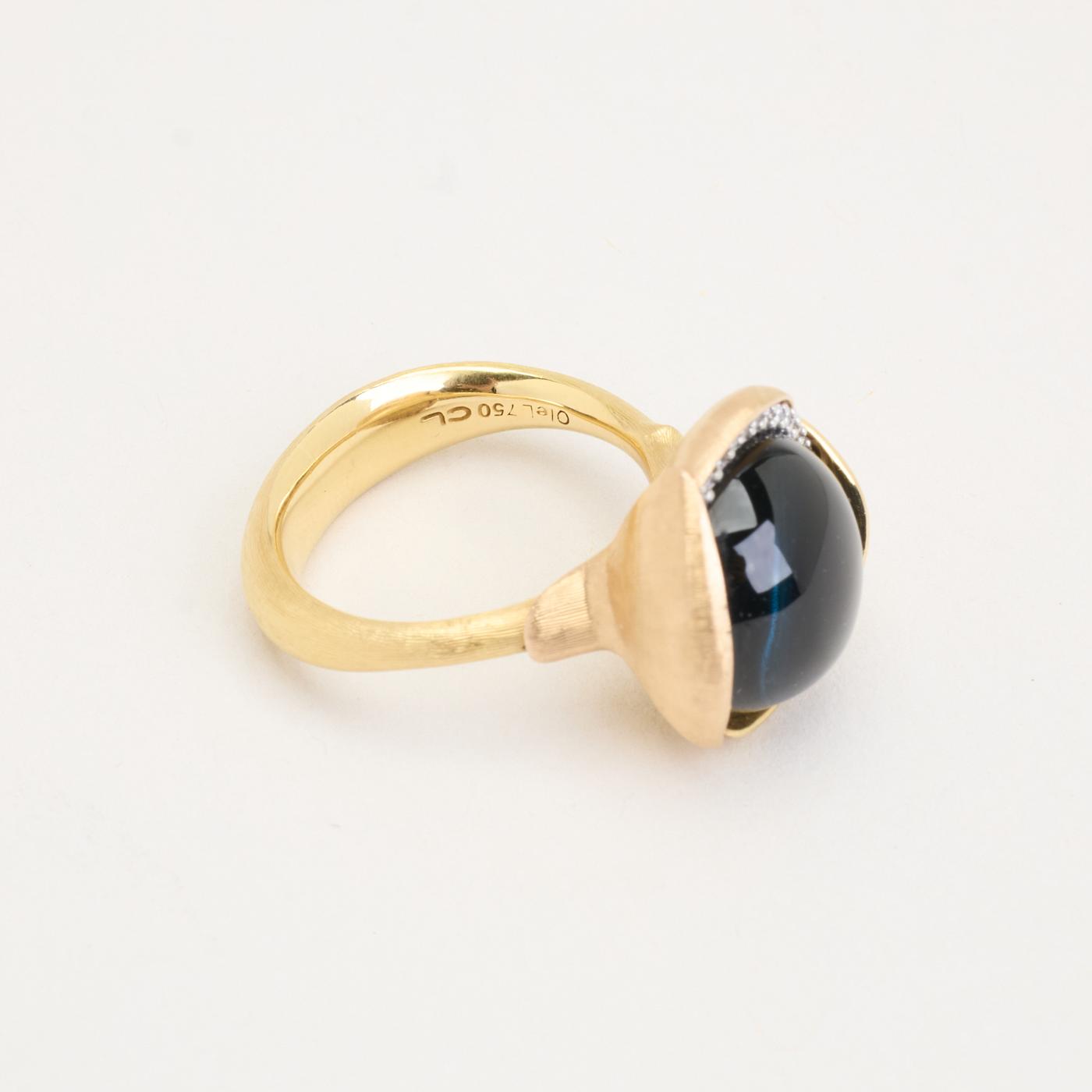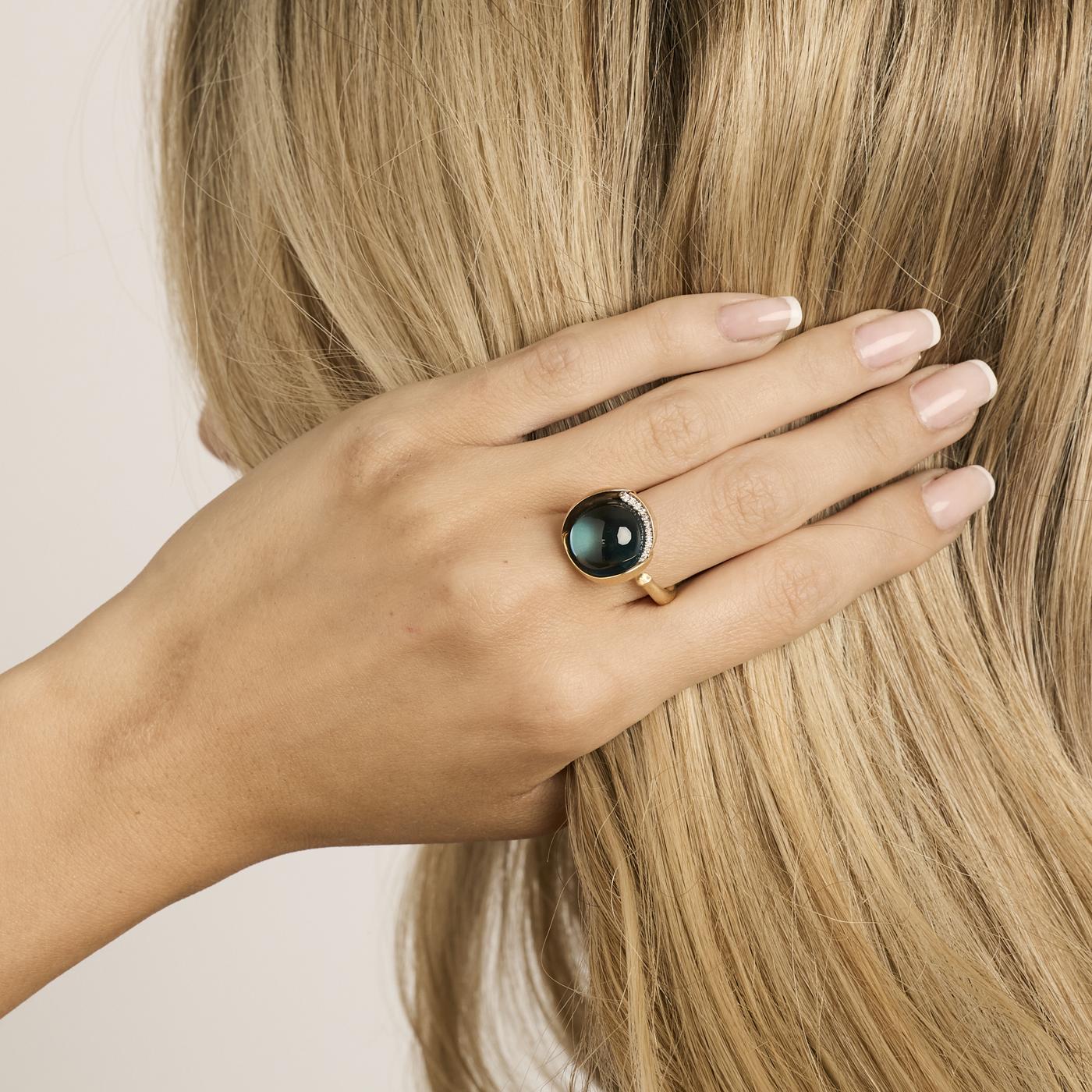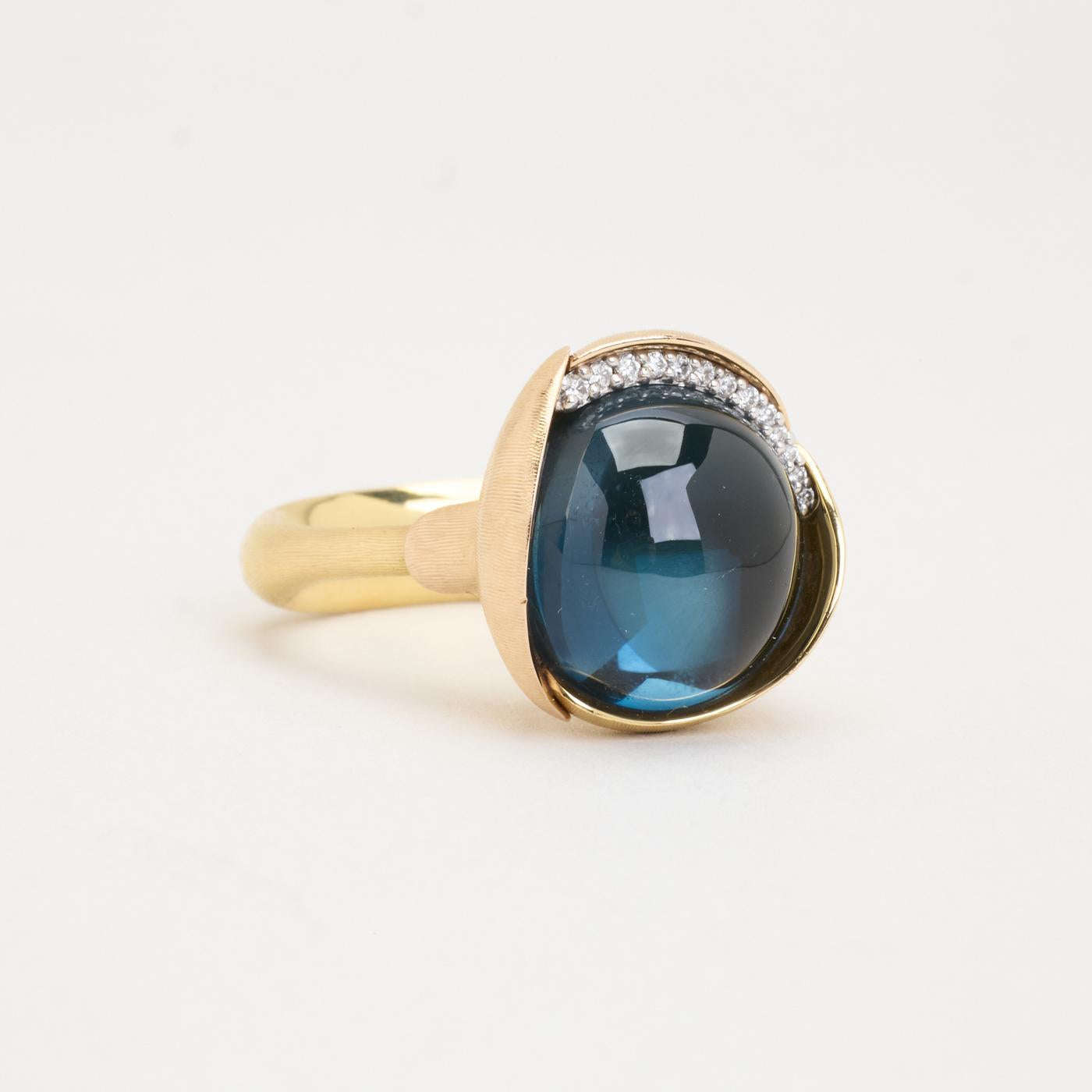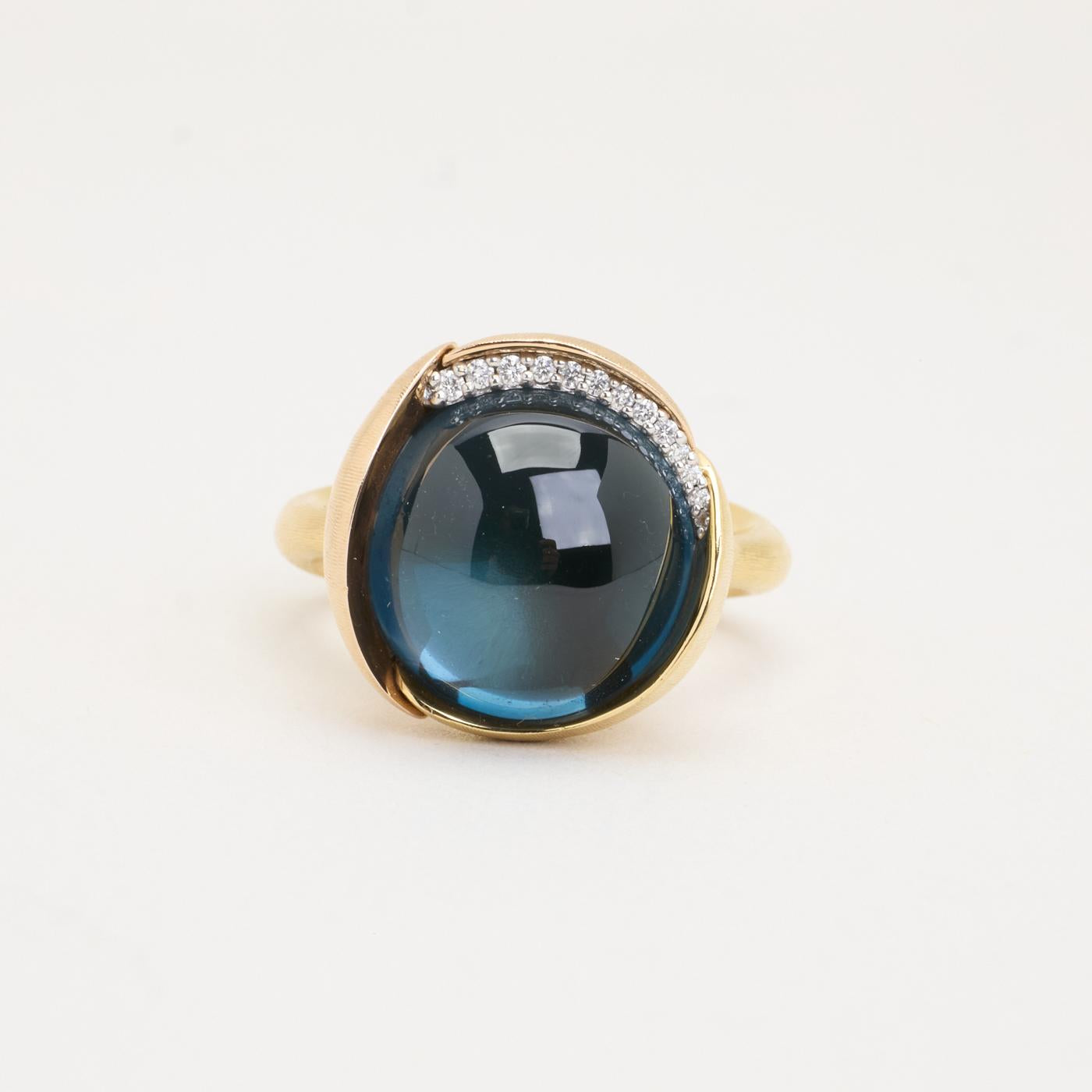 Ole Lynggaard statement ring i 18K guld med en blå topas og flere diamanter, Str. 51
