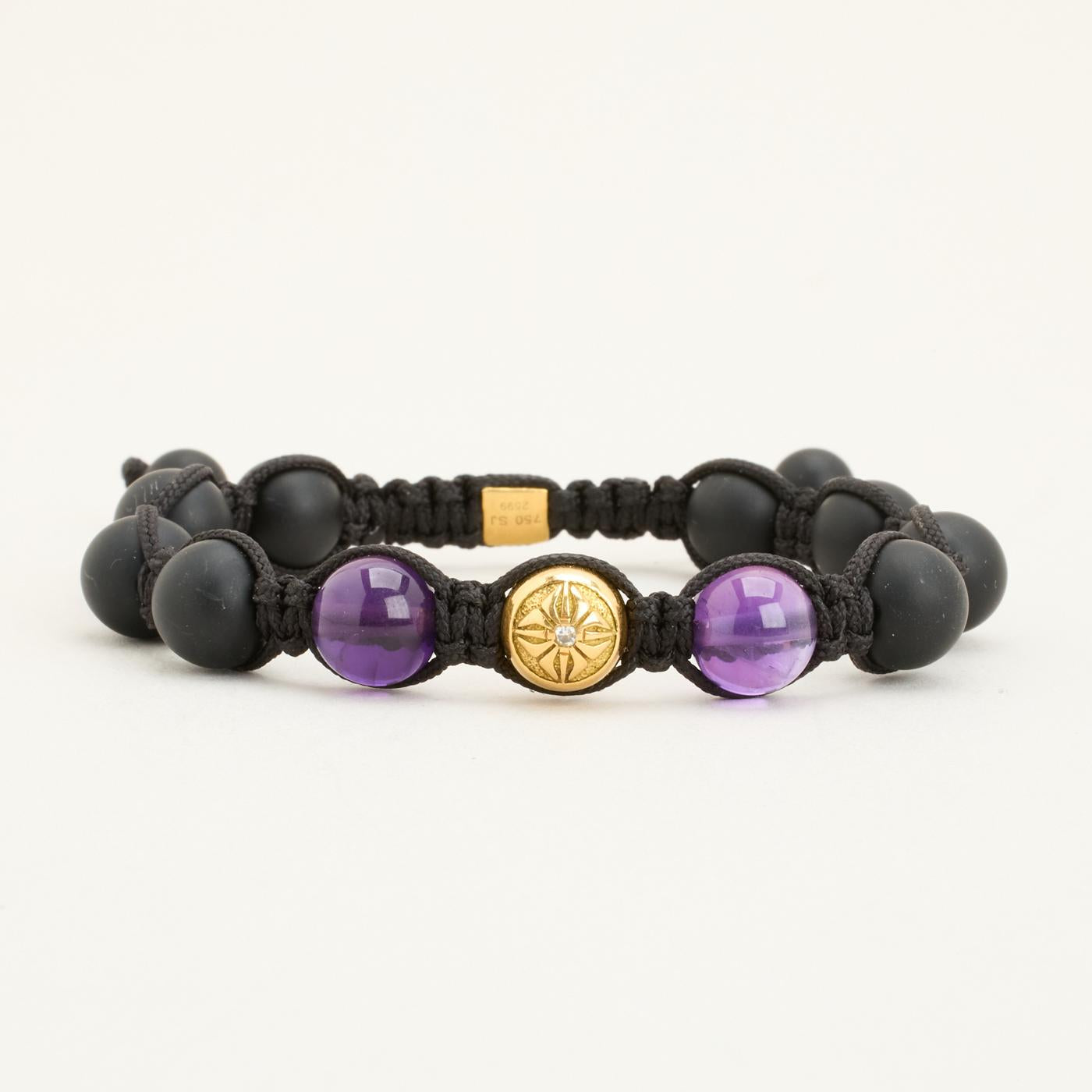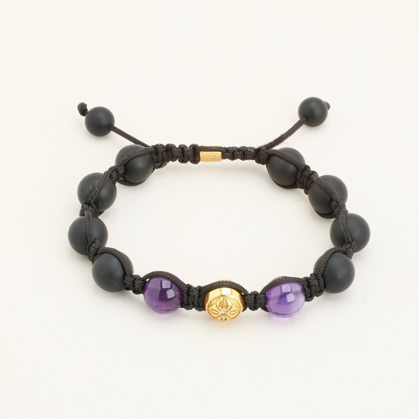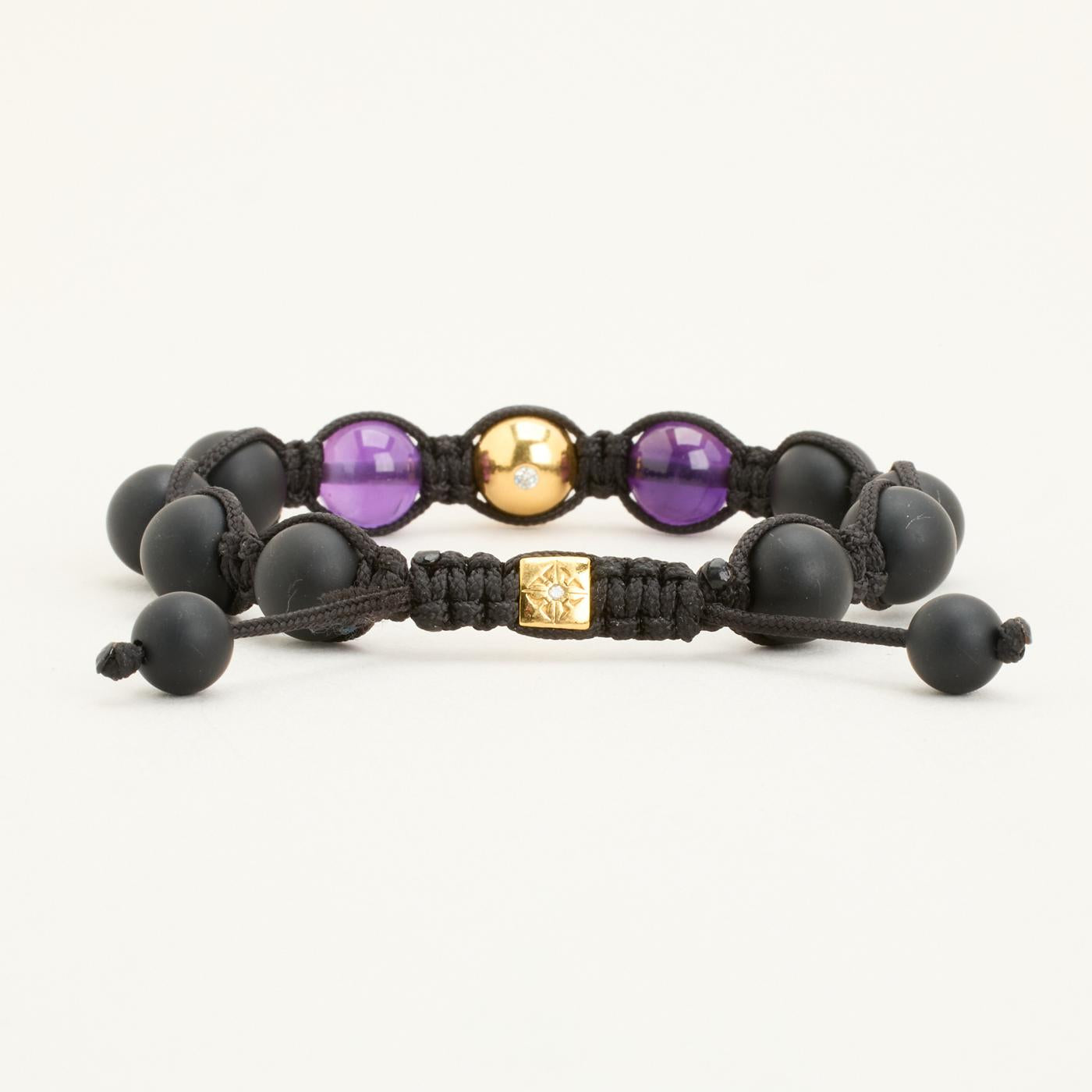 Model: Shamballa Kugle Armbånd med diamant (0.09 ct) i 18 karat med Ametyst og Onyks, 22 cm