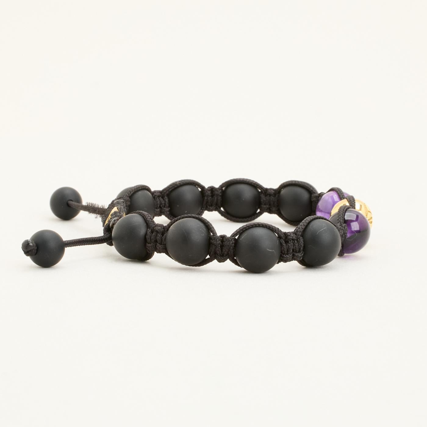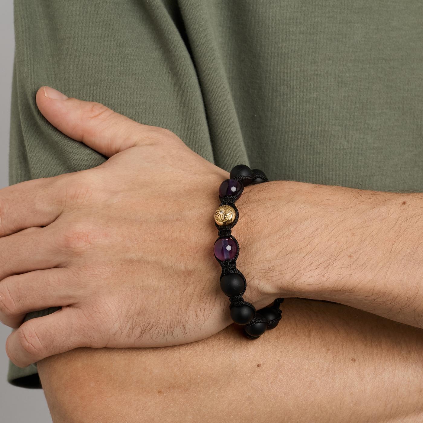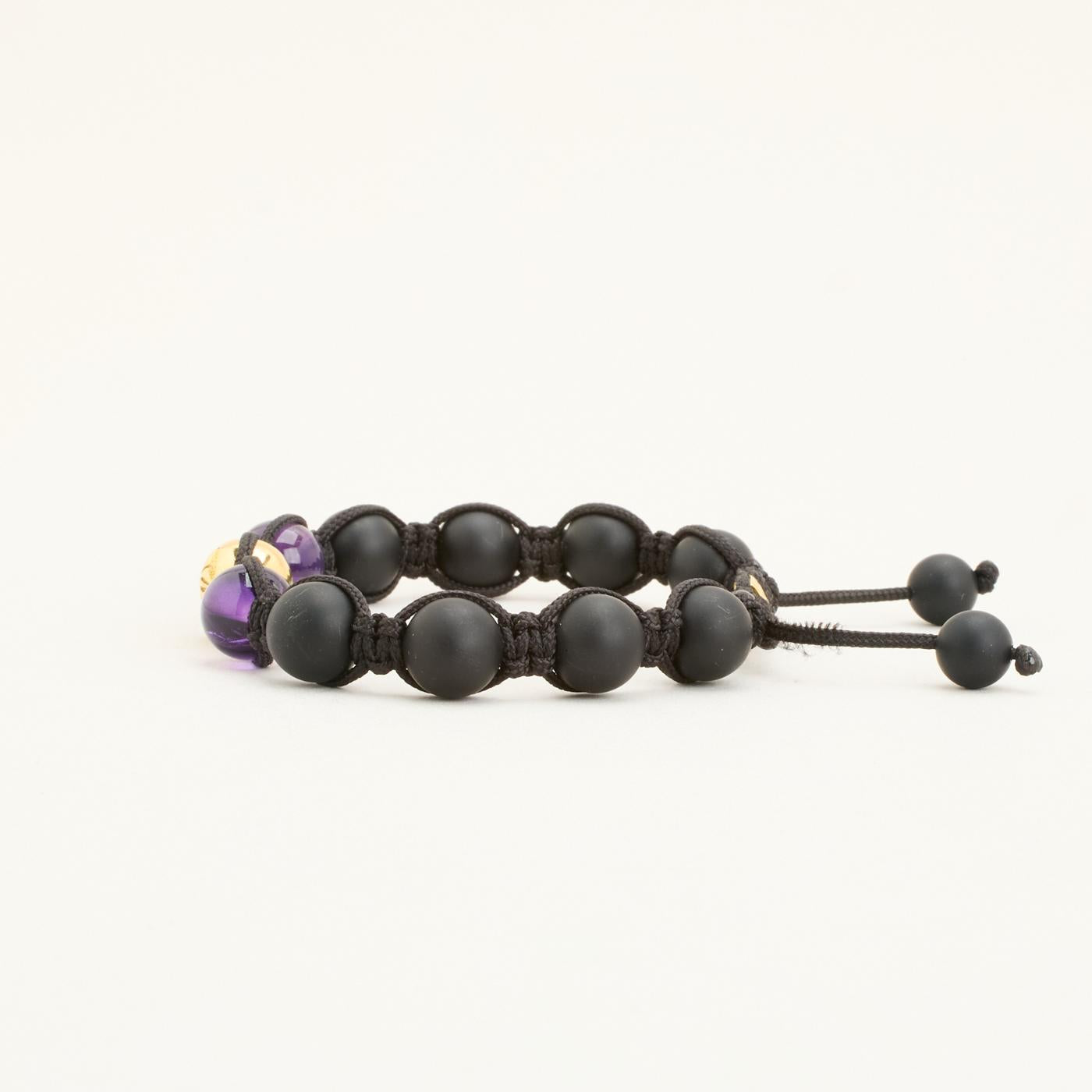 Model: Shamballa Kugle Armbånd med diamant (0.09 ct) i 18 karat med Ametyst og Onyks, 22 cm
