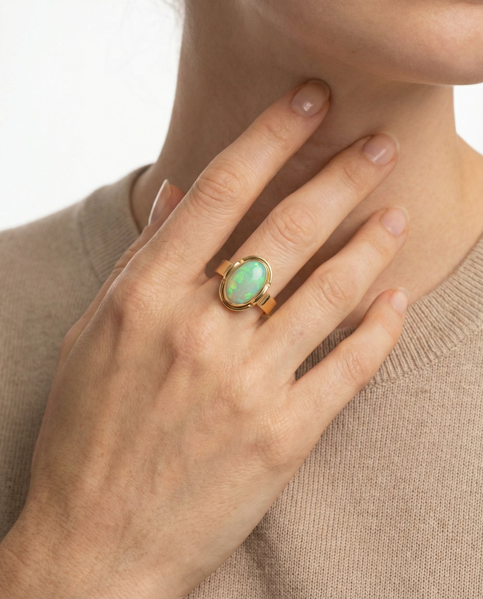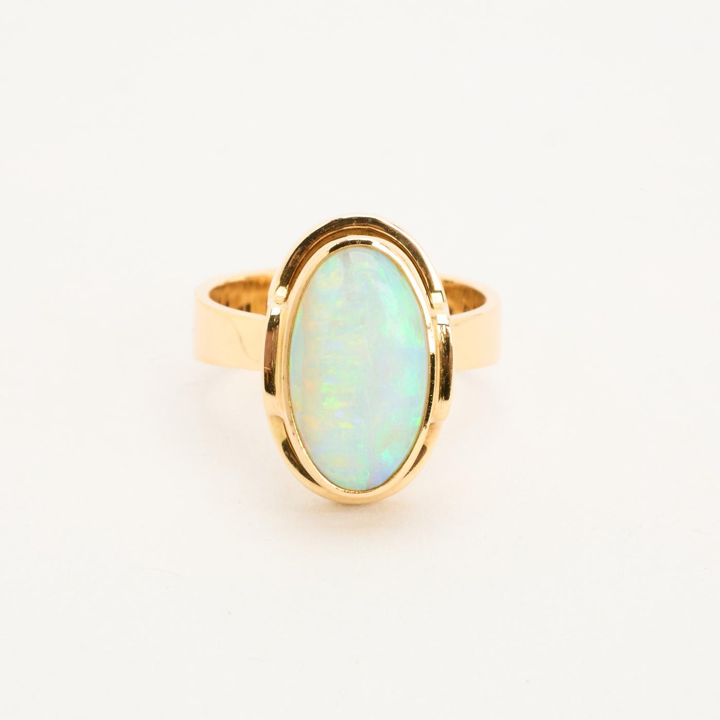 Reeslev cocktail ring i 14K guld med en opal, str. 53, 5 g