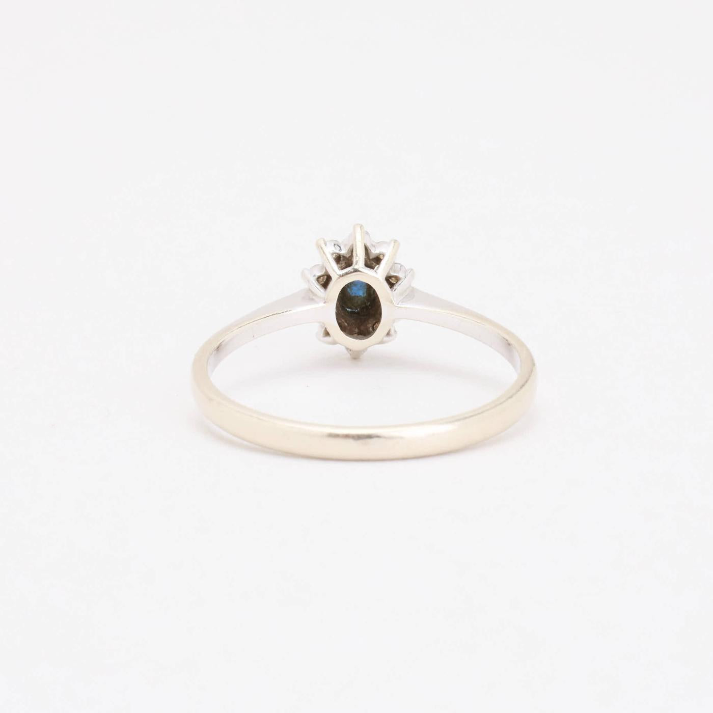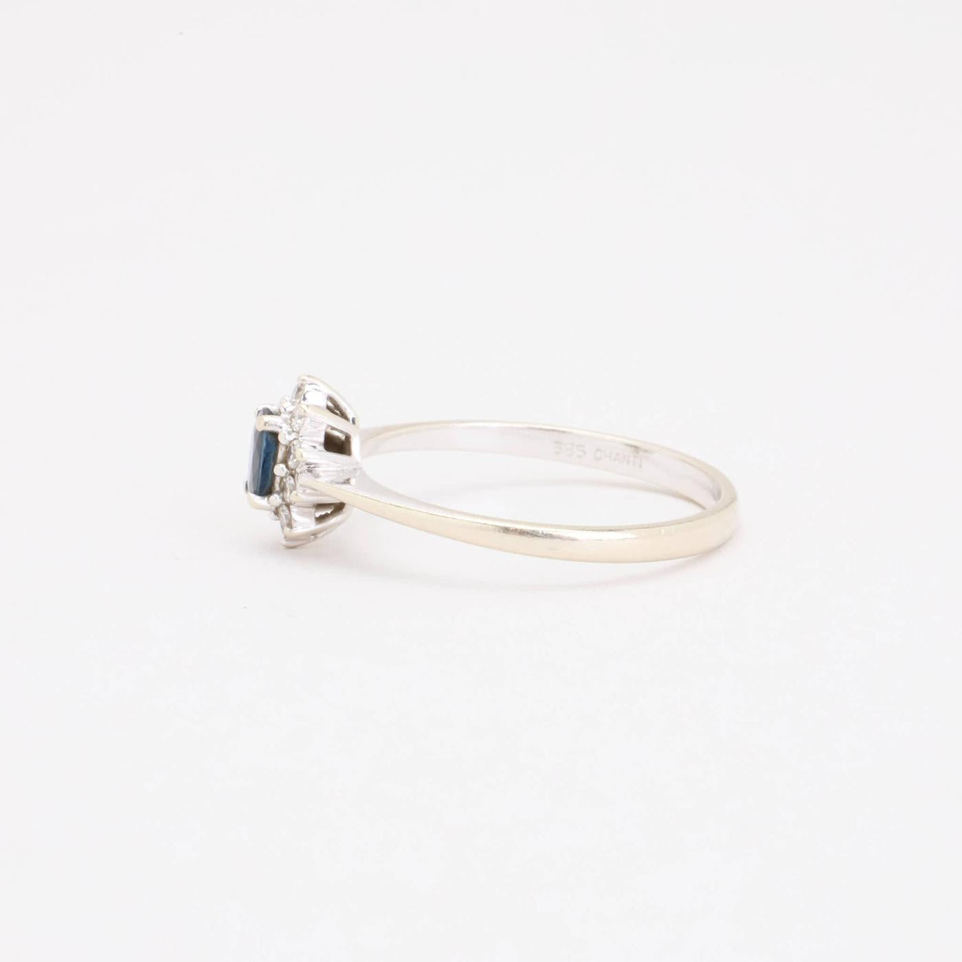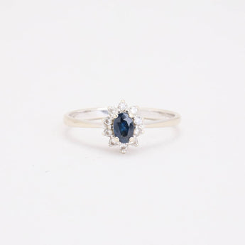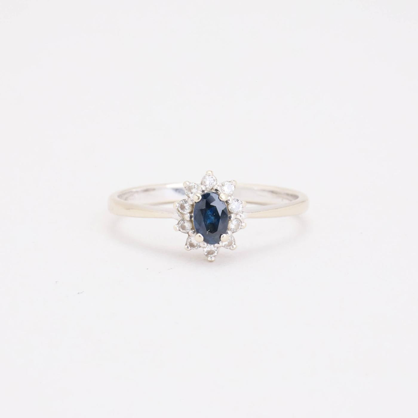 Rosetring med diamant (0.11 ct) i 14 karat med en Safir str. 56