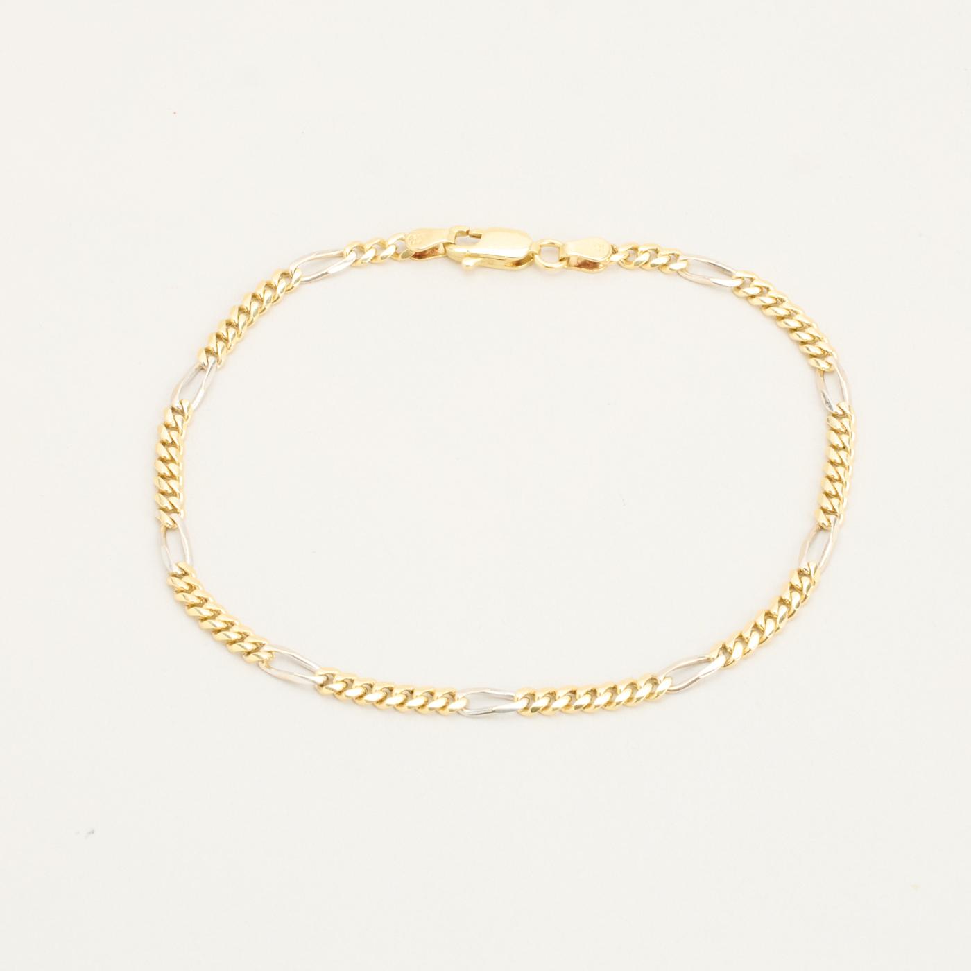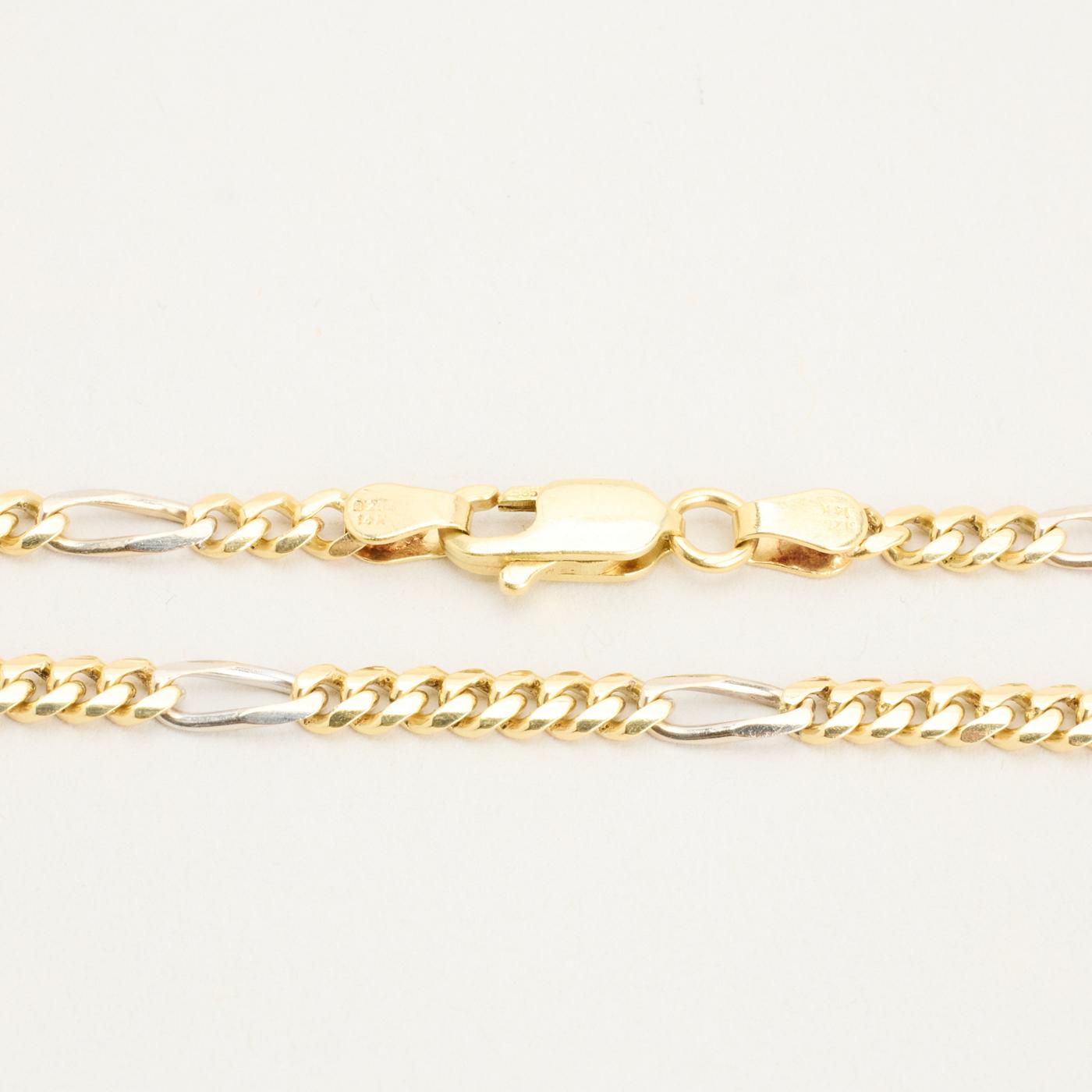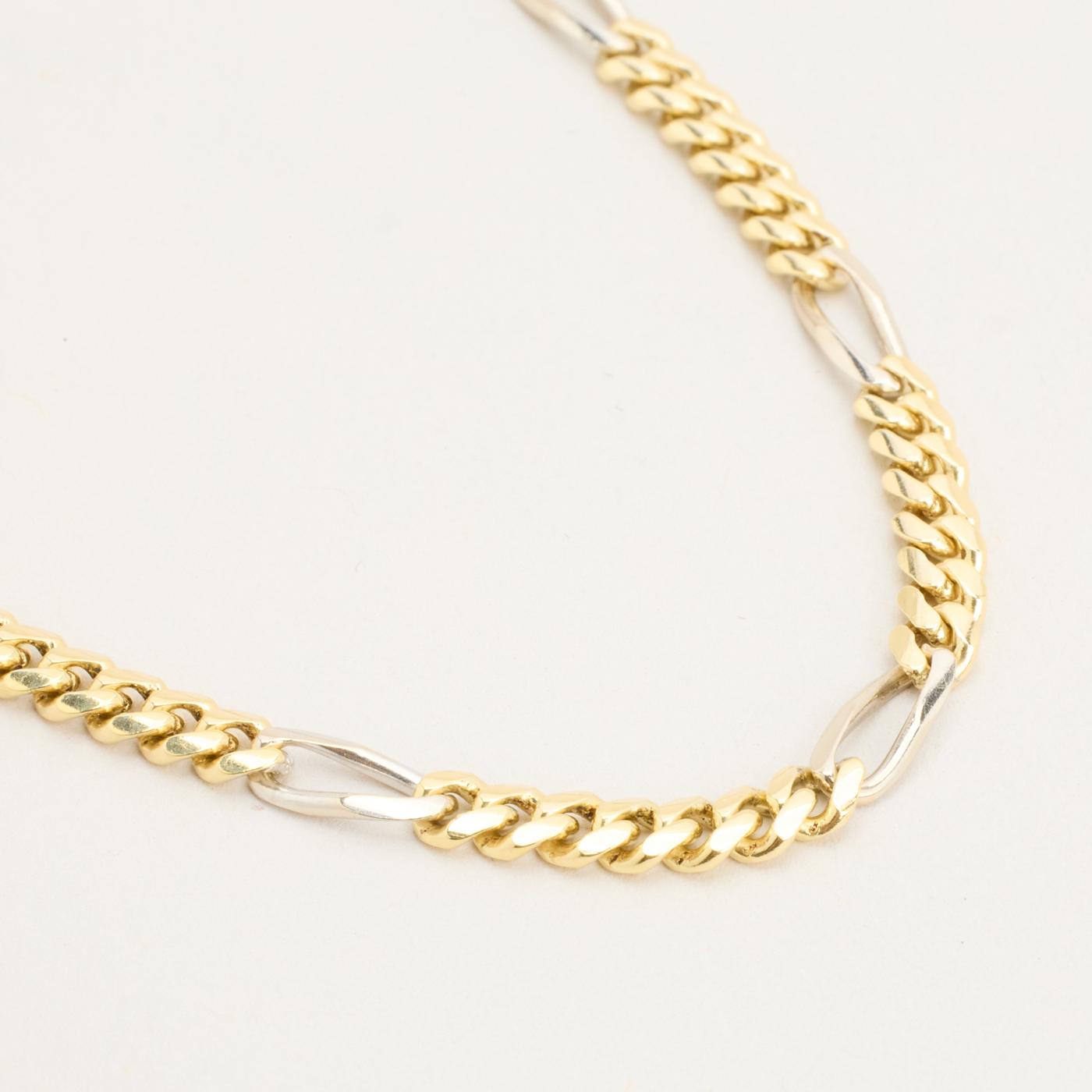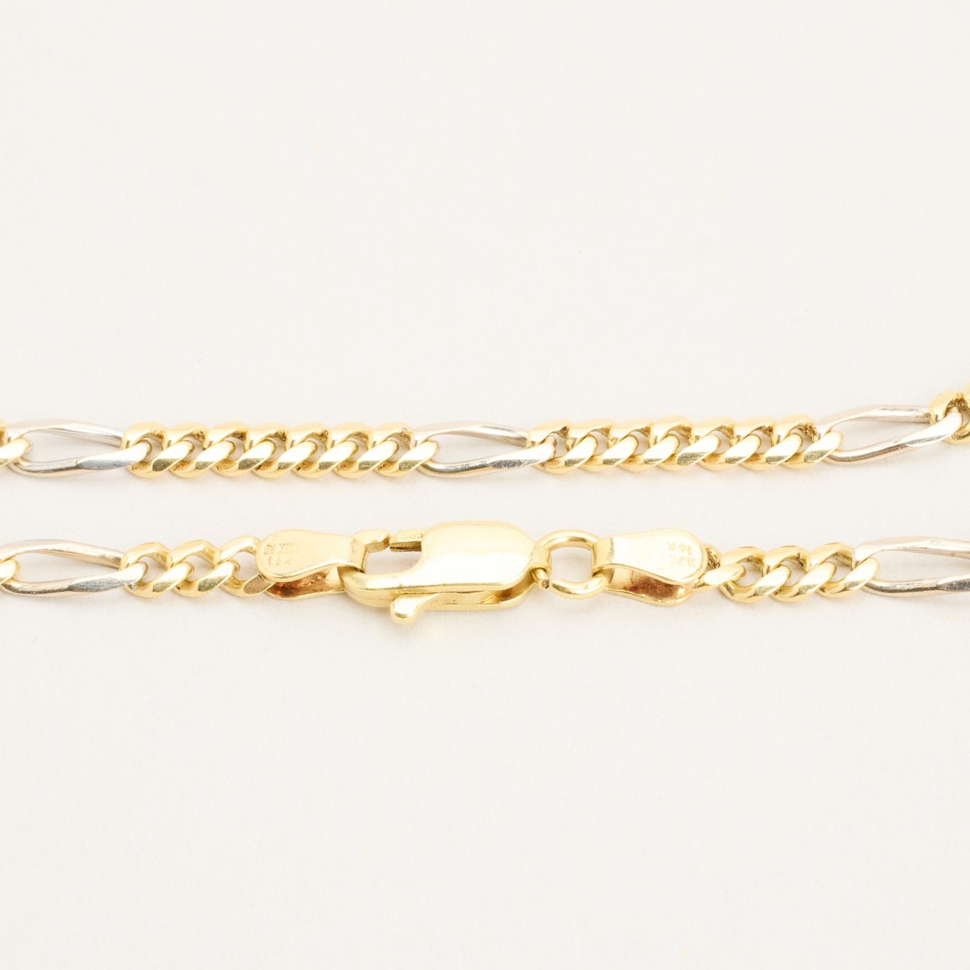 Figaro Armbånd i 14K guld og hvidguld, 23 cm, 8.27 g