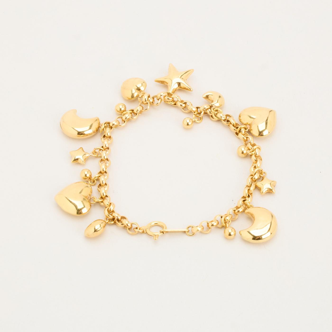 Belcher charm-armbånd i 18K guld, 18.5 cm, 11.46 g