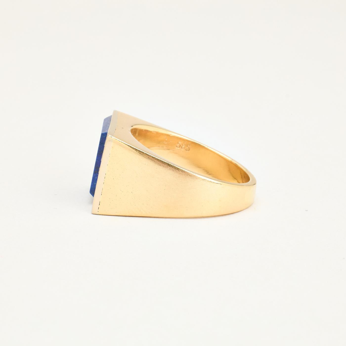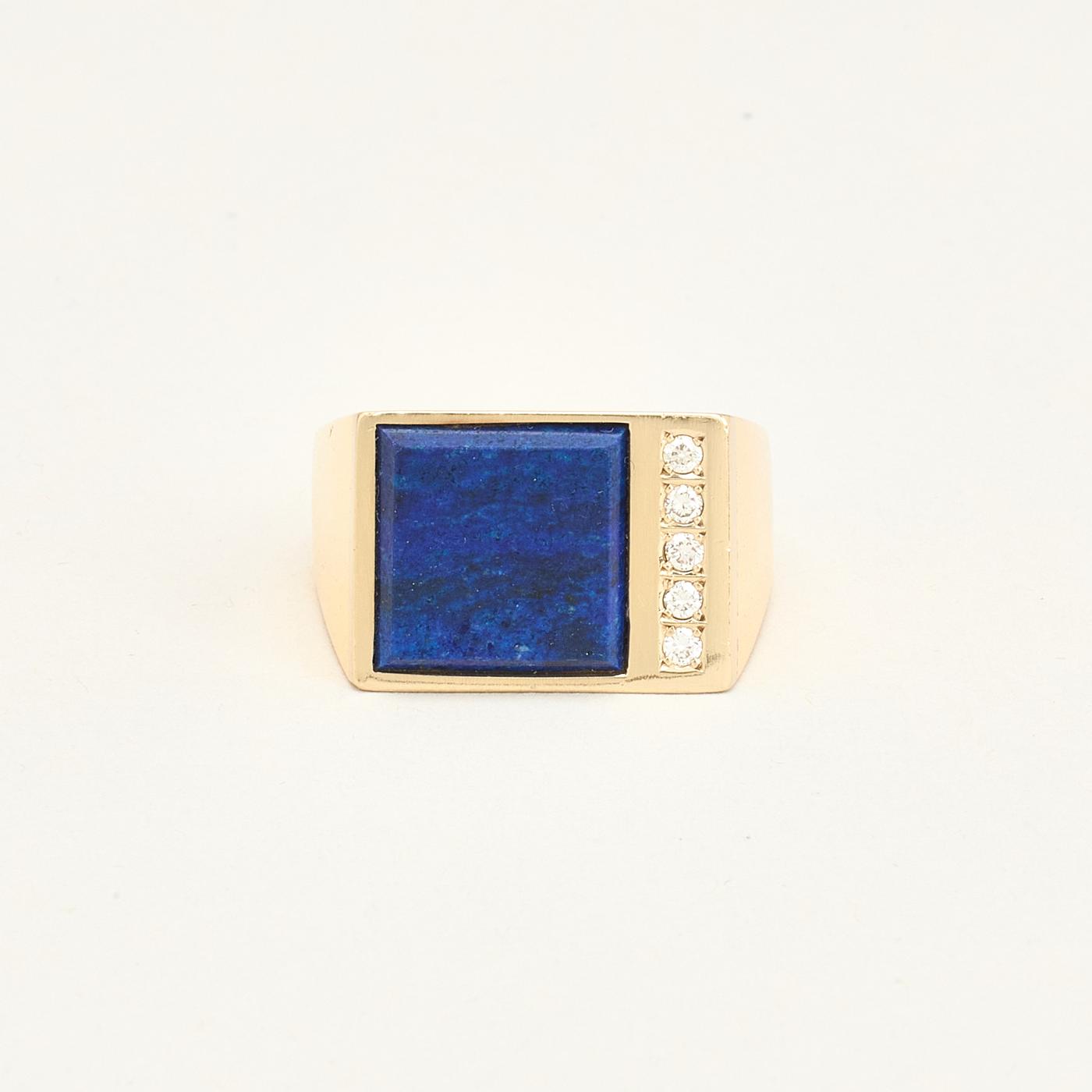 Signetring med diamanter (0.11 ct) i 14K guld med blå sten, str. 66