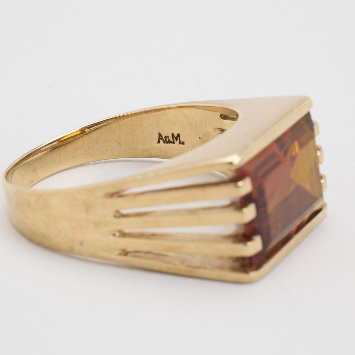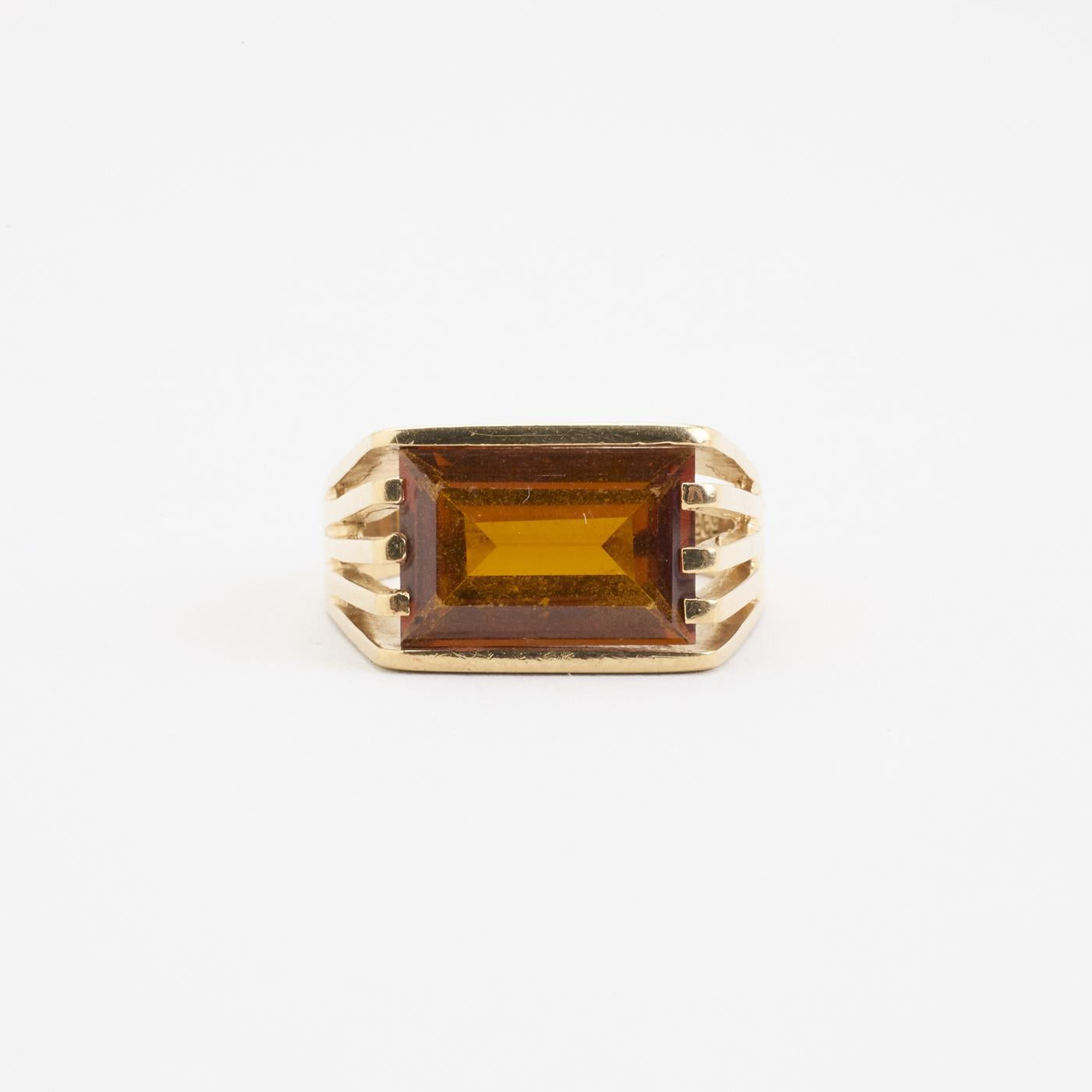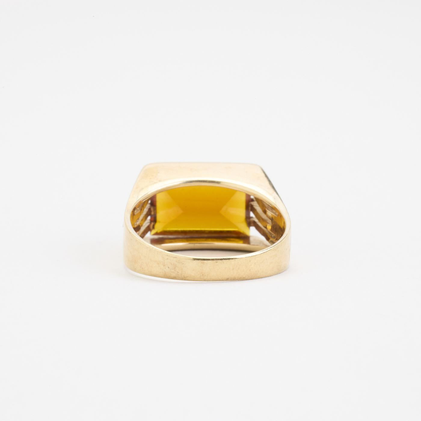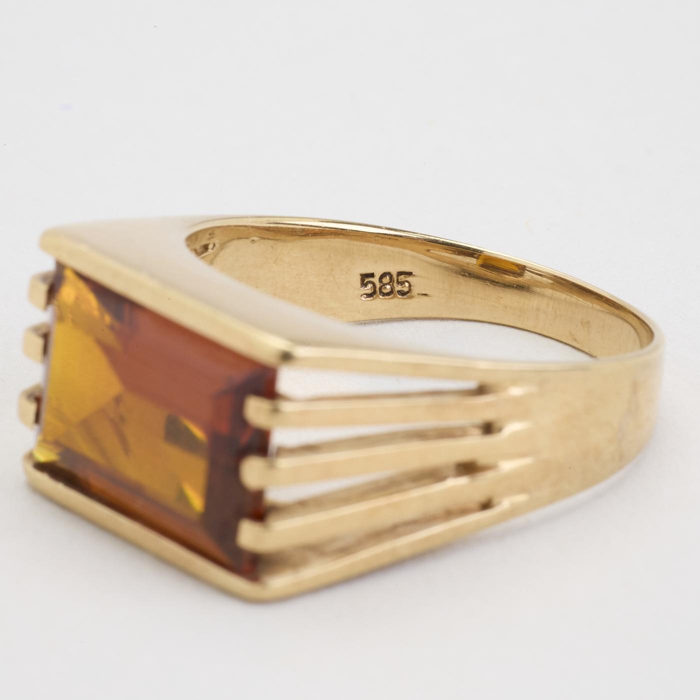 Signetring i 14K guld med syntetisk safir, Str. 55