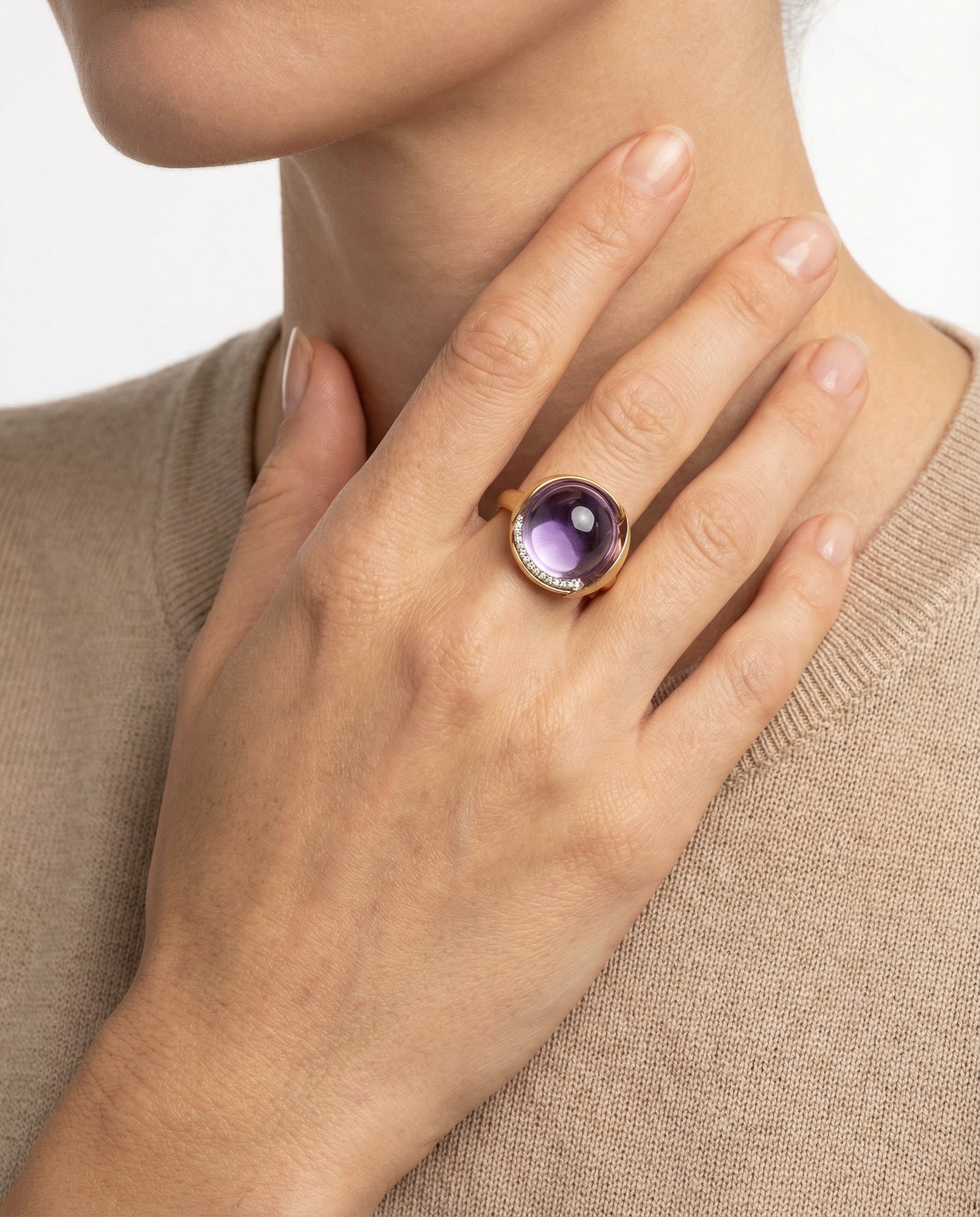 Ole Lynggaard Lotus ring med diamant (0.05 ct) og ametyst i 18K guld, str. 50