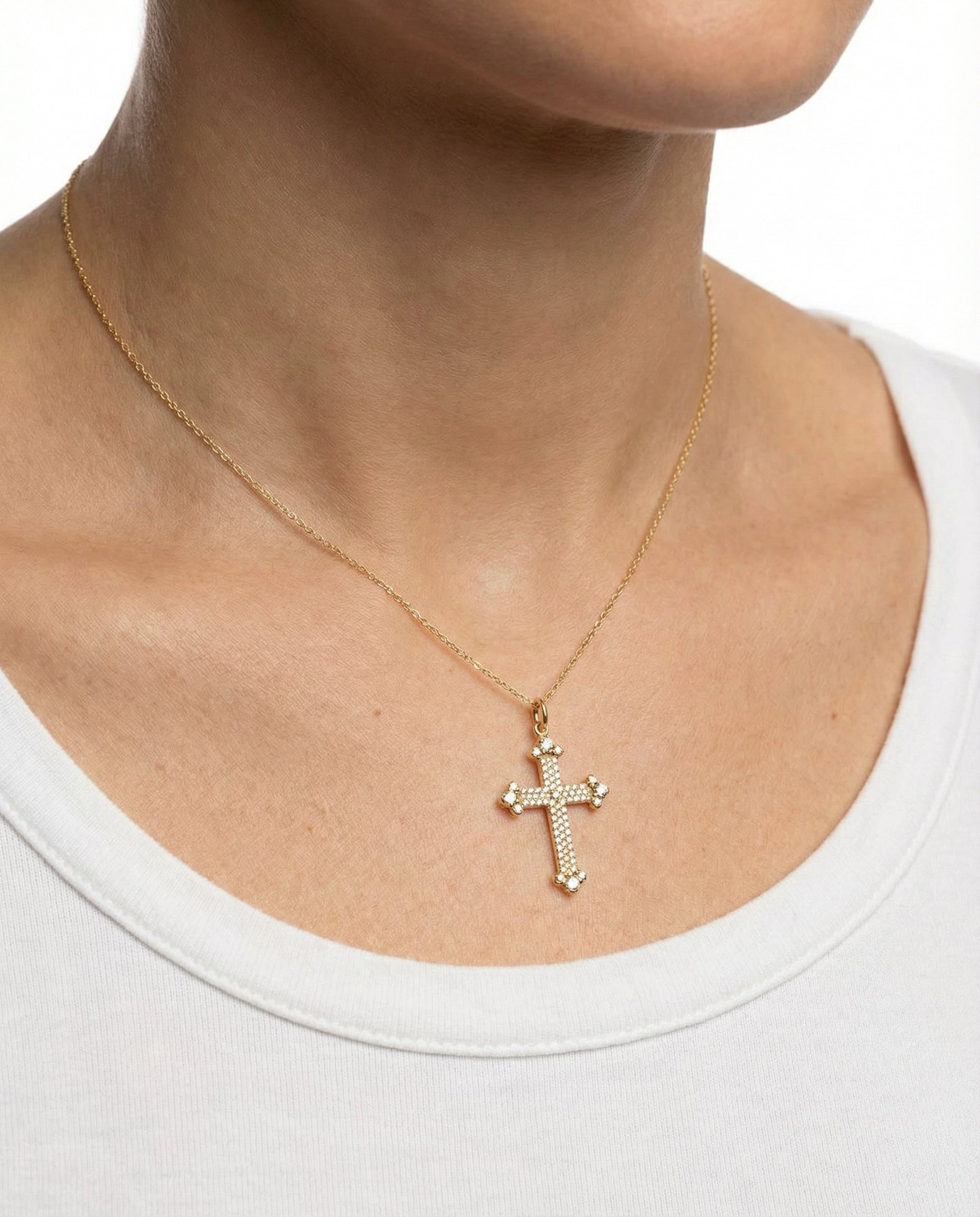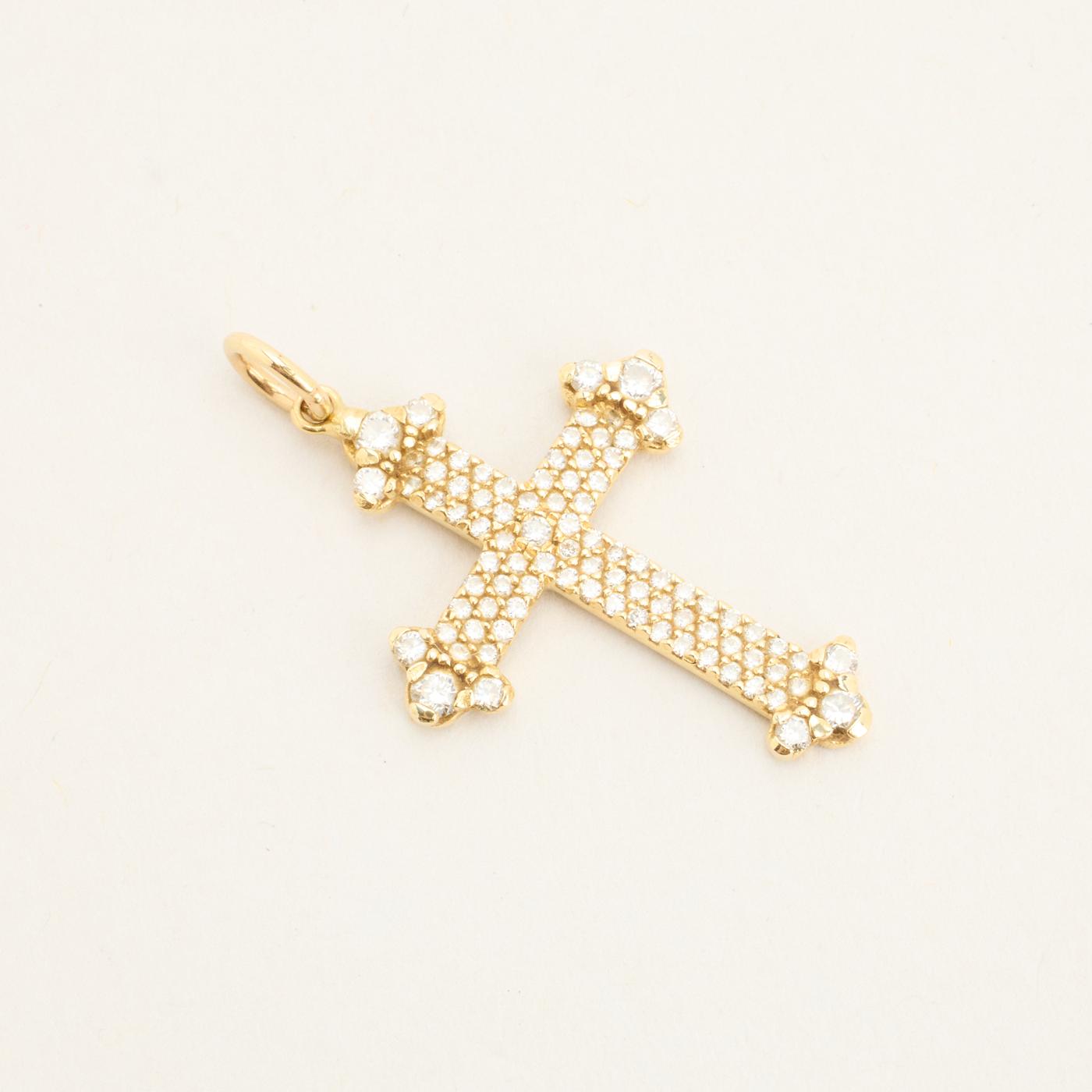 Kors vedhæng i 14K guld med diamanter (0.74 ct), 3,5 cm, 2,25 g