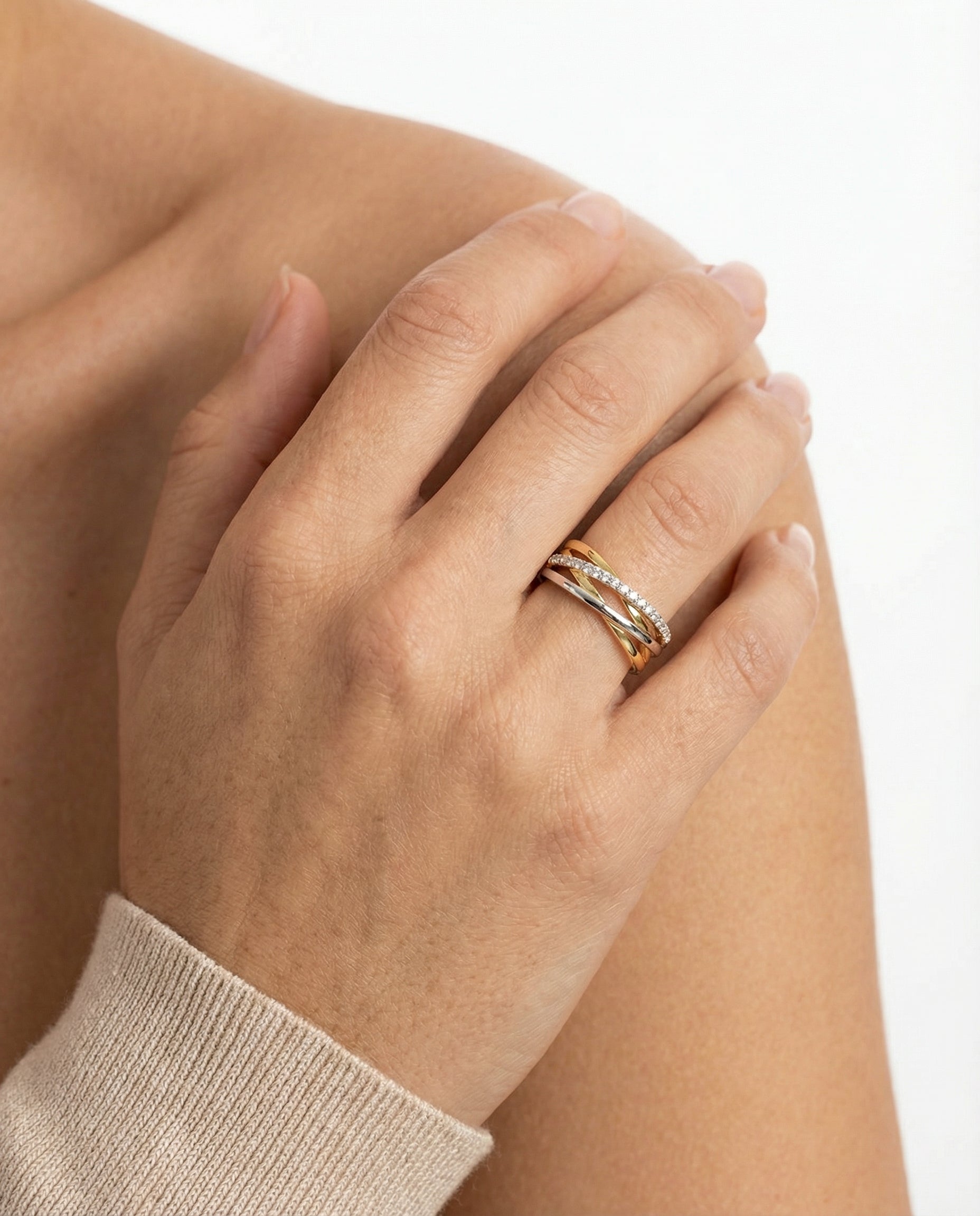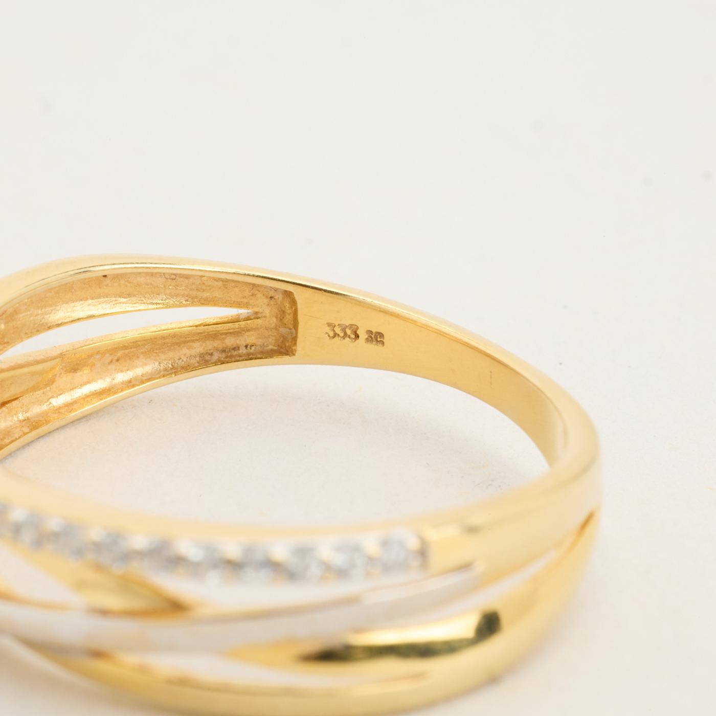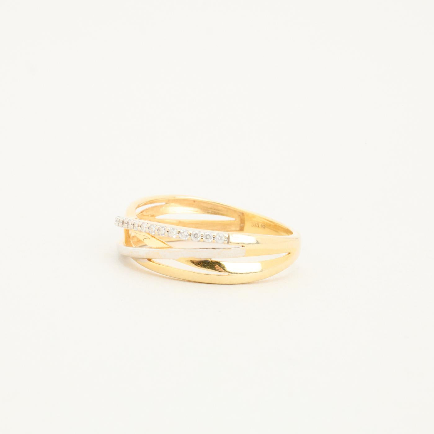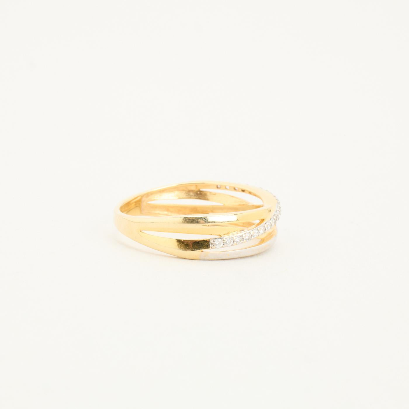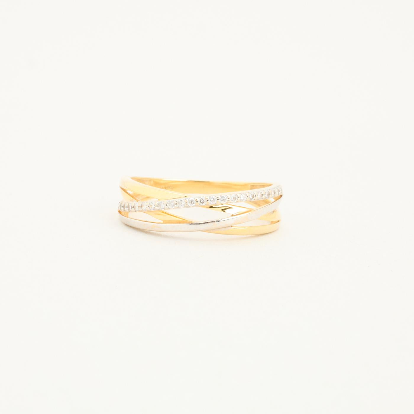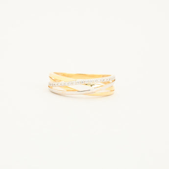 Crossoverring i 8K guld og hvidguld med flere zirkoniaer, Str. 57