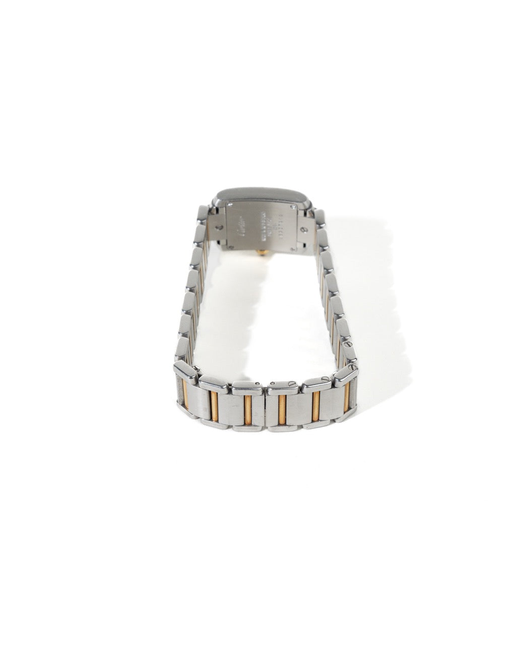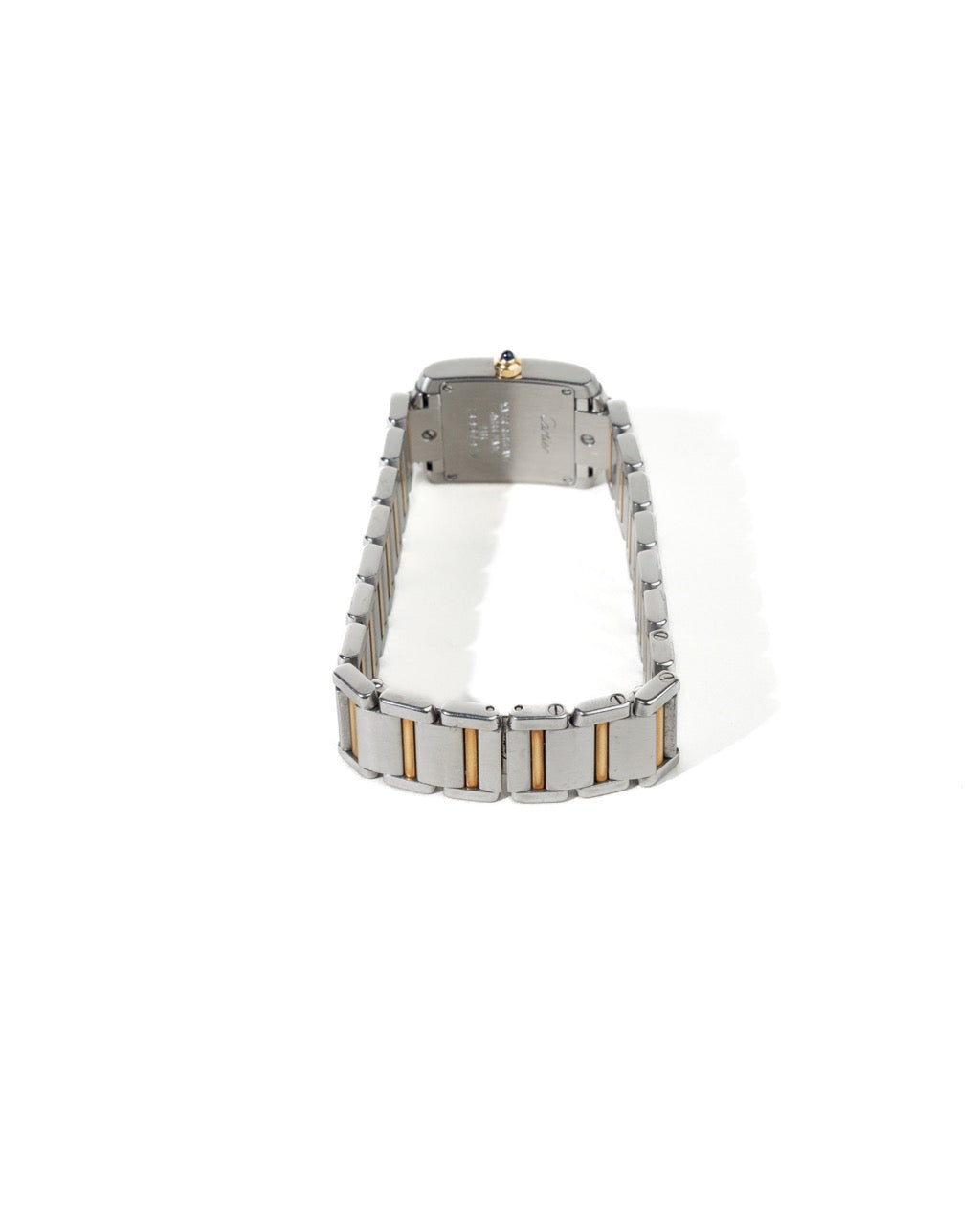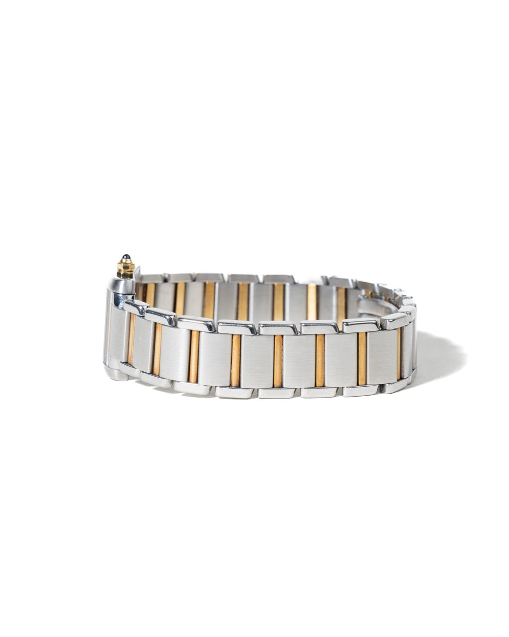 Cartier Tank Française 2384 i smuk two-tone stål/guld kombination – et tidløst design, der aldrig går af mode. Den ikoniske firkantede kasse, romertalsskive og blå visere giver uret det klassiske Cartier-udtryk, mens lænken i stål og guld tilføjer et moderne, luksuriøst touch. Et elegant og alsidigt smykkeur, perfekt til både daglig brug og særlige anledninger.Uret er gennemtestet og fuldt funktionsdygtigt. Uret kan have ganske små og ubetydelige kosmetiske ridser.