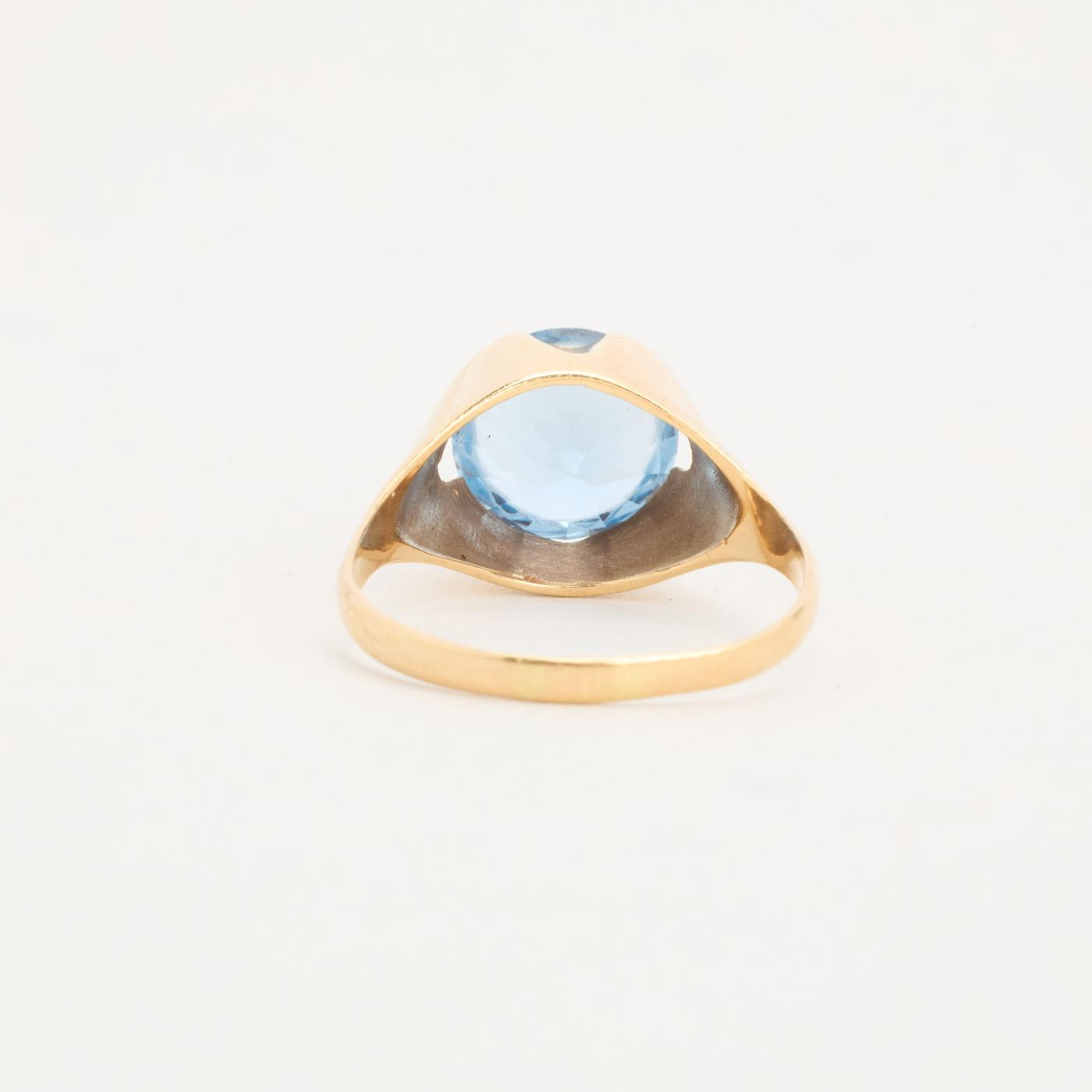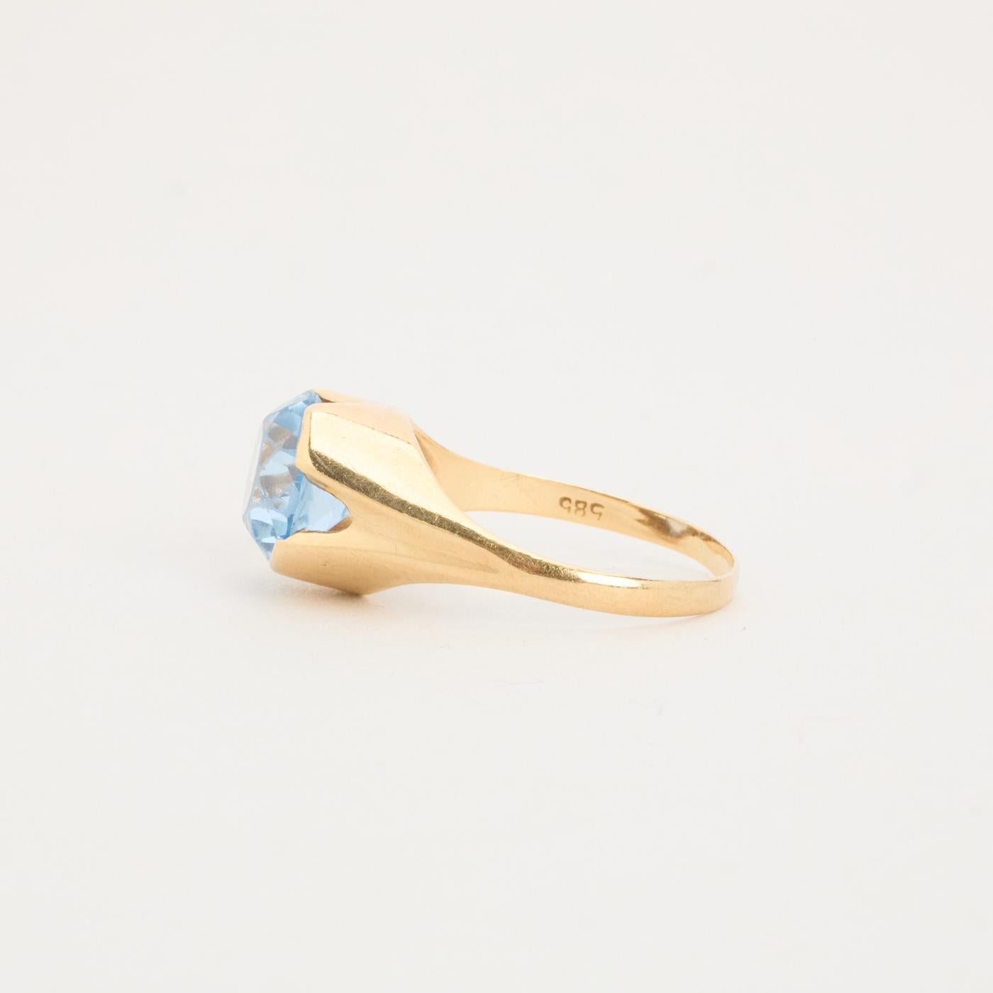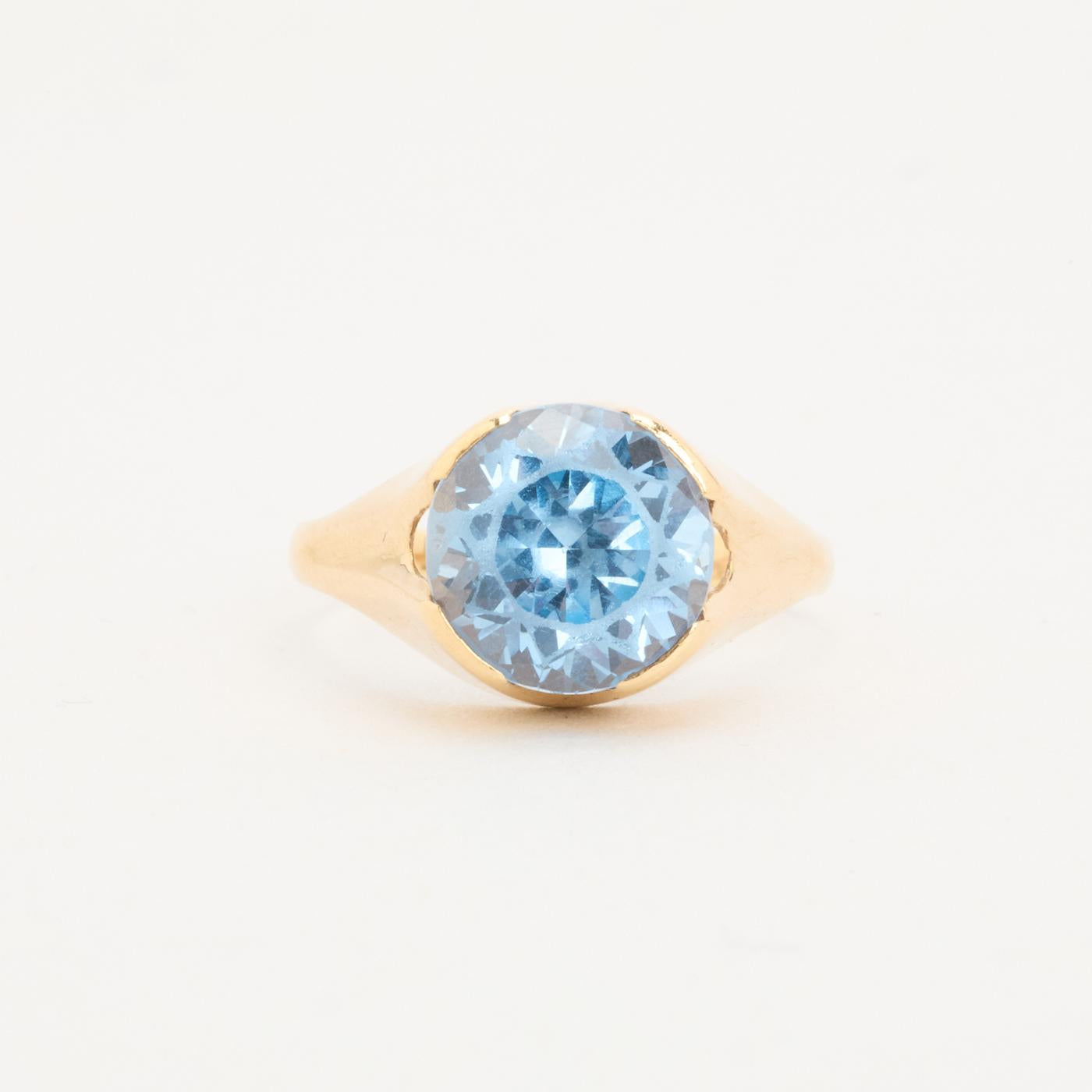 Cocktail ring i 14K guld med lyseblå sten, str. 58, 3 g