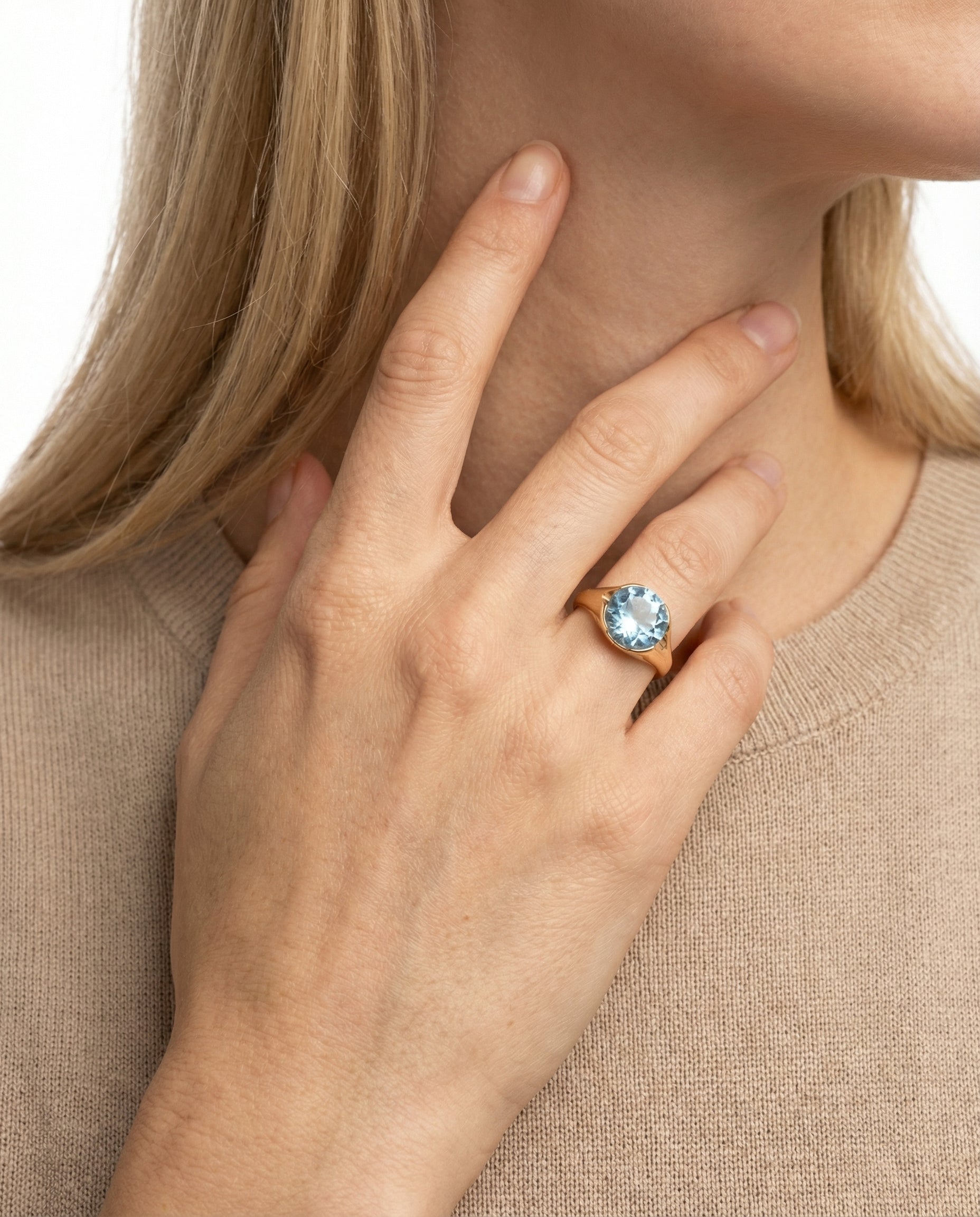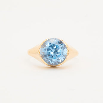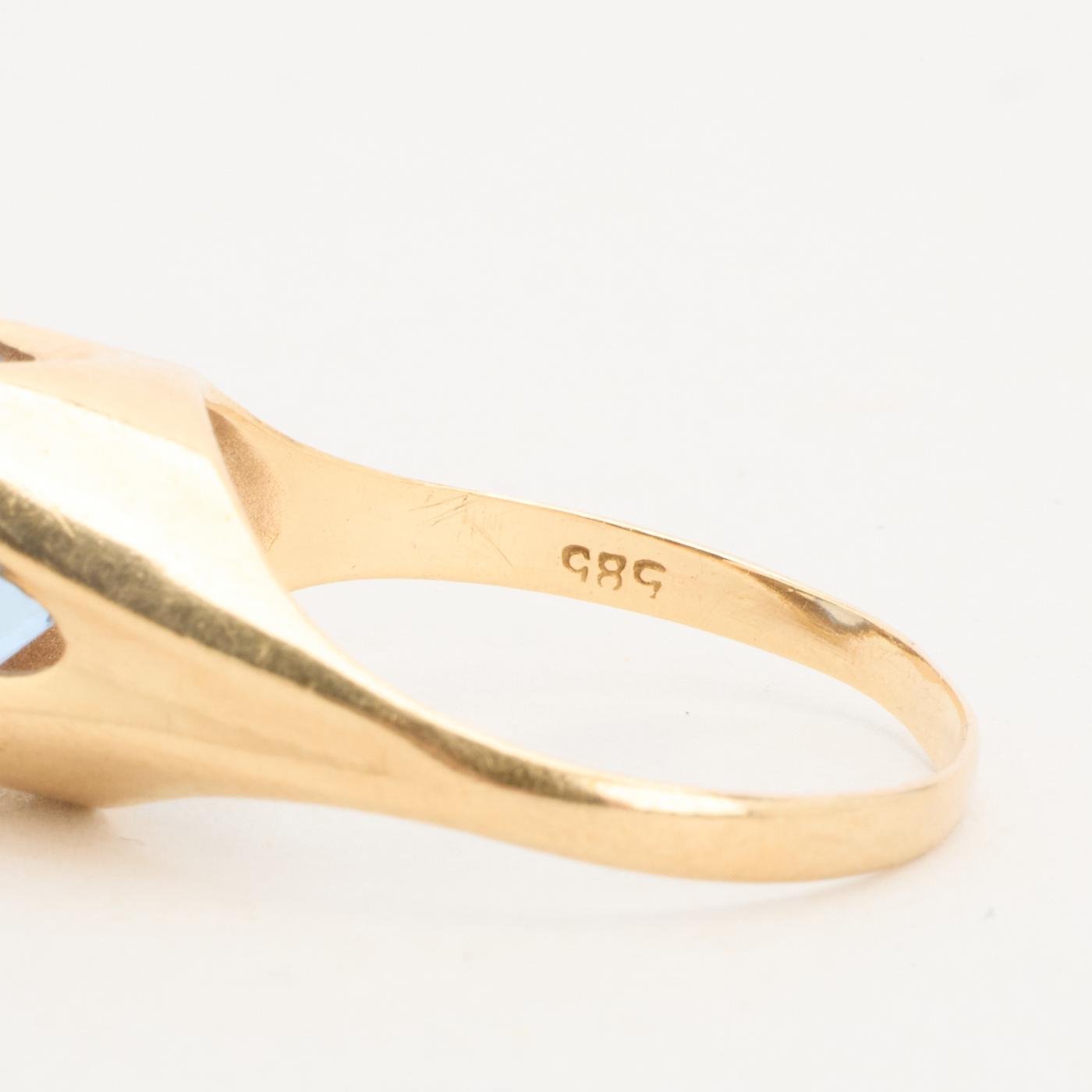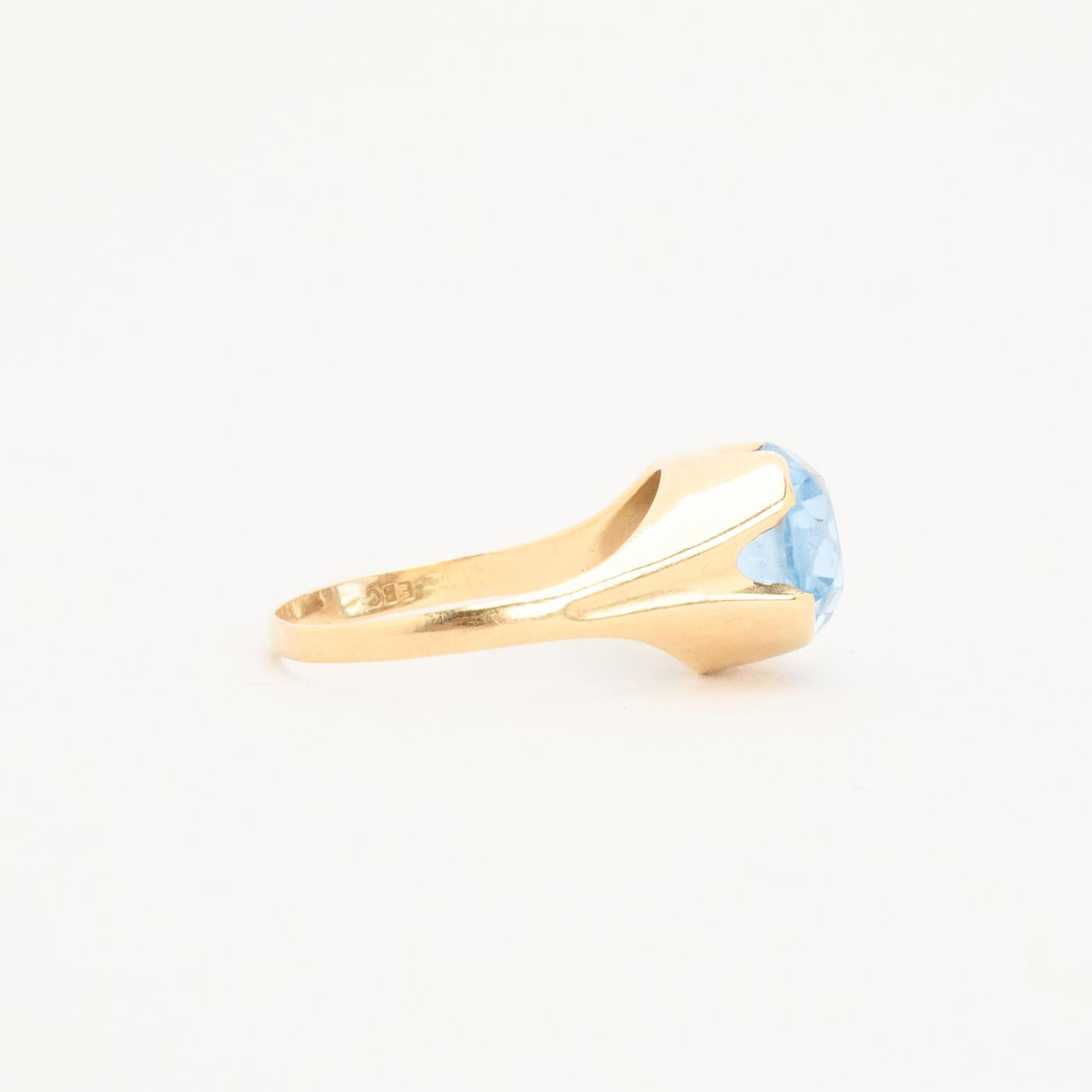 Cocktail ring i 14K guld med lyseblå sten, str. 58, 3 g
