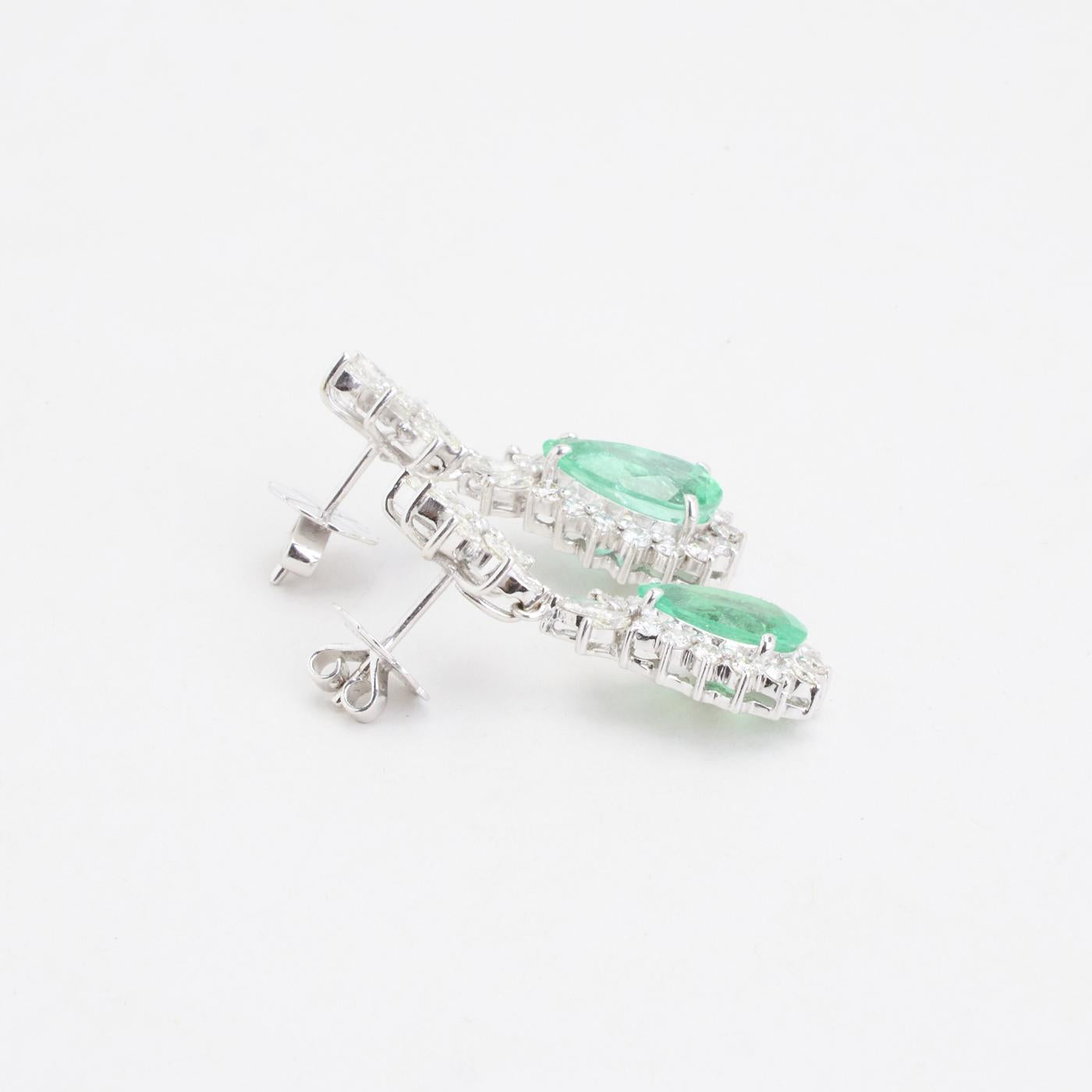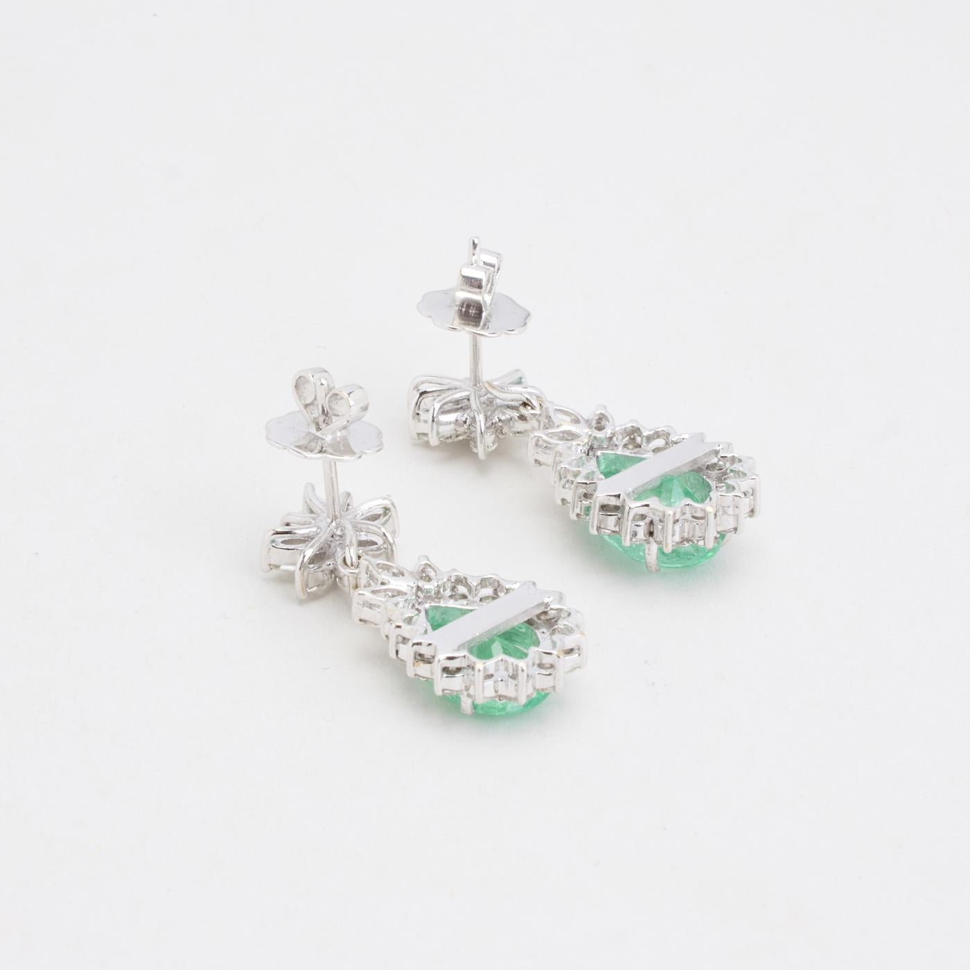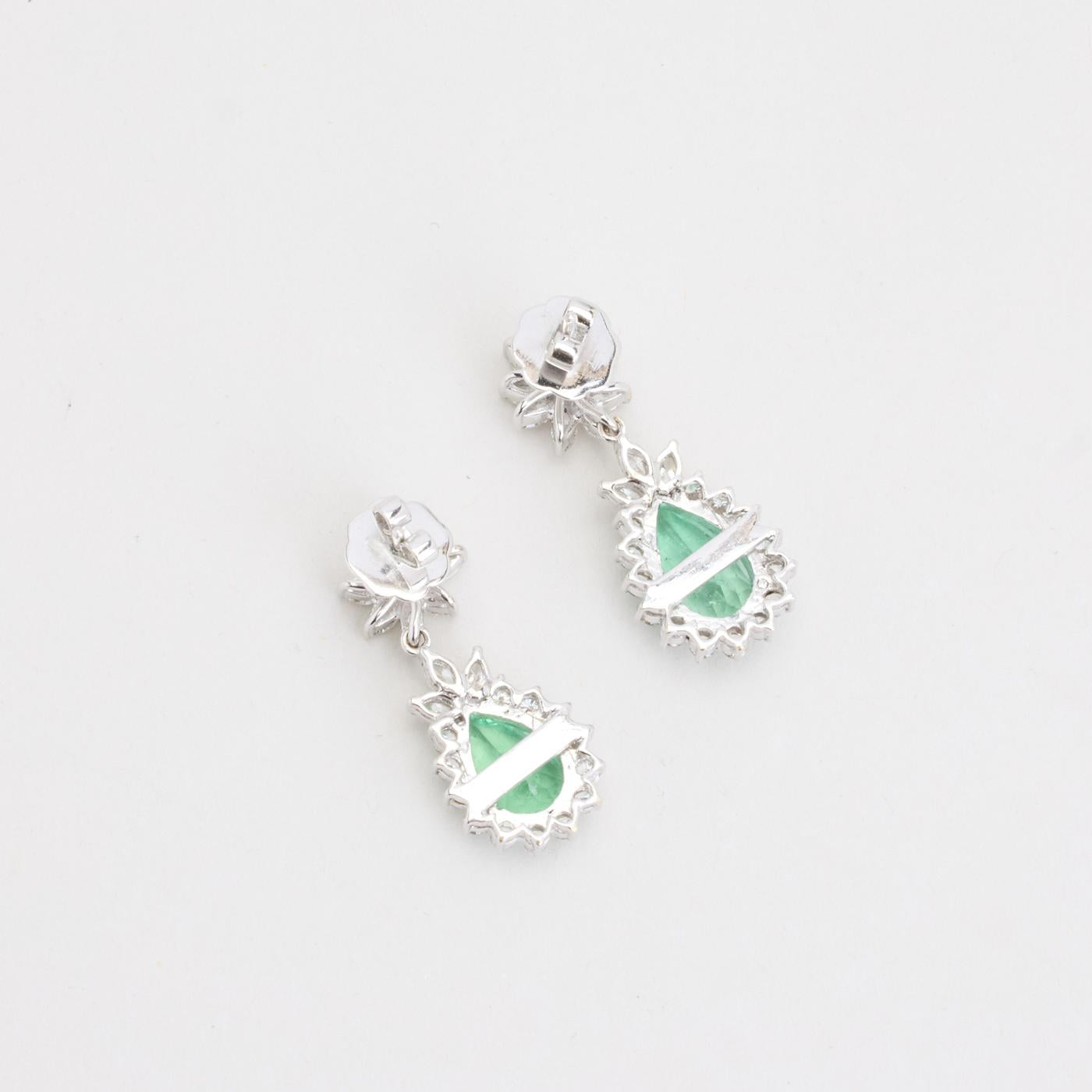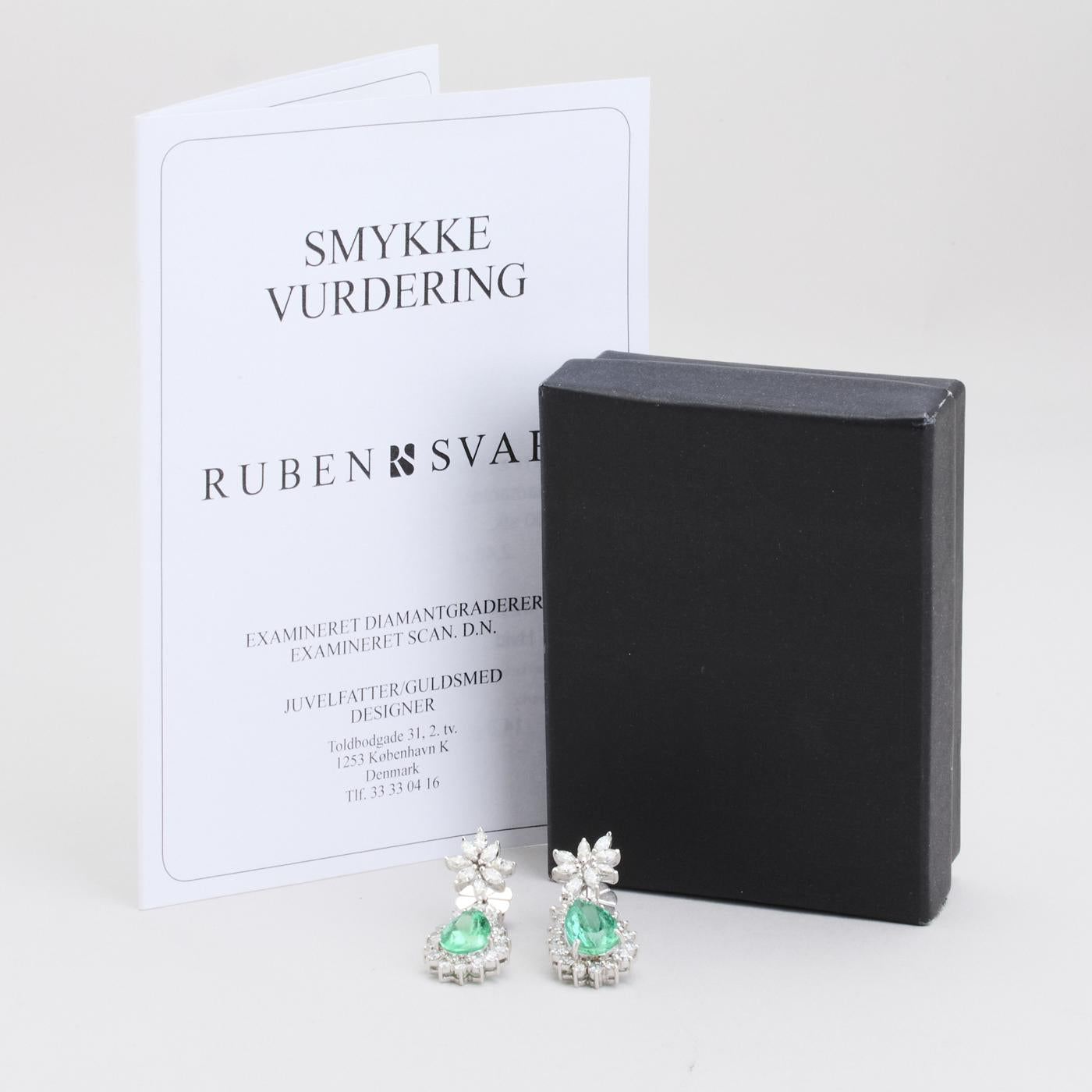 Model: Roset øreringe med diamant (2.46 ct) i 18K hvidguld med en smaragd, 3.5 cm,