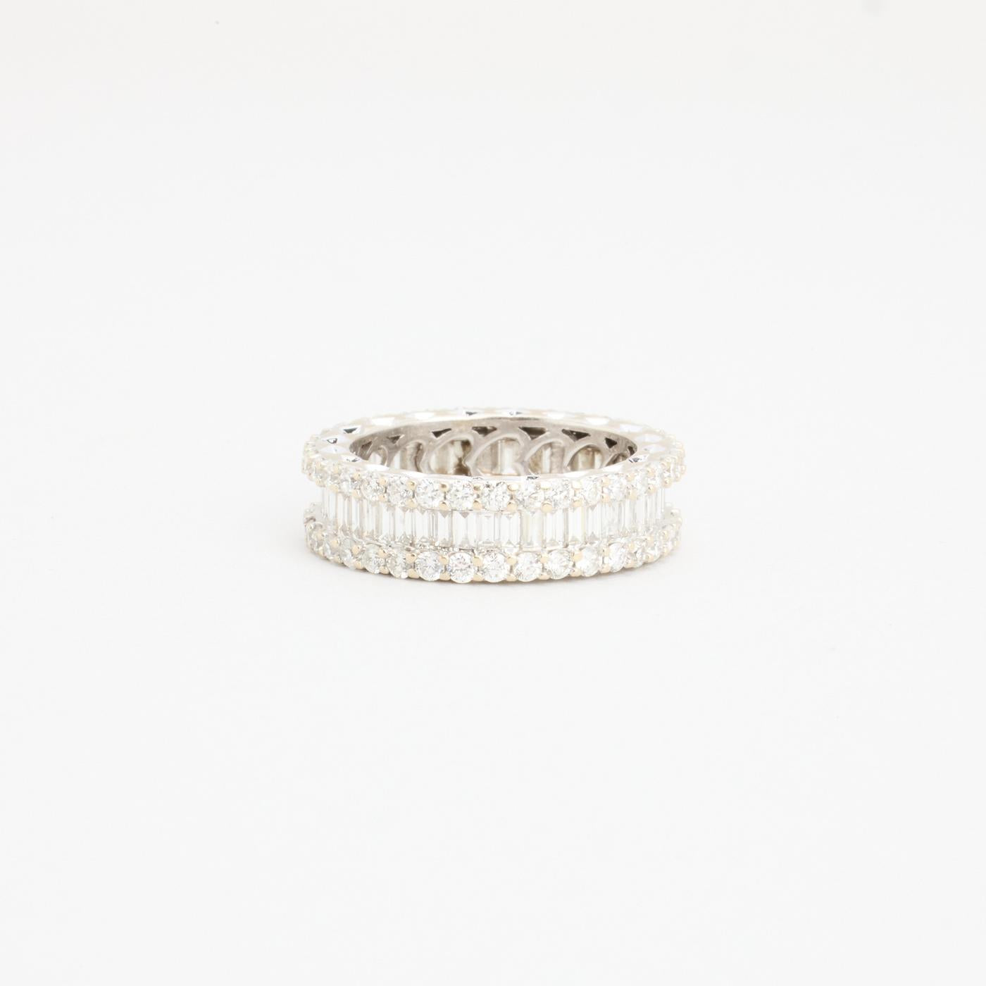 Egenskaber: Ring i 18 karat Hvidguld isat 47 x 0.01 ct. baguetteslebne diamanter, i alt 0.7 ct. Wesselton/VS-SI.