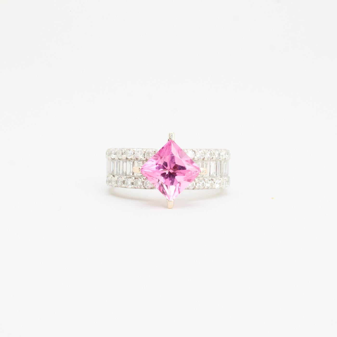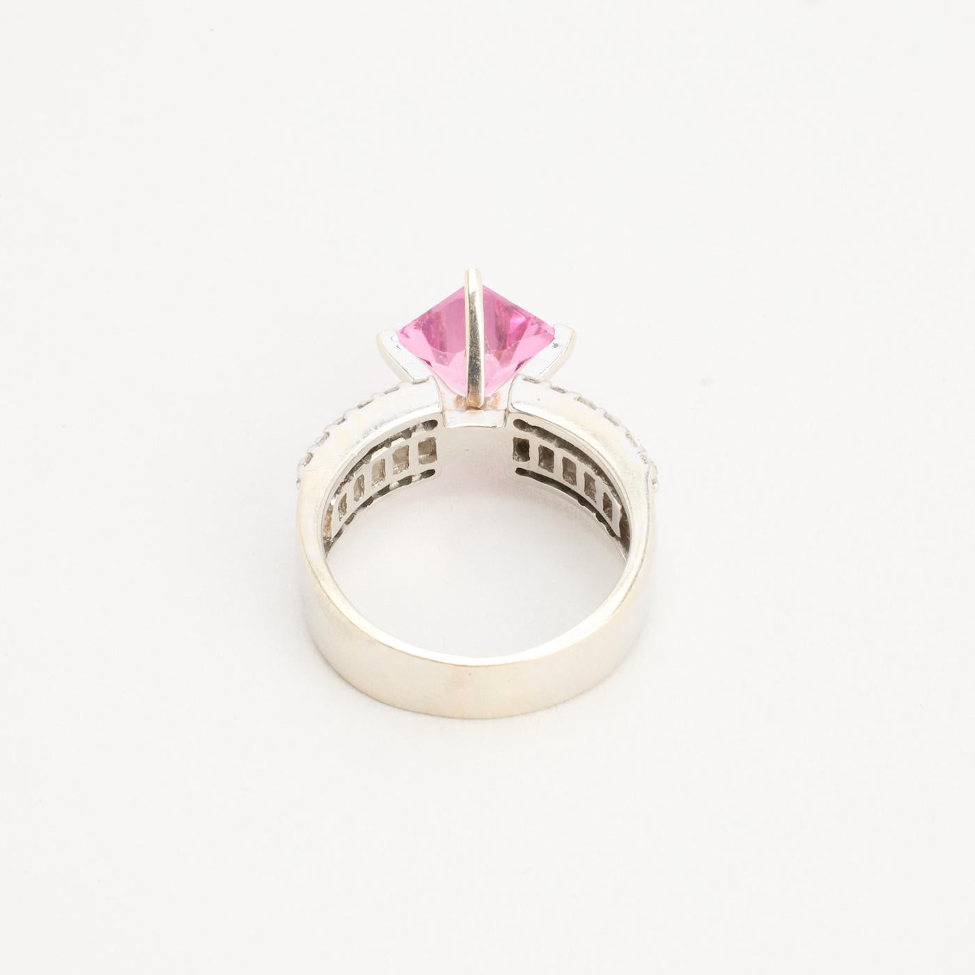 Solitairering i 18K hvidguld med princesscut turmalin og diamanter (0.95 ct), Str. 50