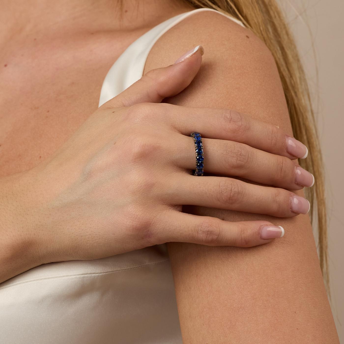 Model: Ruben Svart eternity ring i 14K hvidguld, med safirer (3,78 ct), kanalfatning, Str. 57