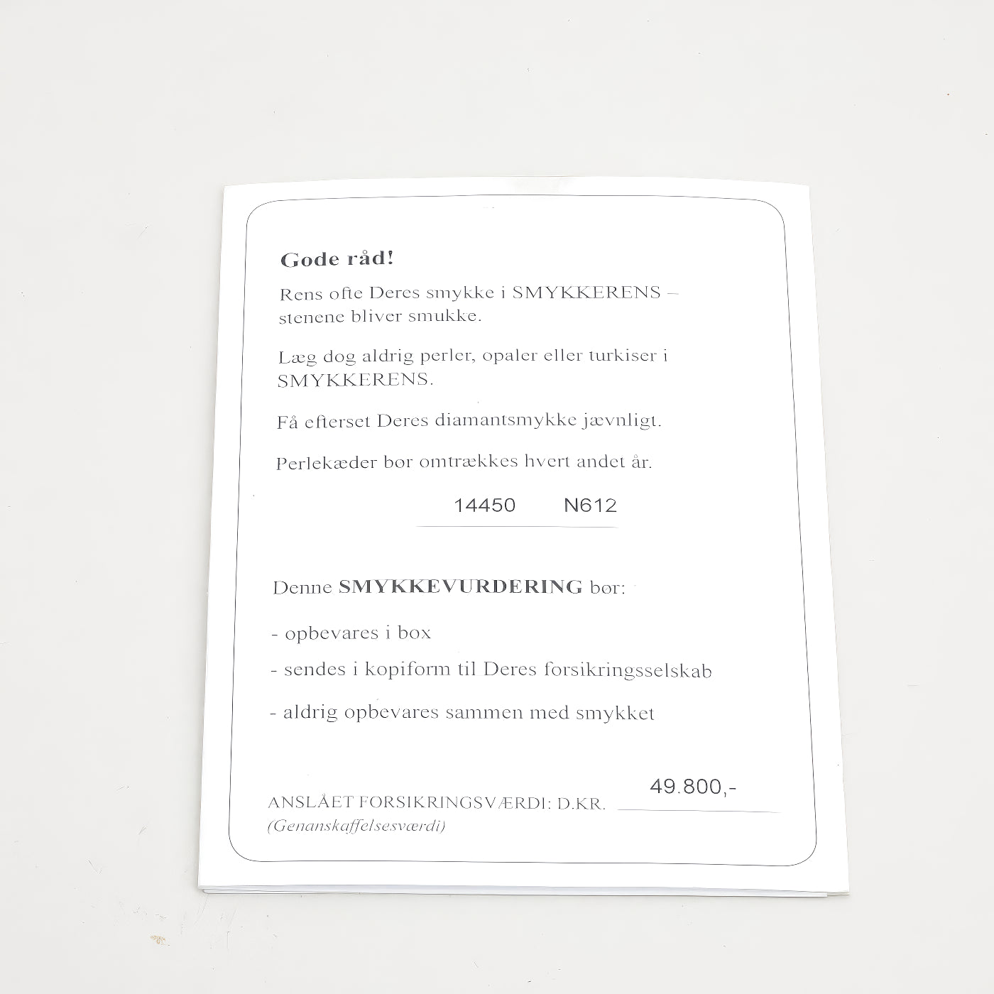 Anslået forsikringsværdi: 49.800 kr.